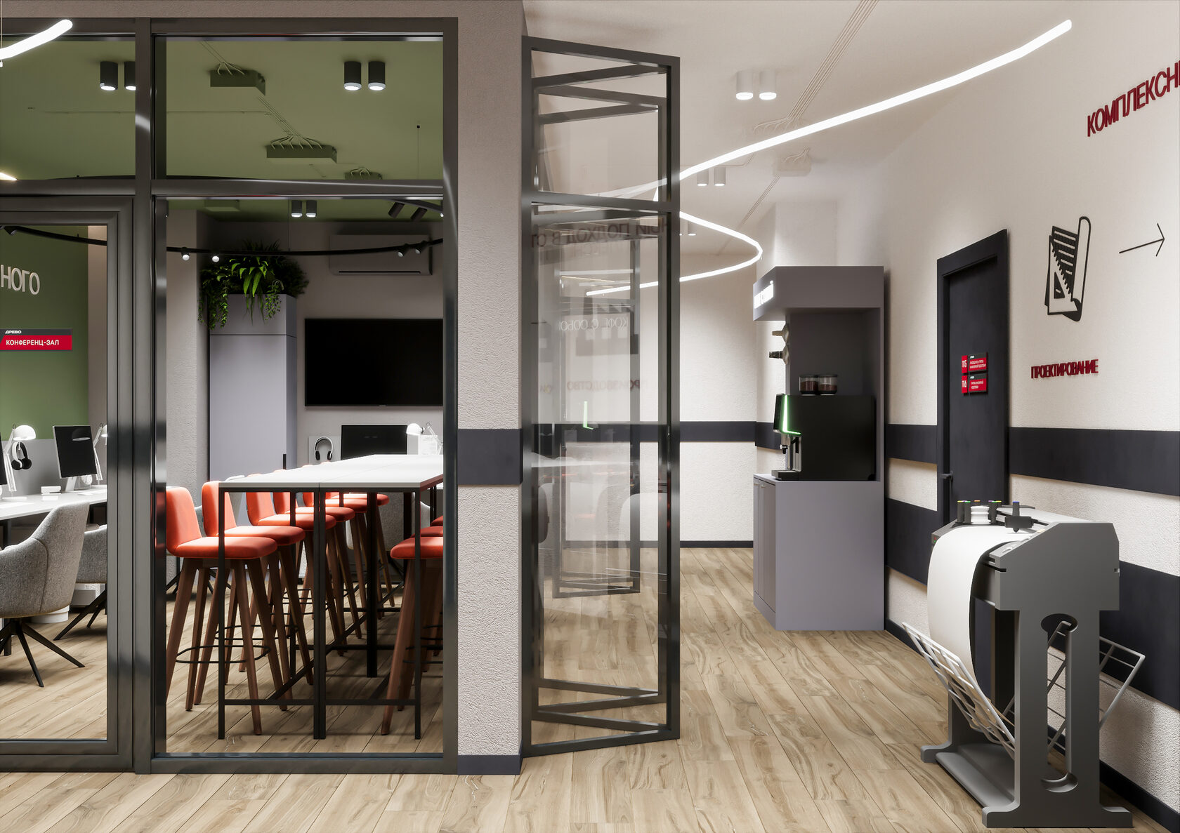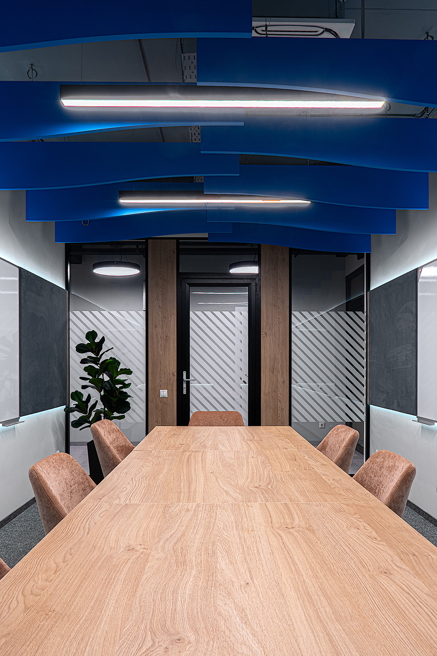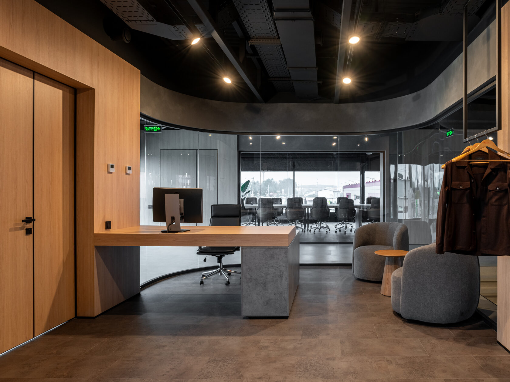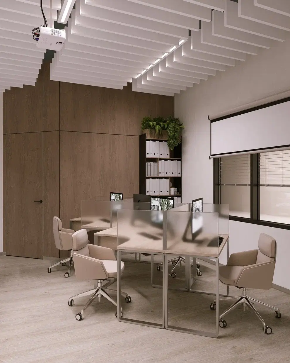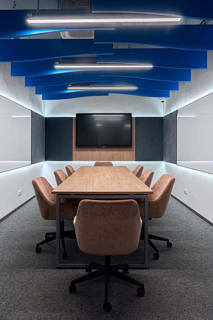 Концепция: Основная концепция — создание интерьера, безупречно отражающего инженерную направленность компании и обеспечивающего максимальный комфорт. Пространство было тщательно зонировано от приемной до архива и кухни, с учетом всех технических требований. В дизайн органично интегрированы продукты Заказчика, включая панели SUBU, что усилило визуальный образ и продемонстрировало их функциональность. Применены инновационные инженерные решения, такие как система фальшпола для гибкости коммуникаций и акустические потолочные баффлы для шумоподавления, обеспечивая технологичность и эргономику.