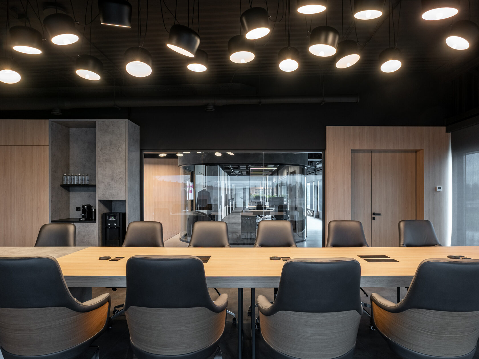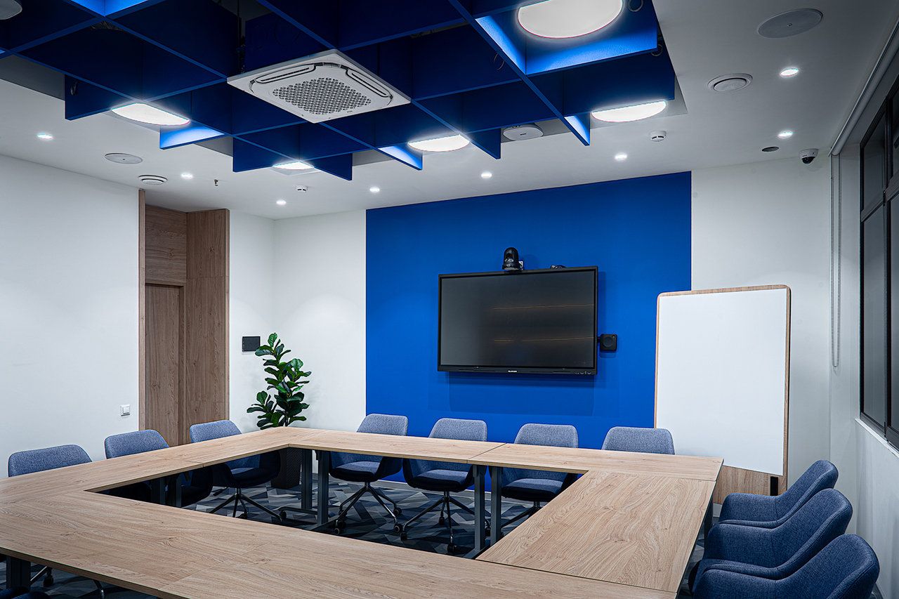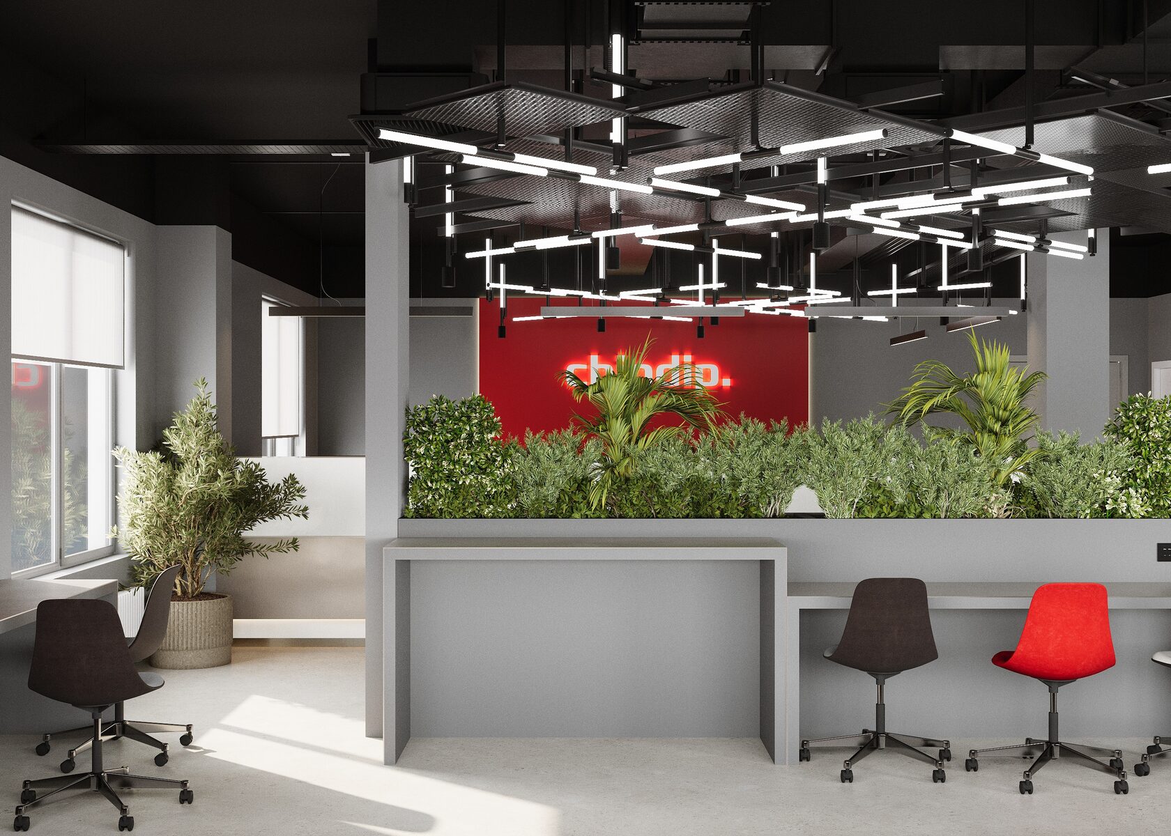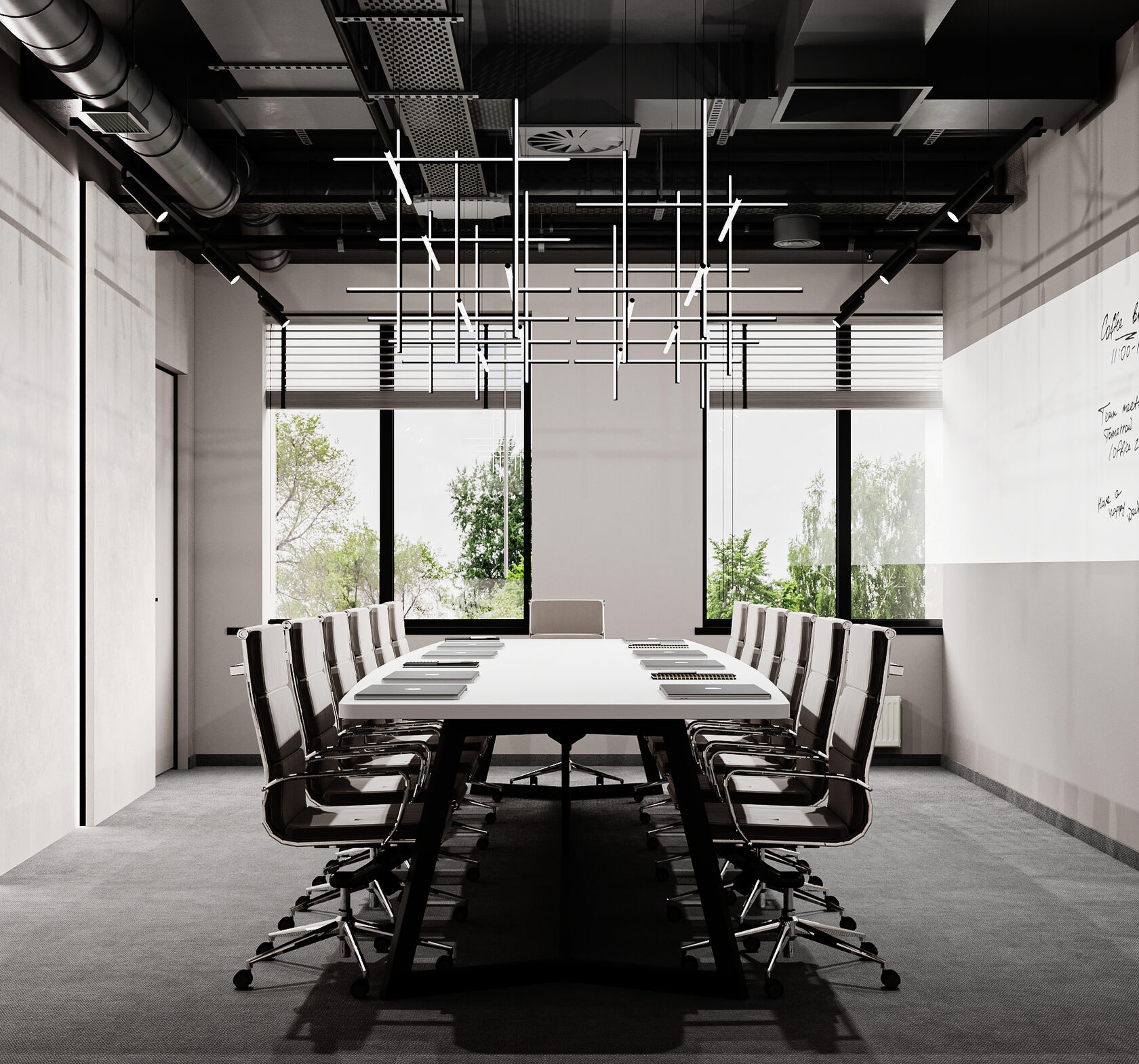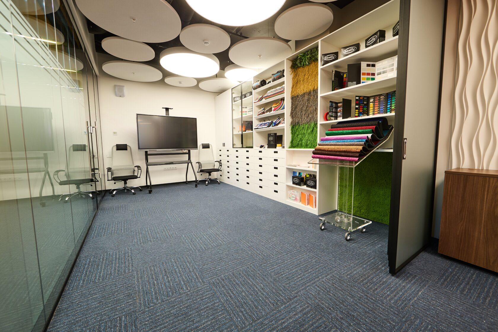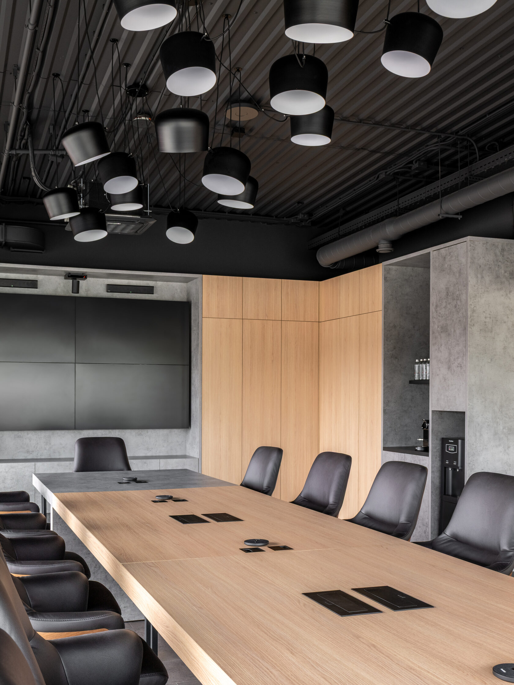 Концепция: Основная концепция — создание интерьера, безупречно отражающего инженерную направленность компании и обеспечивающего максимальный комфорт. Пространство было тщательно зонировано от приемной до архива и кухни, с учетом всех технических требований. В дизайн органично интегрированы продукты Заказчика, включая панели SUBU, что усилило визуальный образ и продемонстрировало их функциональность. Применены инновационные инженерные решения, такие как система фальшпола для гибкости коммуникаций и акустические потолочные баффлы для шумоподавления, обеспечивая технологичность и эргономику.