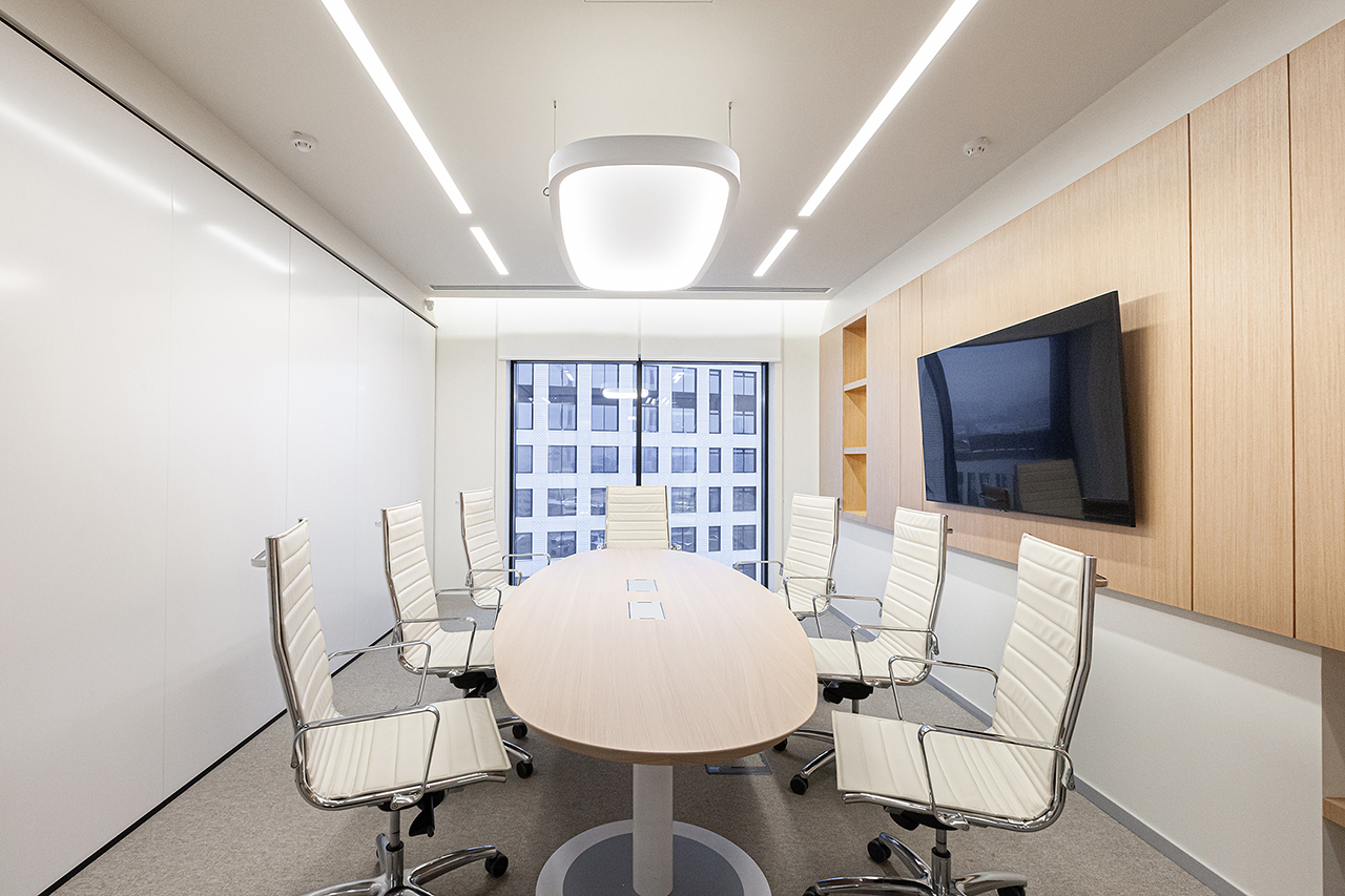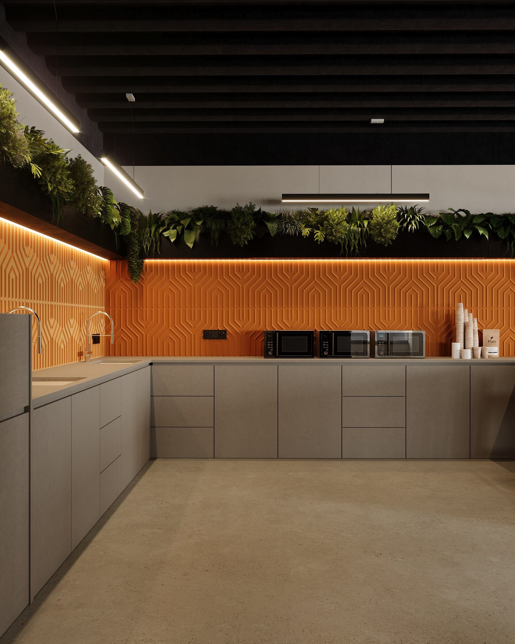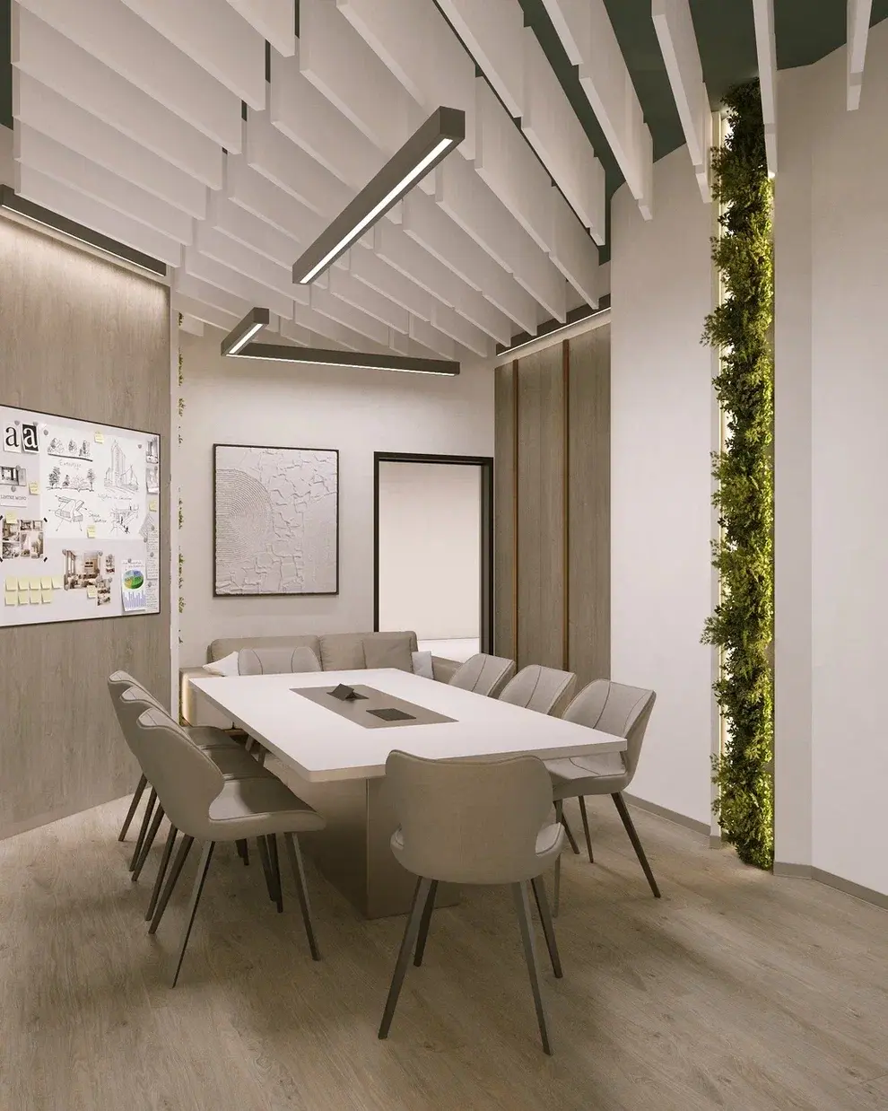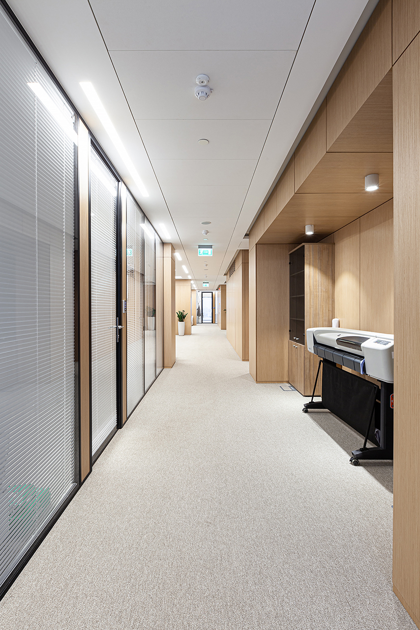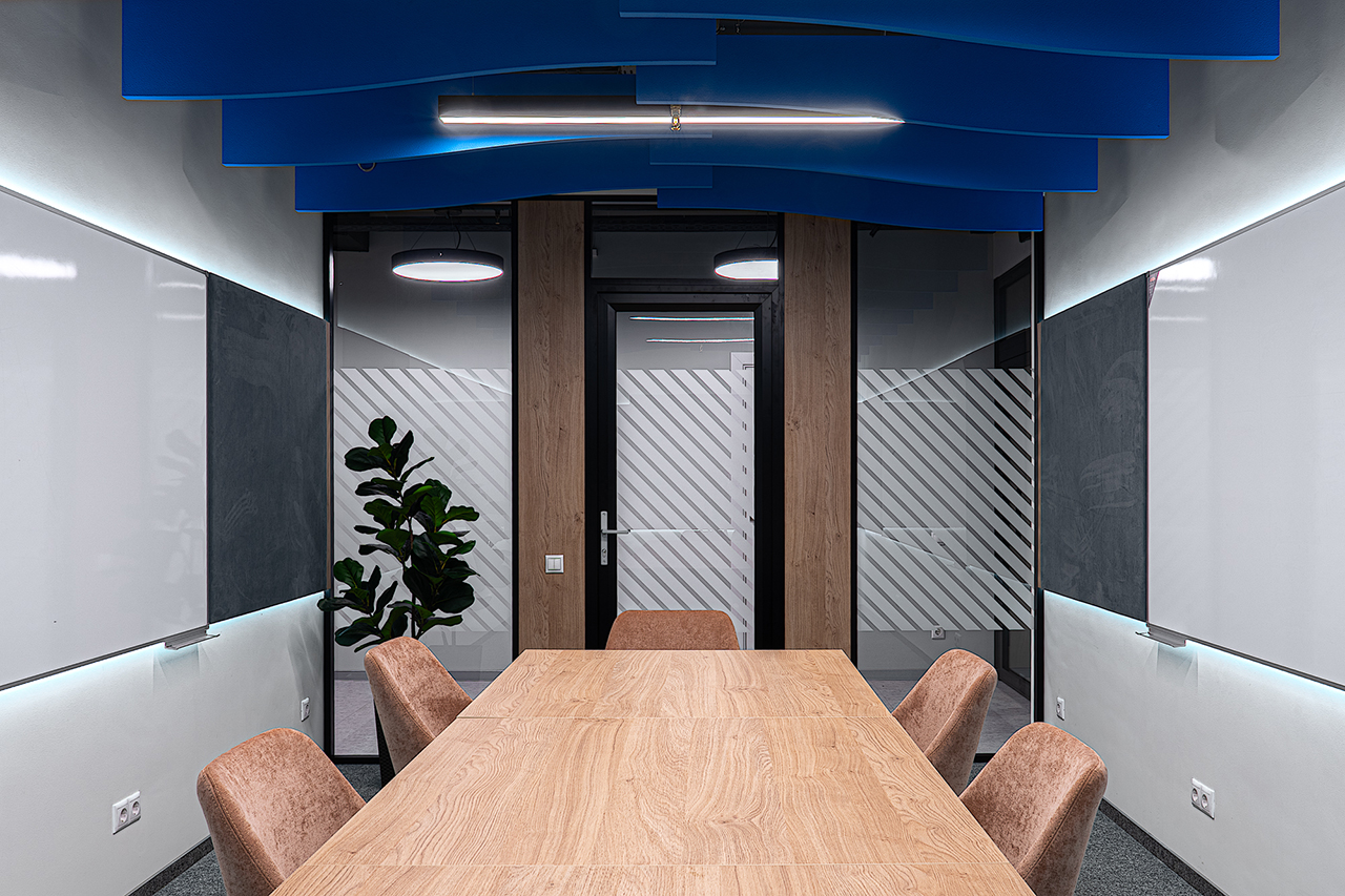 Концепция: Основная концепция — создание интерьера, безупречно отражающего инженерную направленность компании и обеспечивающего максимальный комфорт. Пространство было тщательно зонировано от приемной до архива и кухни, с учетом всех технических требований. В дизайн органично интегрированы продукты Заказчика, включая панели SUBU, что усилило визуальный образ и продемонстрировало их функциональность. Применены инновационные инженерные решения, такие как система фальшпола для гибкости коммуникаций и акустические потолочные баффлы для шумоподавления, обеспечивая технологичность и эргономику.