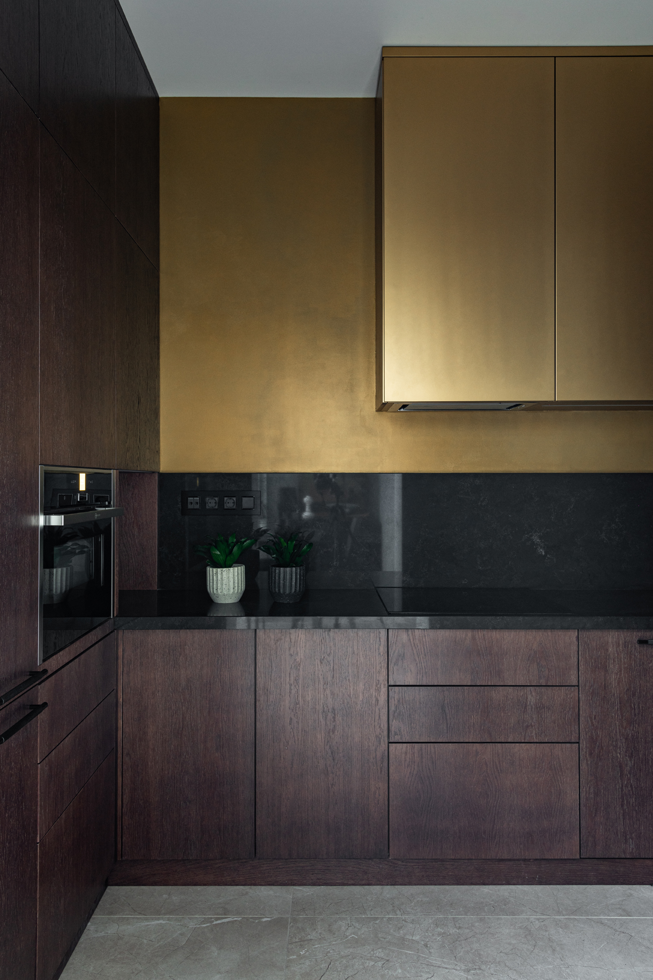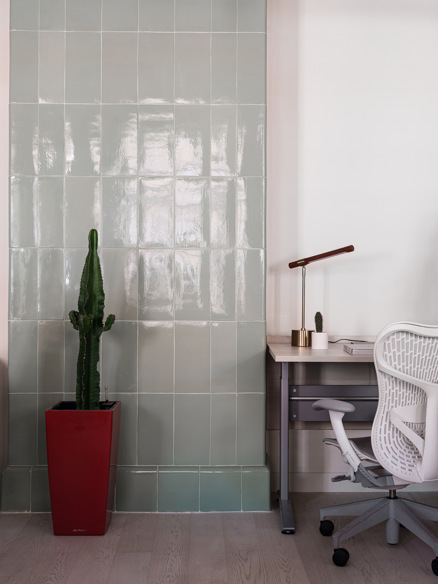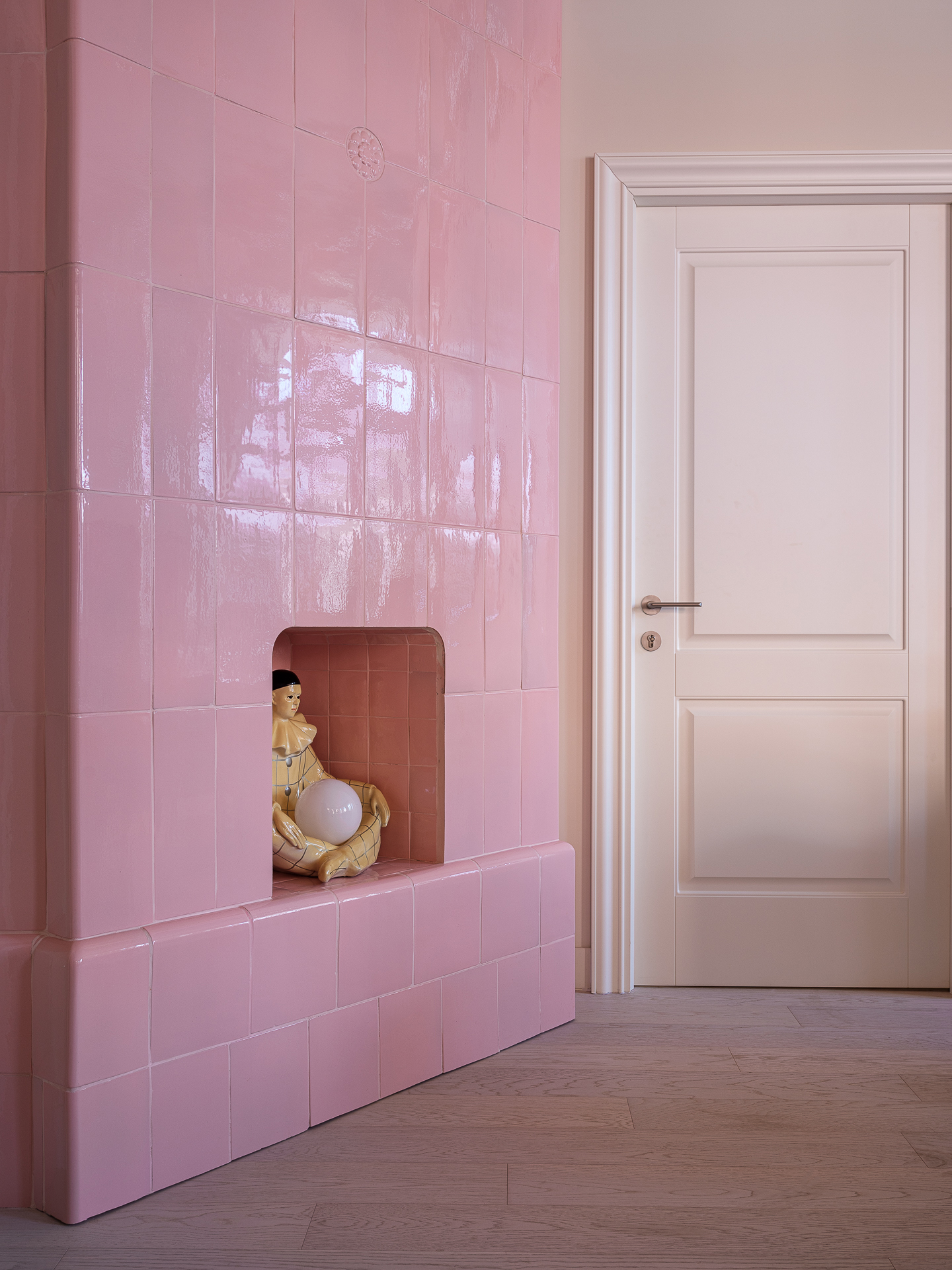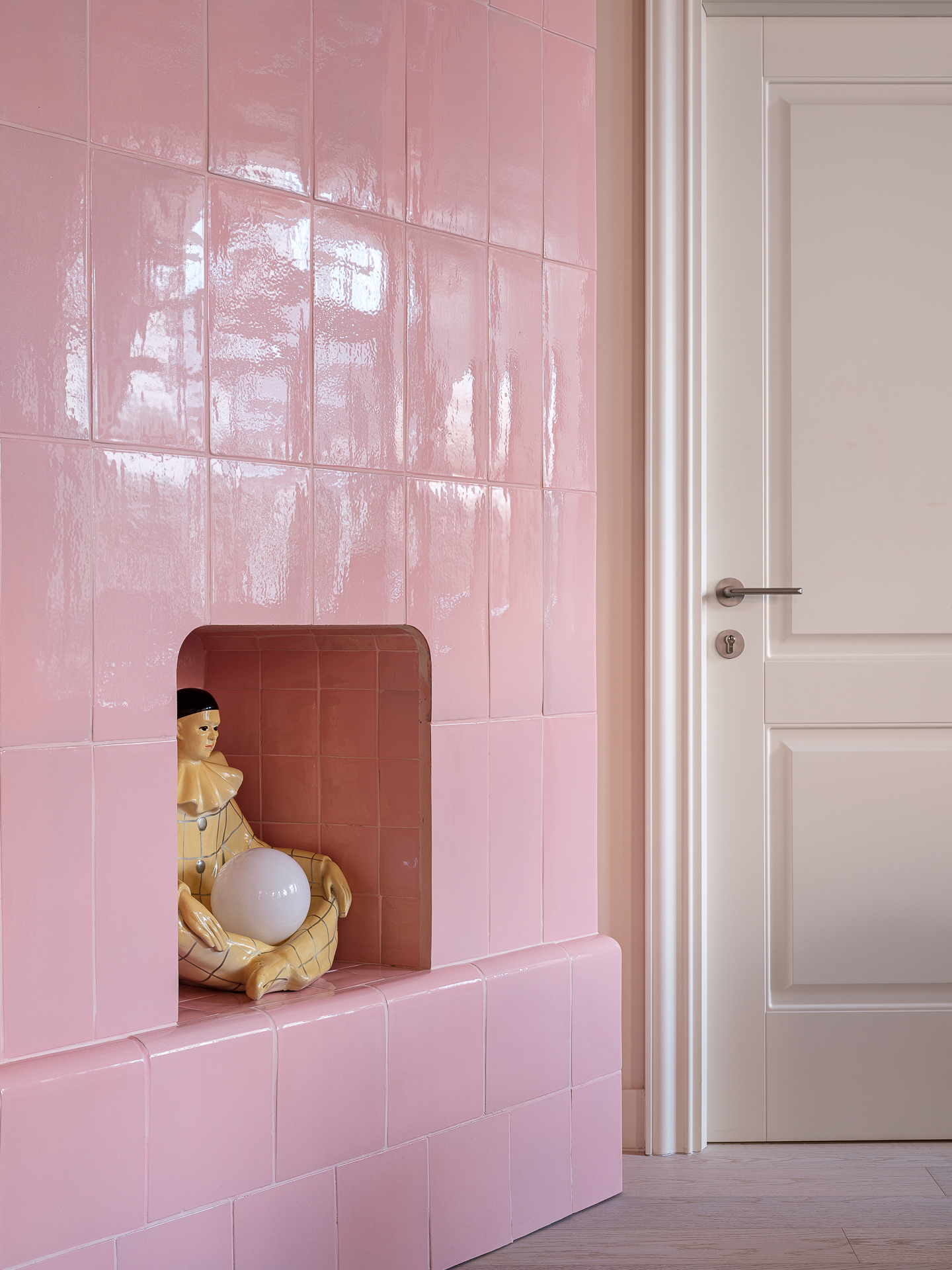 Особое внимание уделено сложным элементам: В одной из выступающих колонн находился люк с коммуникациями, который невозможно было убрать. Вместо того, чтобы его прятать, я превратила его в декоративный акцент — скрытый люк замаскирован под кирпичную кладку. Также удалось органично вписать: