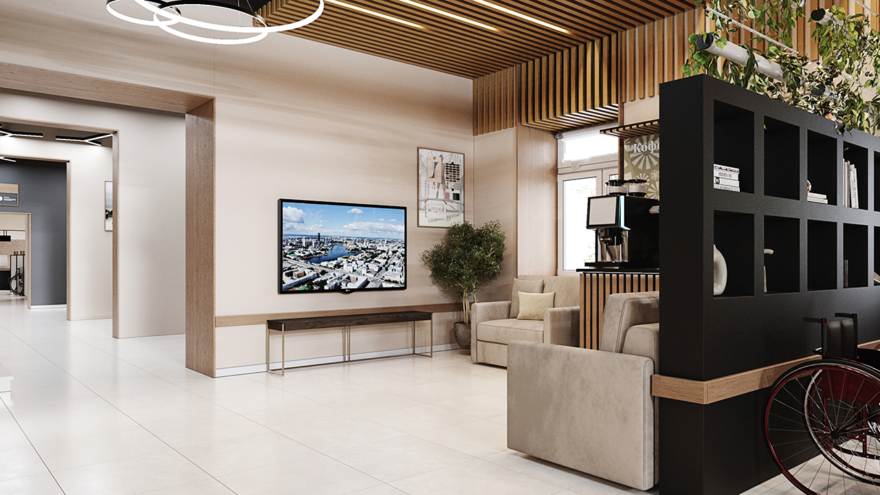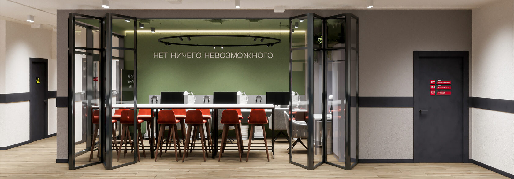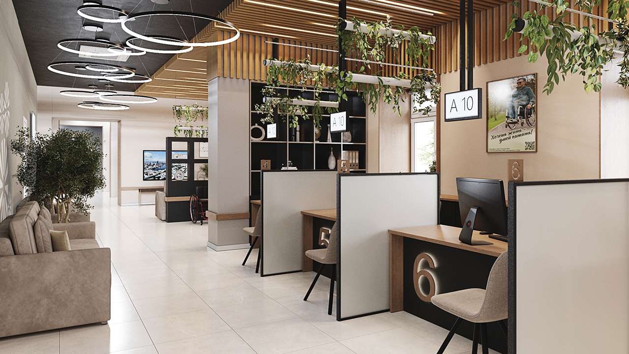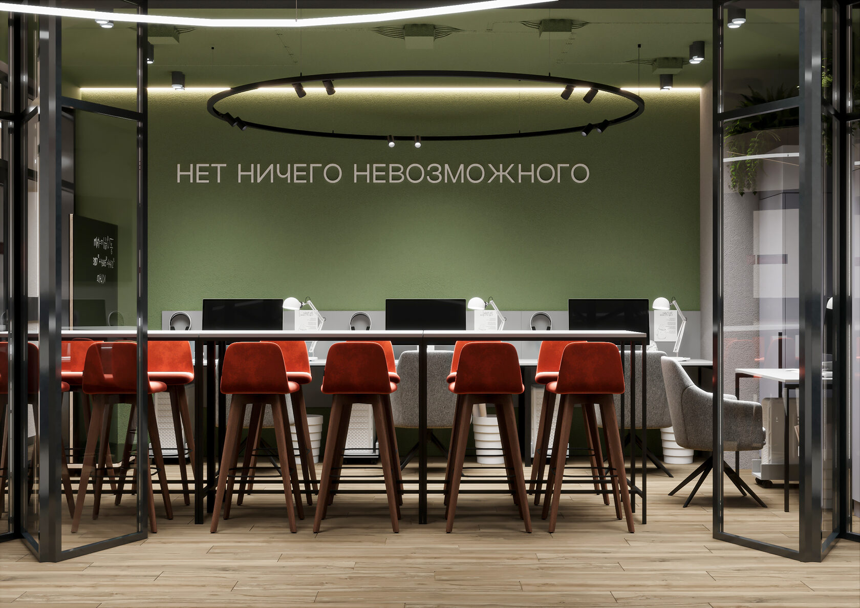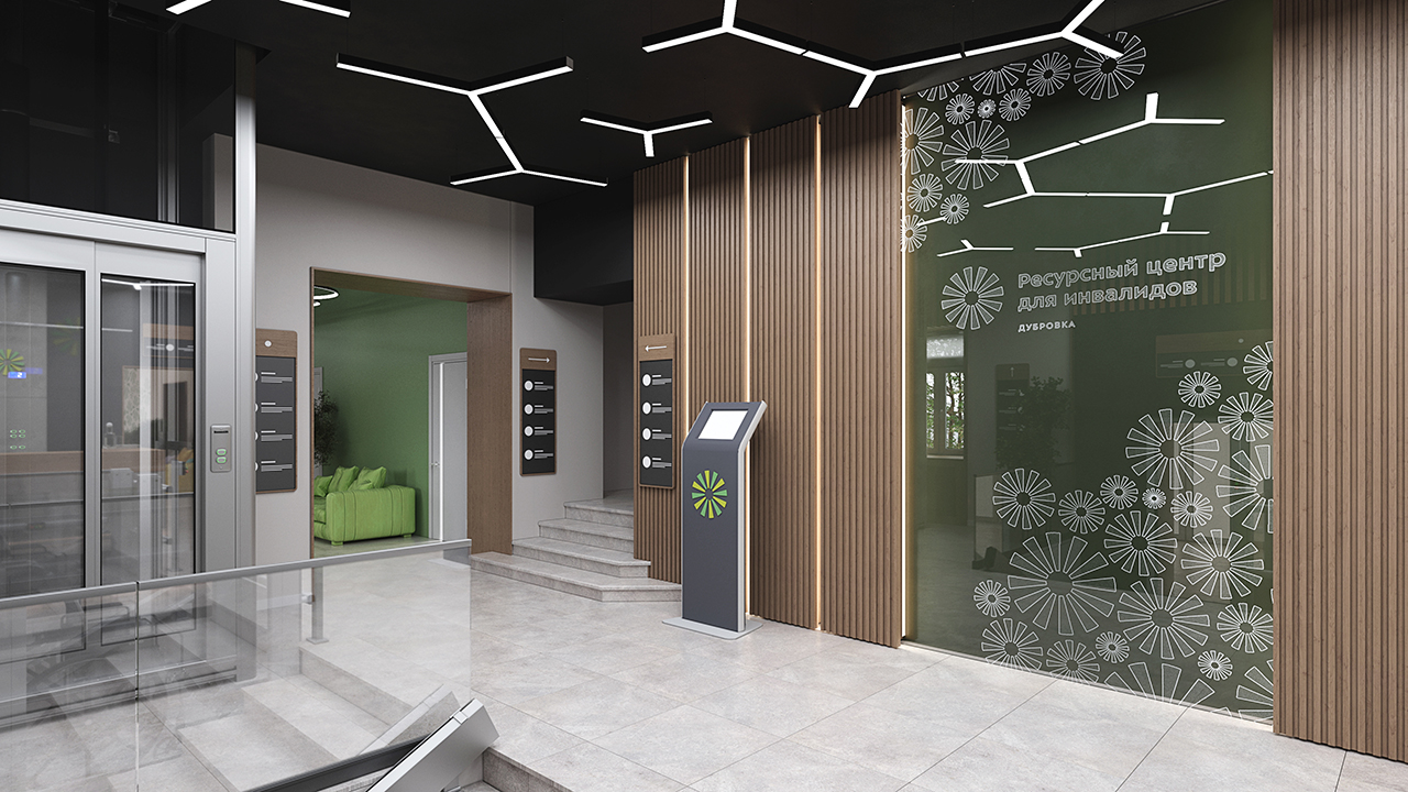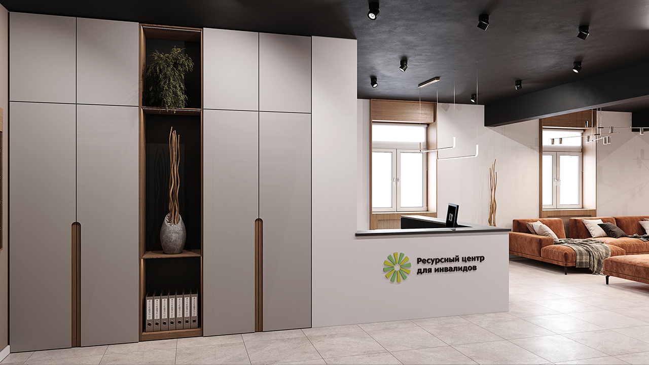 Итог: Результатом стал образцовый инклюзивный и функциональный общественный интерьер, где эстетика и удобство сочетаются с принципами абсолютной доступности. Многофункциональная переговорная, легко трансформирующаяся в зал для презентаций или учебный класс, значительно расширяет возможности центра, делая его ключевым местом для общения, развития и поддержки. Это пространство служит не только эффективной рабочей площадкой, но и настоящим ресурсом для всех групп населения, создавая атмосферу поддержки и равенства.