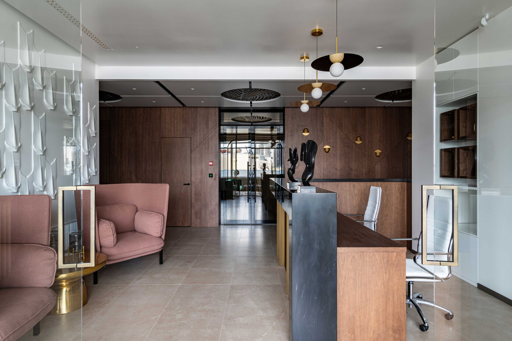 Разработанный в тесном сотрудничестве с ведущим дизайнером Жанной Лагно, данный проект демонстрирует комплексный подход к созданию высокоэффективного и комфортного пространства. На площади в 465 м² были реализованы инновационные решения, направленные на оптимизацию взаимодействия сотрудников и посетителей, обеспечивая при этом максимальный уровень уюта и функциональности.