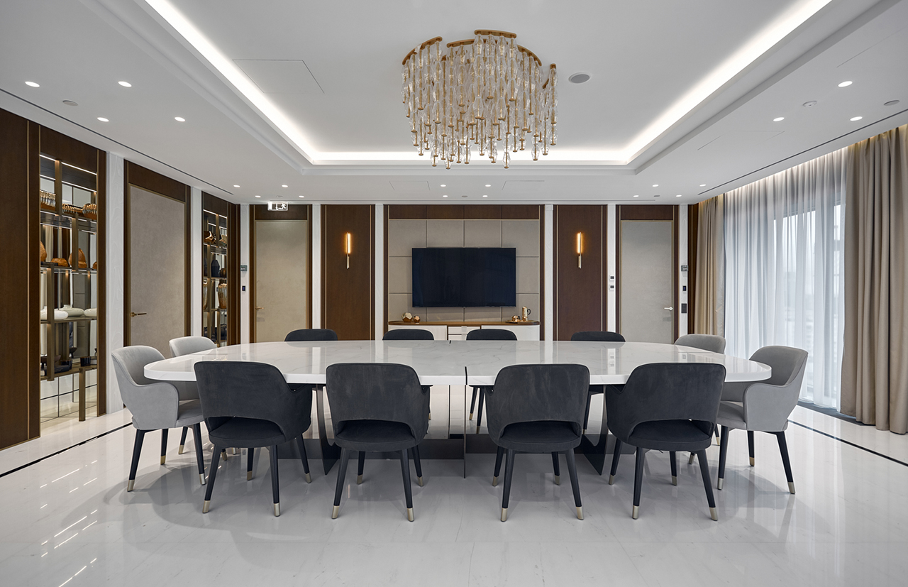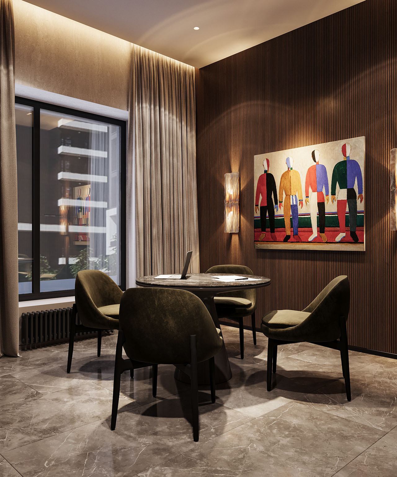 Этот проект представляет собой уникальное пространство, где бизнес-культура переплетается с историей предпринимателей и искусством. Он объединяет премиальную эстетику и философию крупнейшего за Уралом делового сообщества, подчеркивая ценность доверия, репутации и опыта. Каждая деталь интерьера функциональна и наполнена глубоким смыслом.