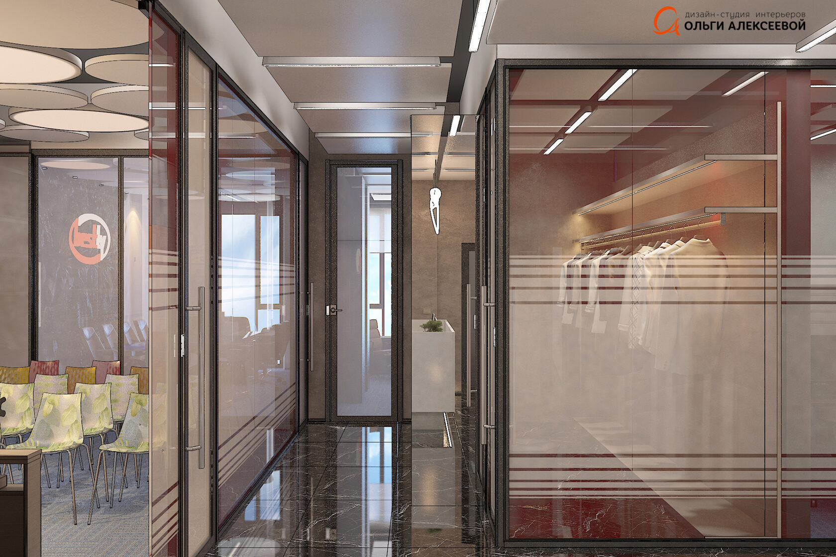 Концепция: В основе концепции лежит принцип «интеллектуального трансформатора»: каждый этаж спроектирован как самостоятельная единица с возможностью легкой интеграции в общую структуру. Центральные зоны с трансформируемыми ресепшн-зонами, модульные переговорные и кабинеты, а также системы фальшполов для коммуникаций и акустических потолков обеспечивают максимальную вариативность планировок. Дизайн-идея акцентирует внимание на создании светлого, эргономичного и акустически комфортного интерьера, способствующего высокой концентрации и благополучию сотрудников. Использование двойных стеклянных перегородок с жалюзи максимизирует естественное освещение и предлагает регулируемую приватность.