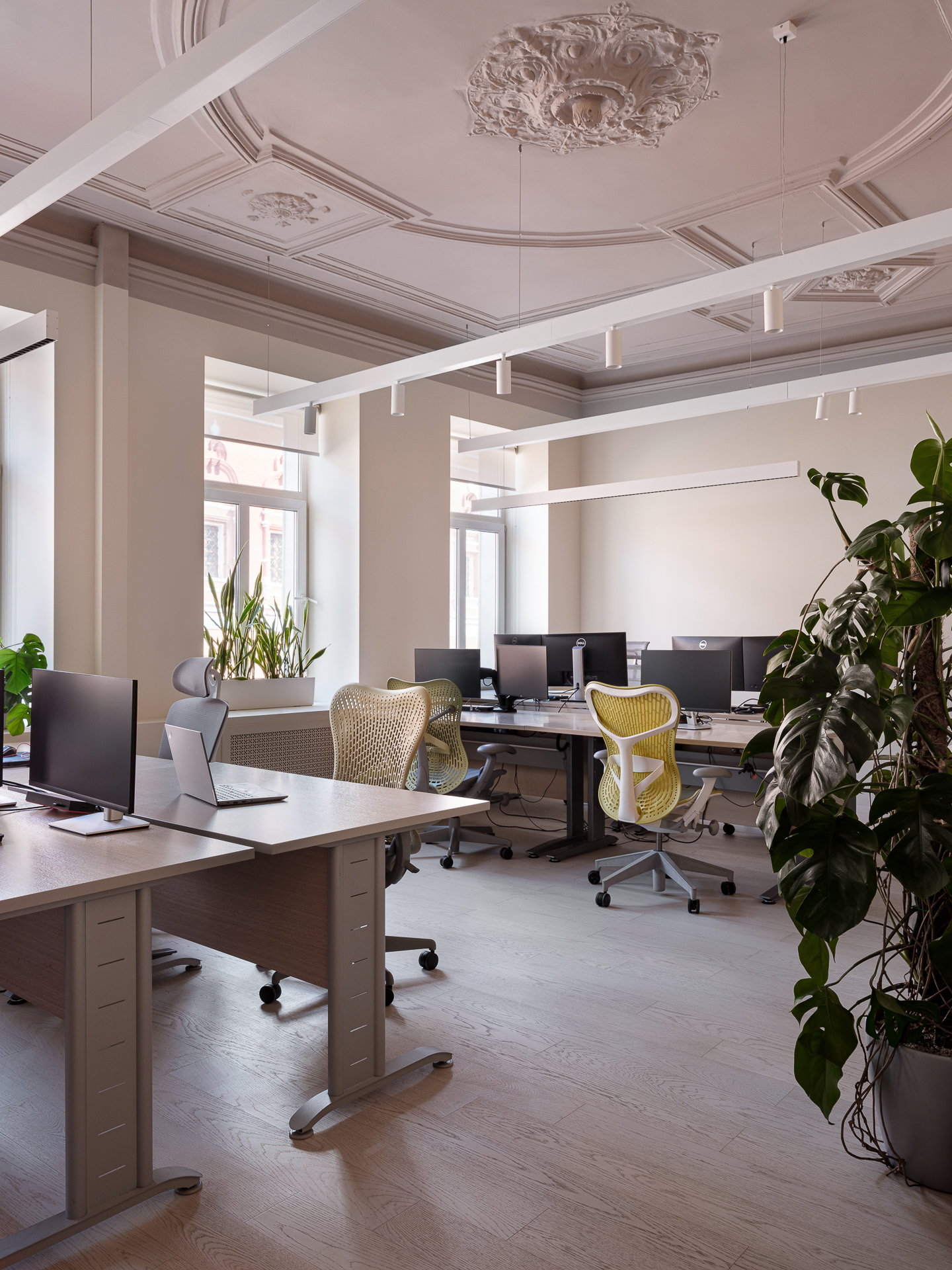 Итог: Конечный результат — это образцовый кейс трансформации исторического объекта в передовой технологический хаб. Проект успешно реализовал амбициозную цель по созданию стильного, современного и эргономичного офиса, который не только соответствует высоким стандартам IT-индустрии, но и гармонично вписан в культурное наследие Санкт-Петербурга, став воплощением синергии прошлого и будущего.