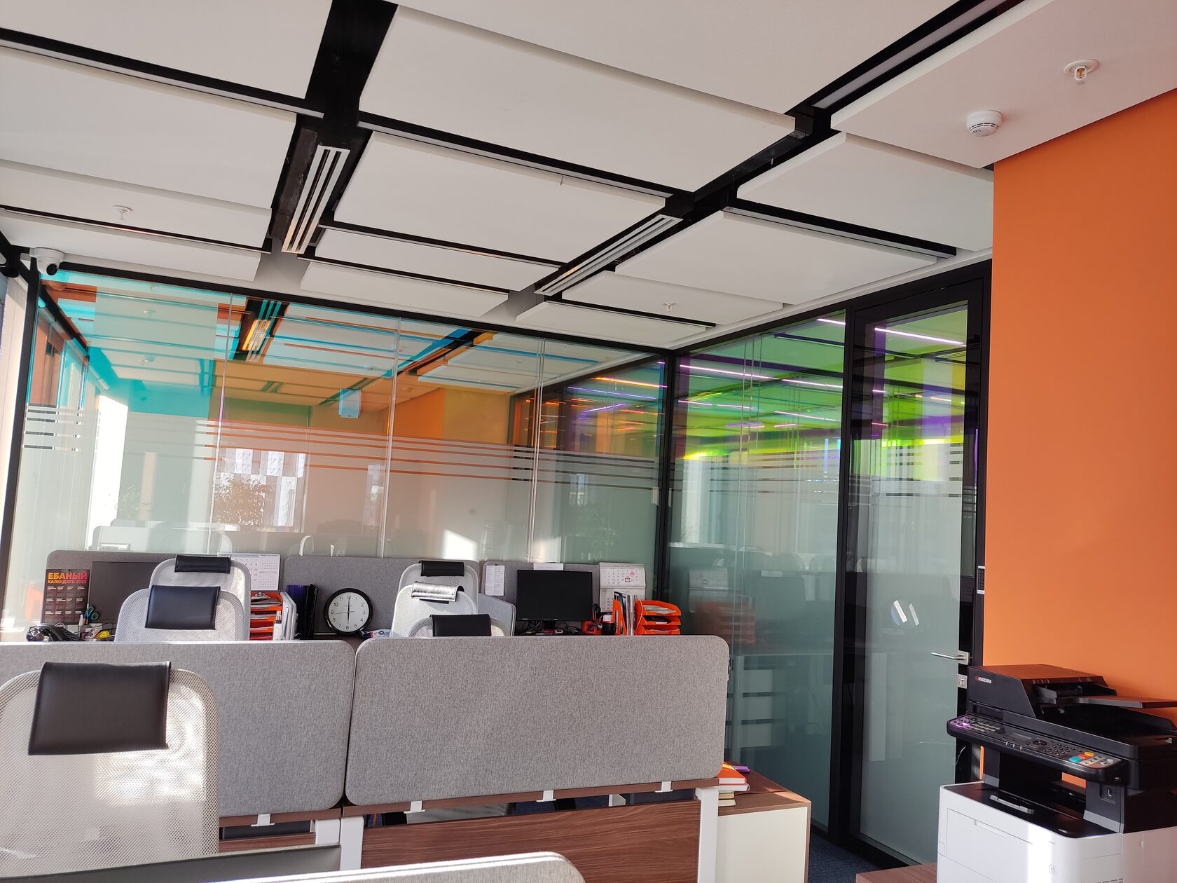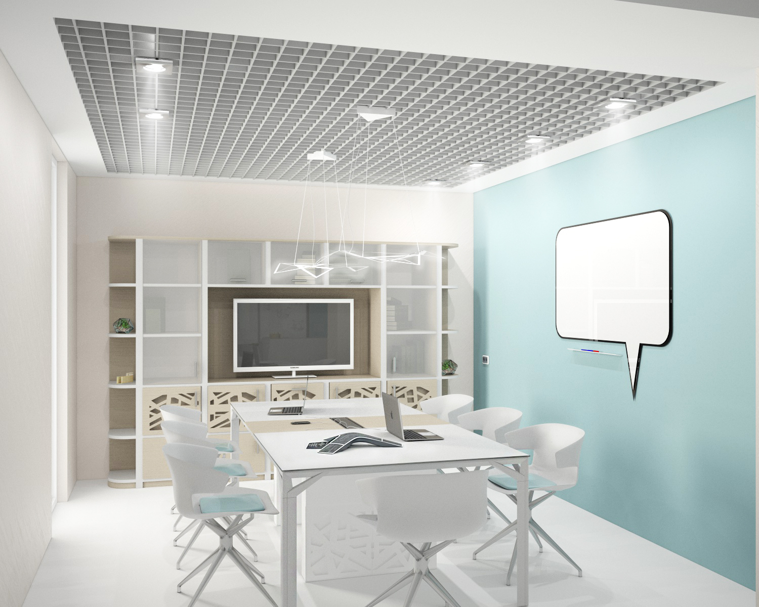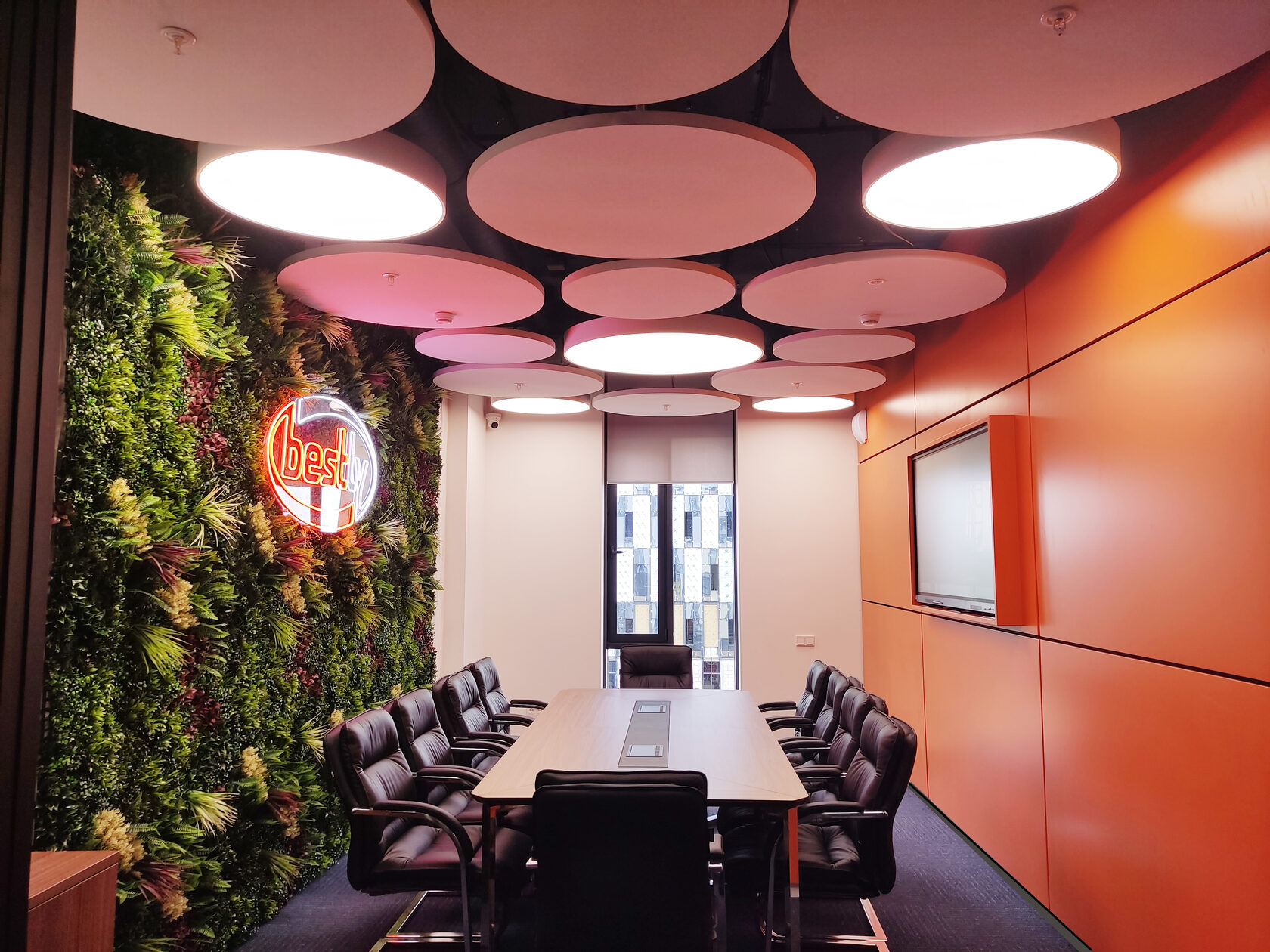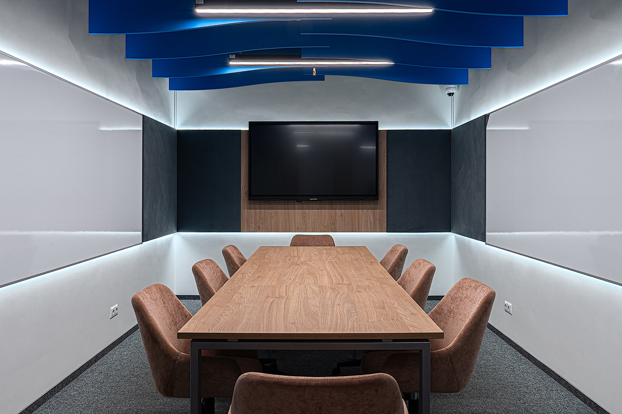 Акустический комфорт — мягкие панели в переговорных, экраны между рабочими местами