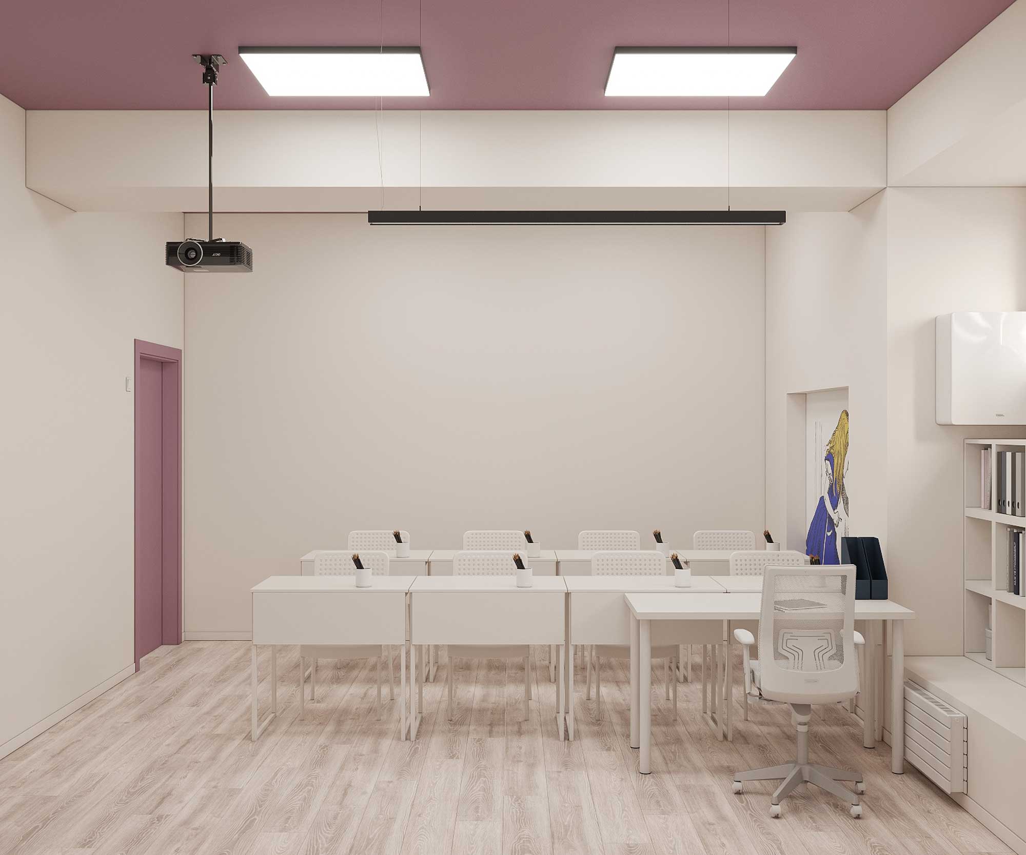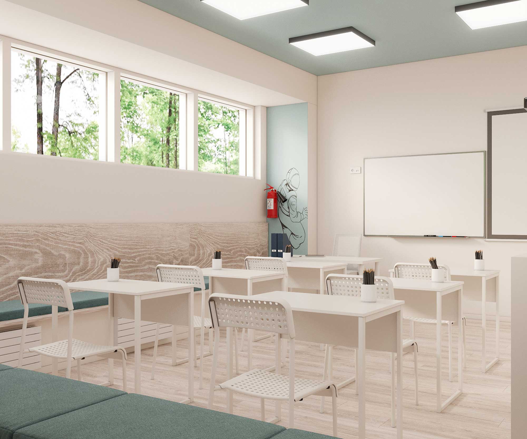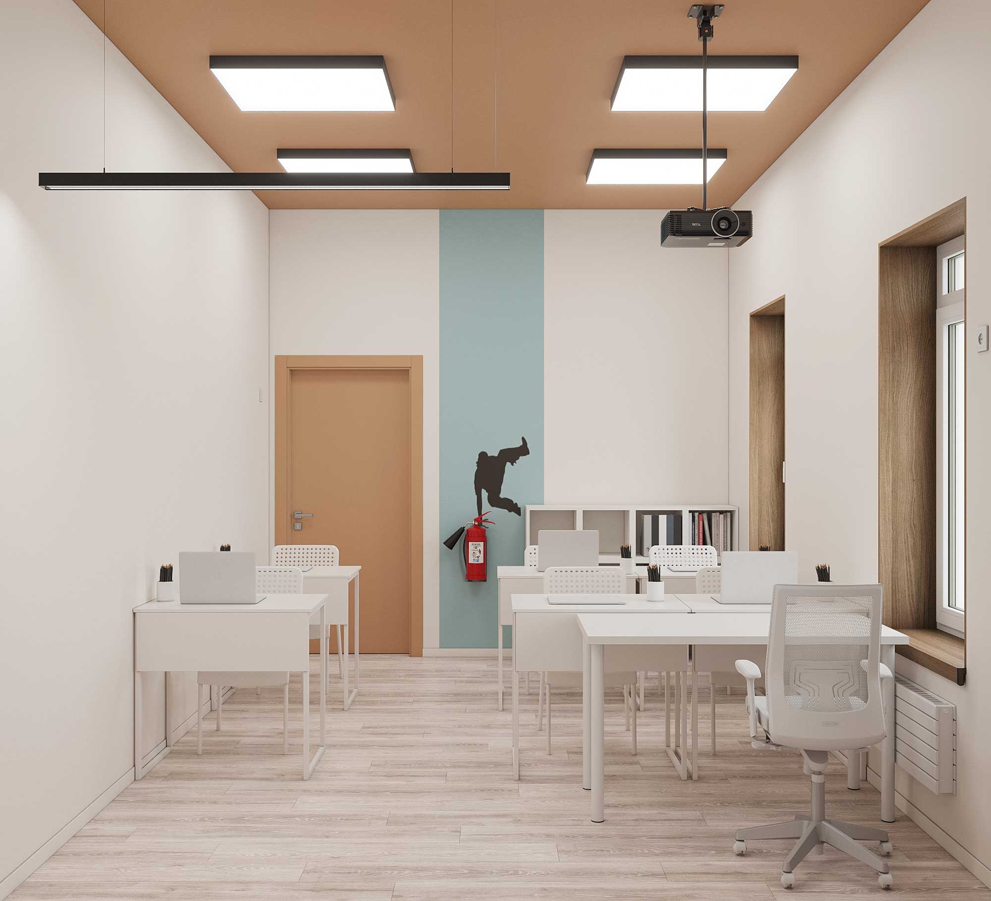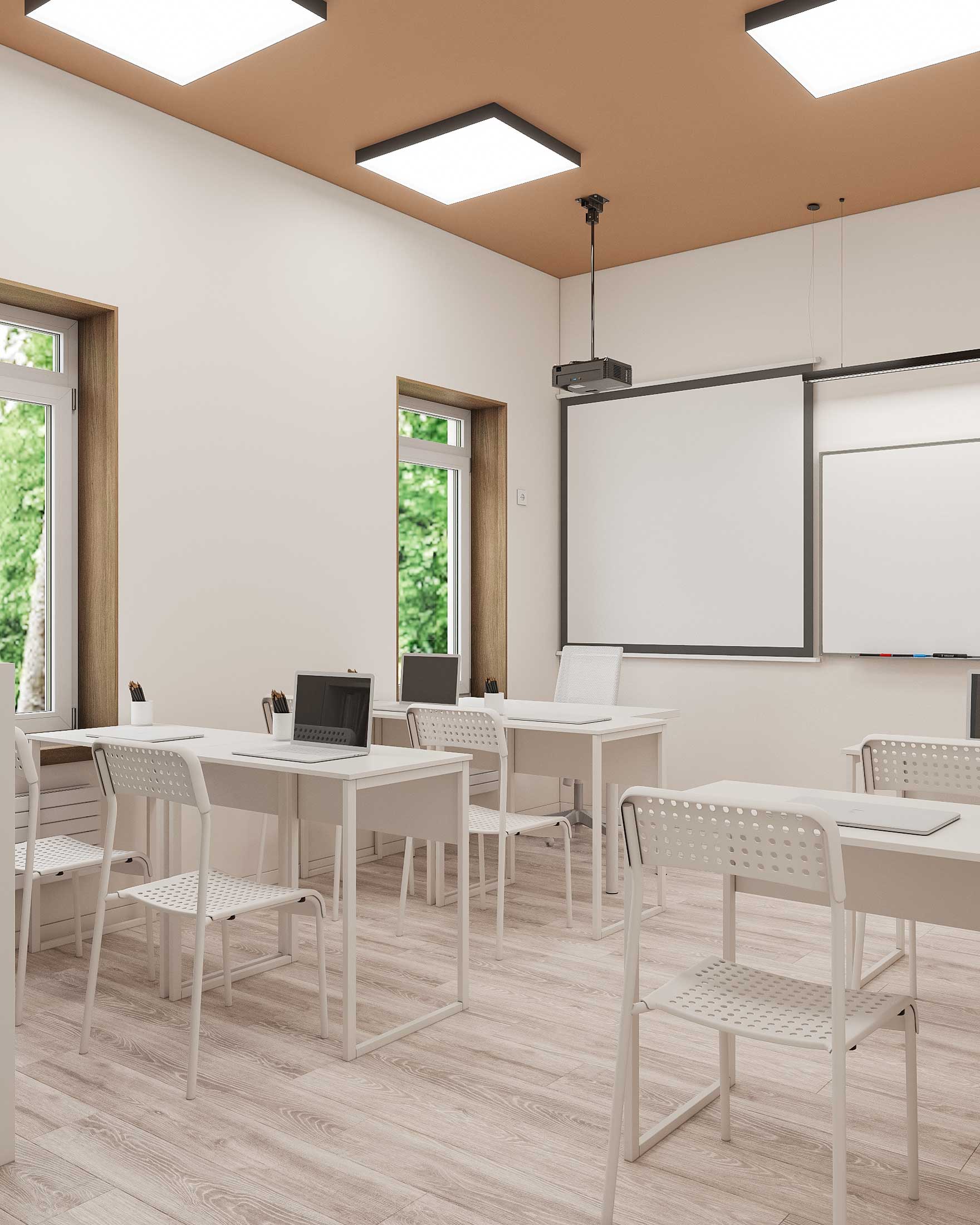 Итог: Результатом работы стало создание современного, функционального и эстетически привлекательного образовательного пространства. Этот интерьер идеально адаптирован под потребности учащихся и педагогического состава, обеспечивая оптимальные условия для глубокого изучения предметов, подготовки к важным экзаменам и гармоничного развития детей всех возрастов в безопасной и вдохновляющей атмосфере.