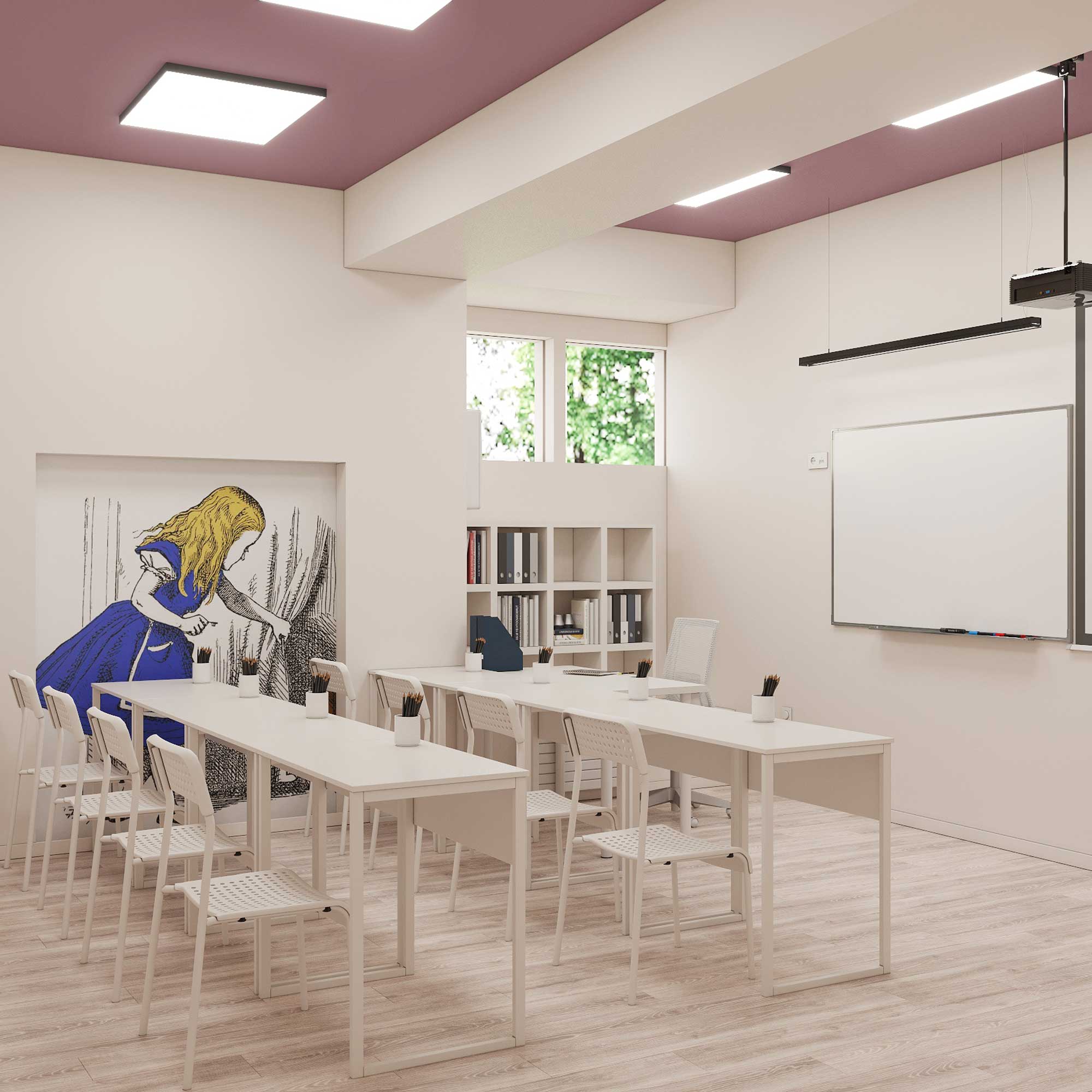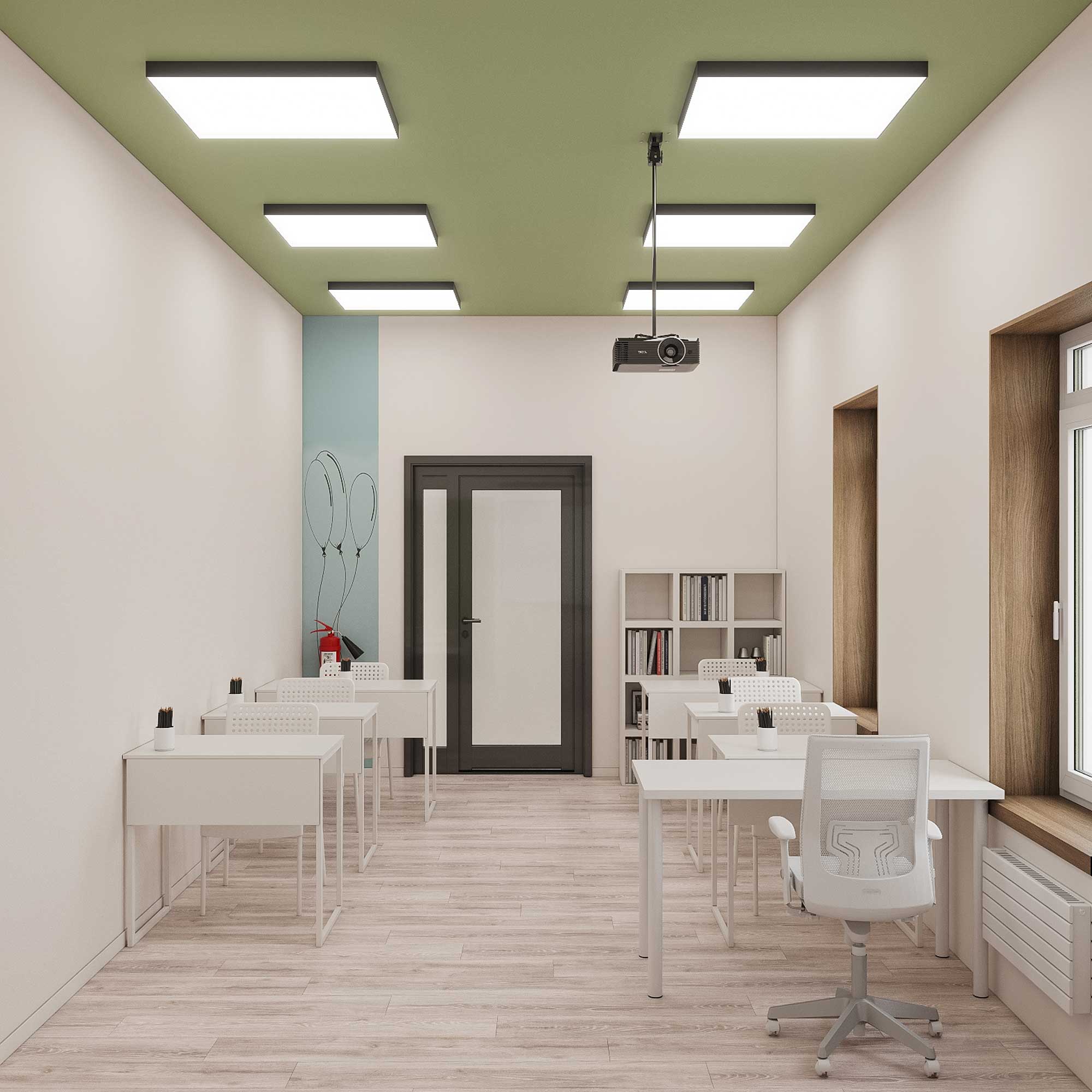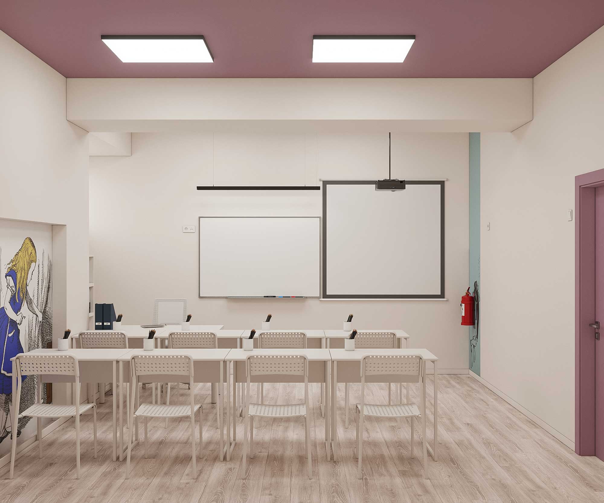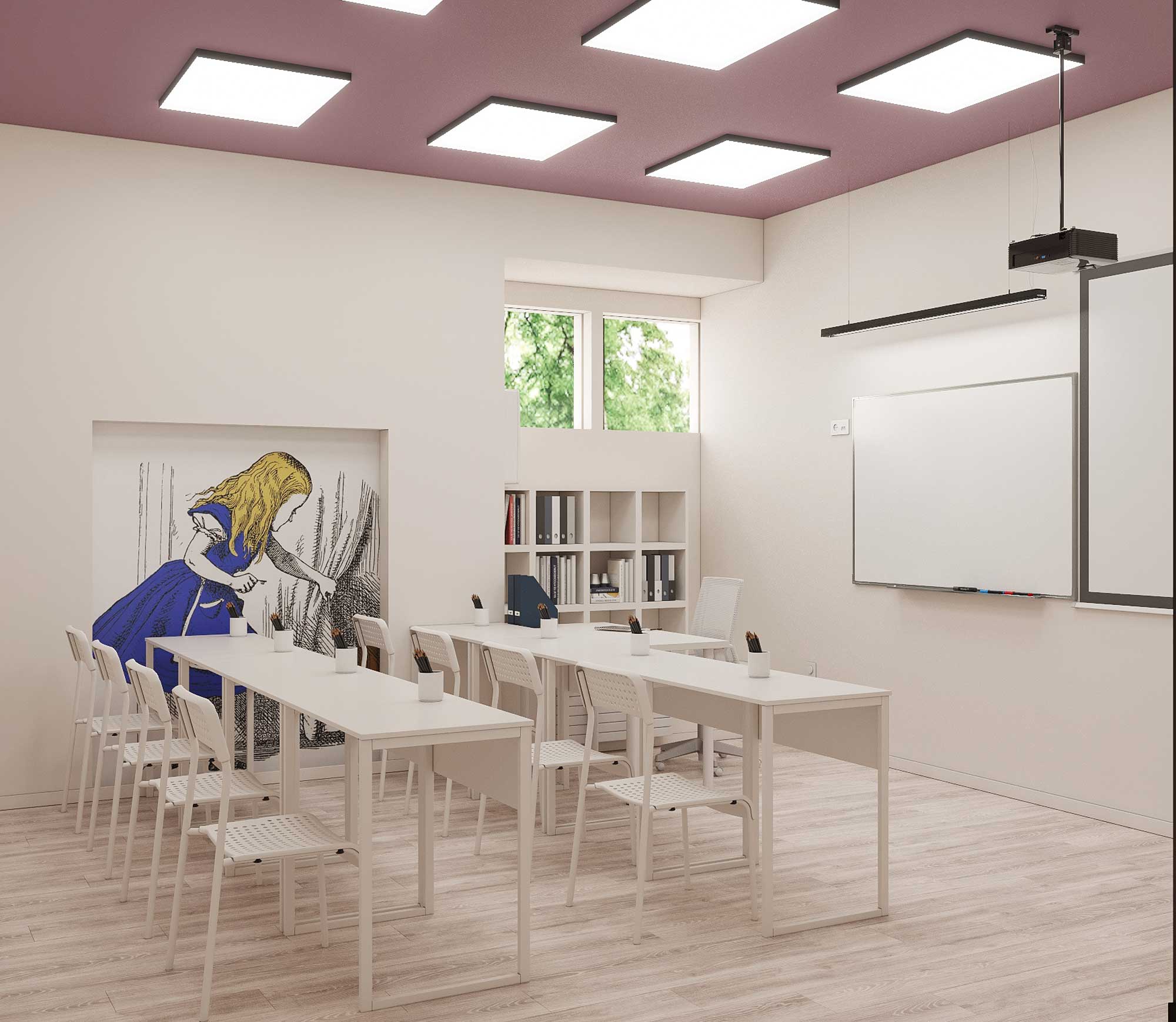 Итог: Результатом работы стало создание современного, функционального и эстетически привлекательного образовательного пространства. Этот интерьер идеально адаптирован под потребности учащихся и педагогического состава, обеспечивая оптимальные условия для глубокого изучения предметов, подготовки к важным экзаменам и гармоничного развития детей всех возрастов в безопасной и вдохновляющей атмосфере.