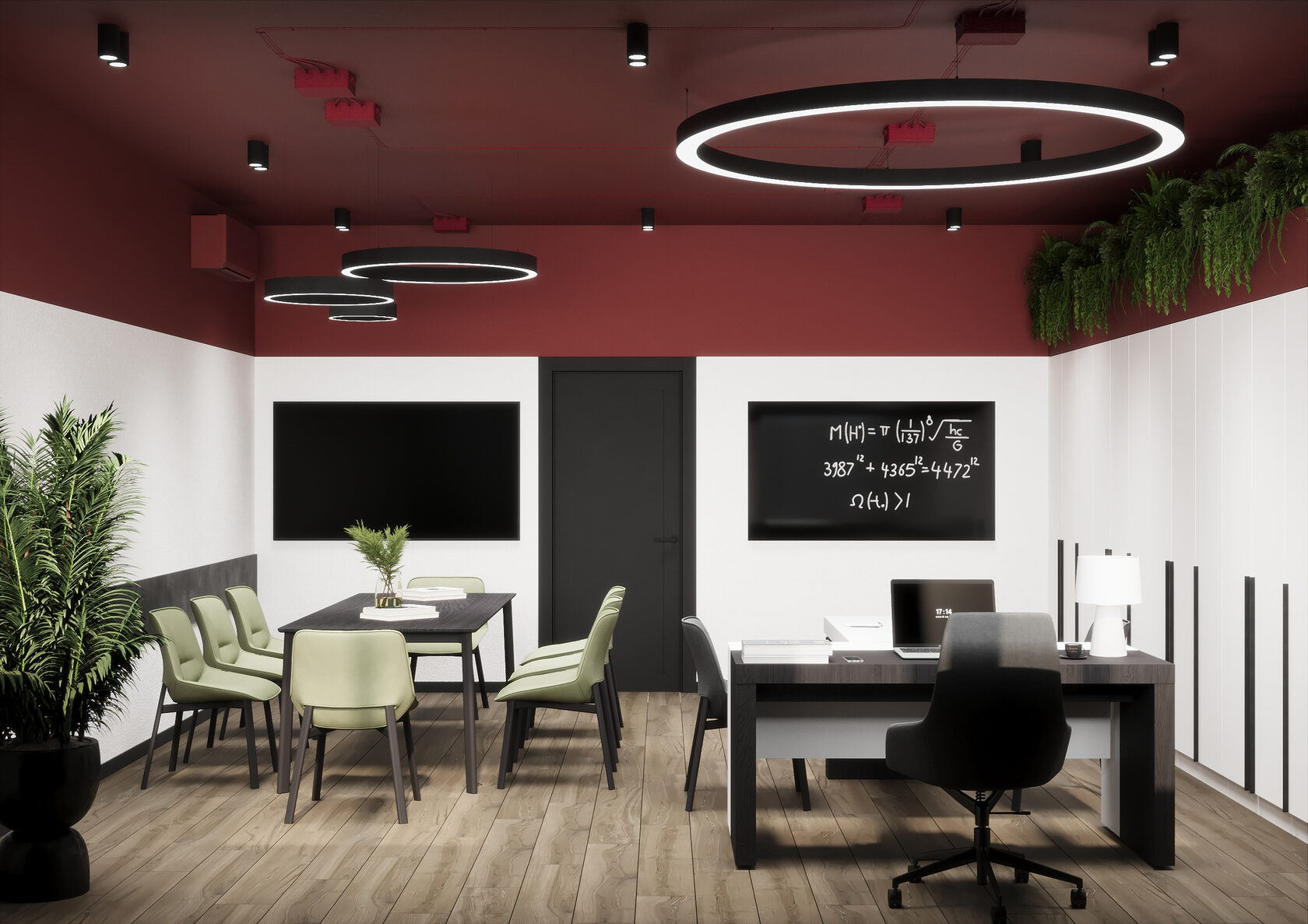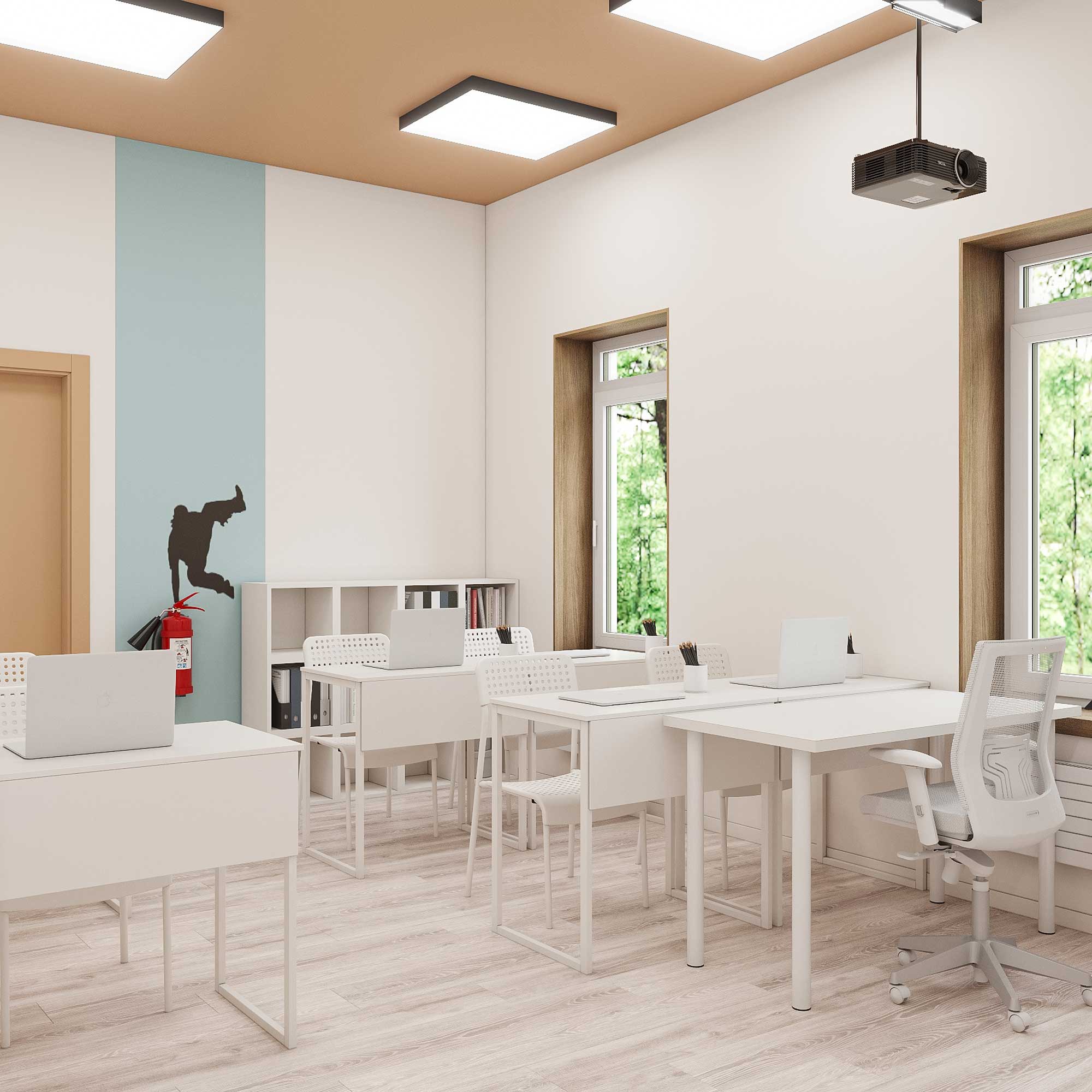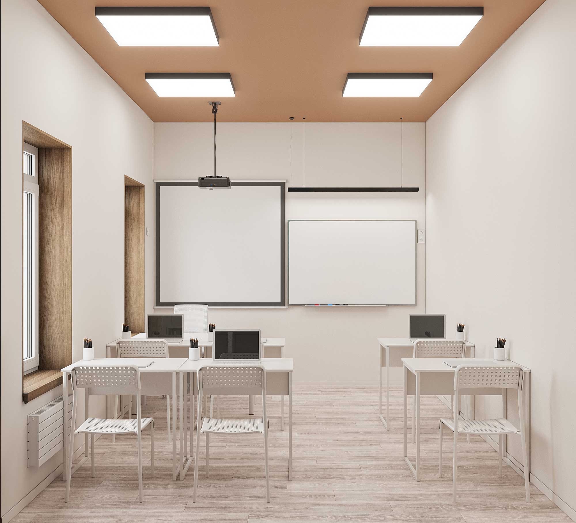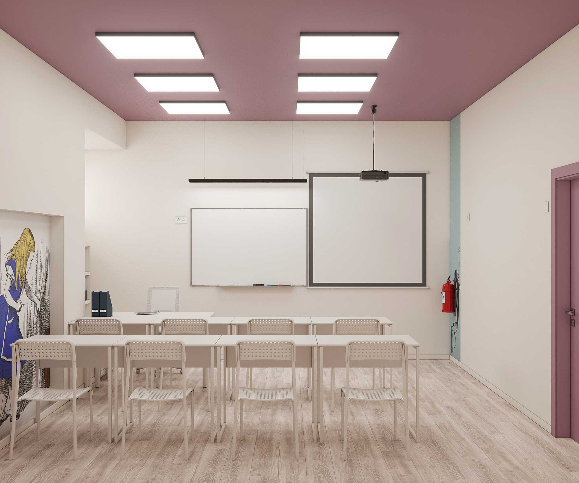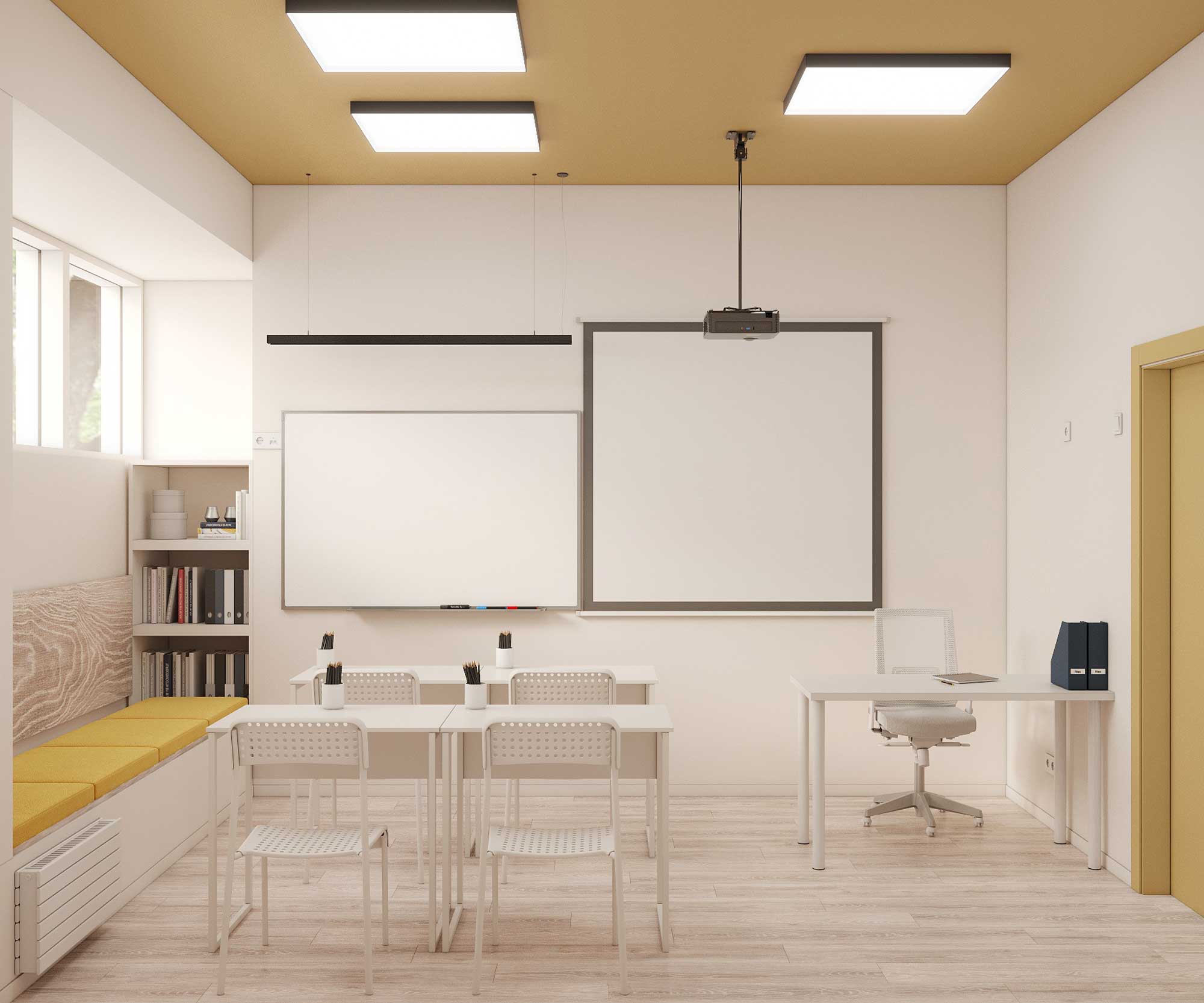 Итог: Результатом работы стало создание современного, функционального и эстетически привлекательного образовательного пространства. Этот интерьер идеально адаптирован под потребности учащихся и педагогического состава, обеспечивая оптимальные условия для глубокого изучения предметов, подготовки к важным экзаменам и гармоничного развития детей всех возрастов в безопасной и вдохновляющей атмосфере.