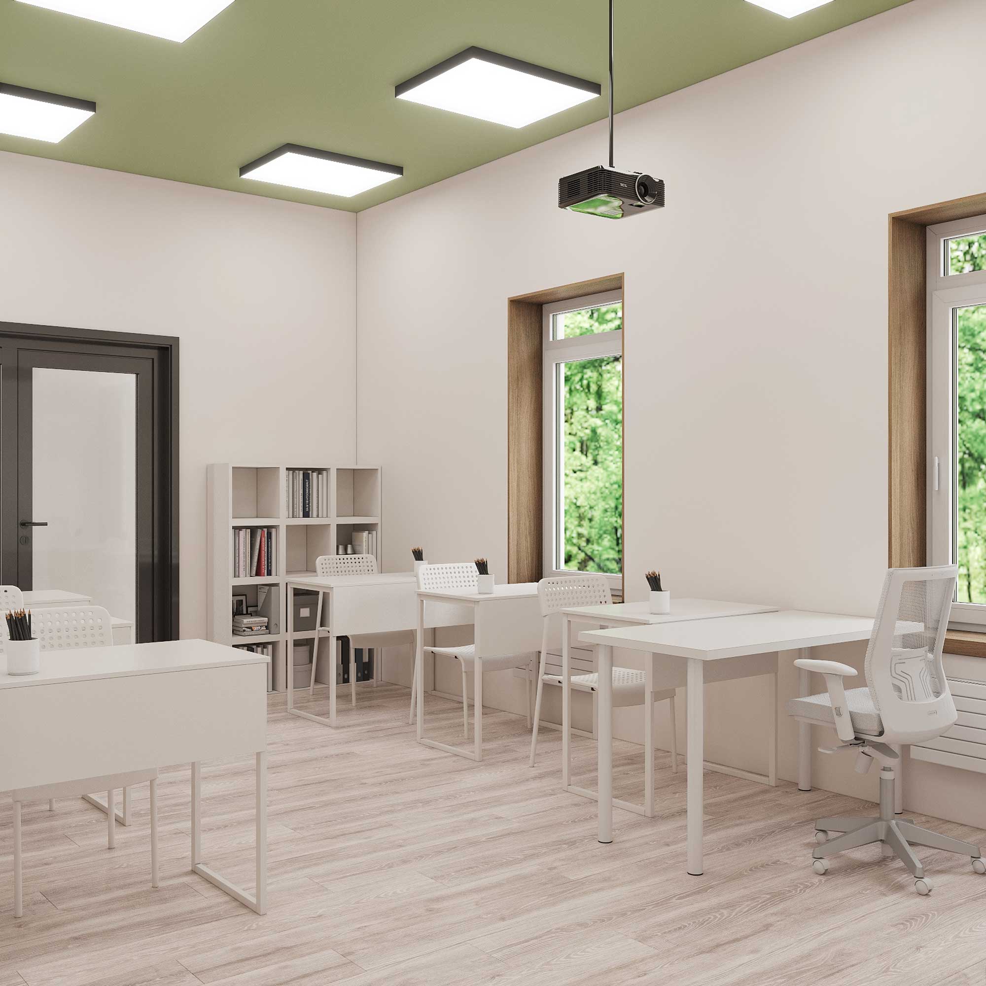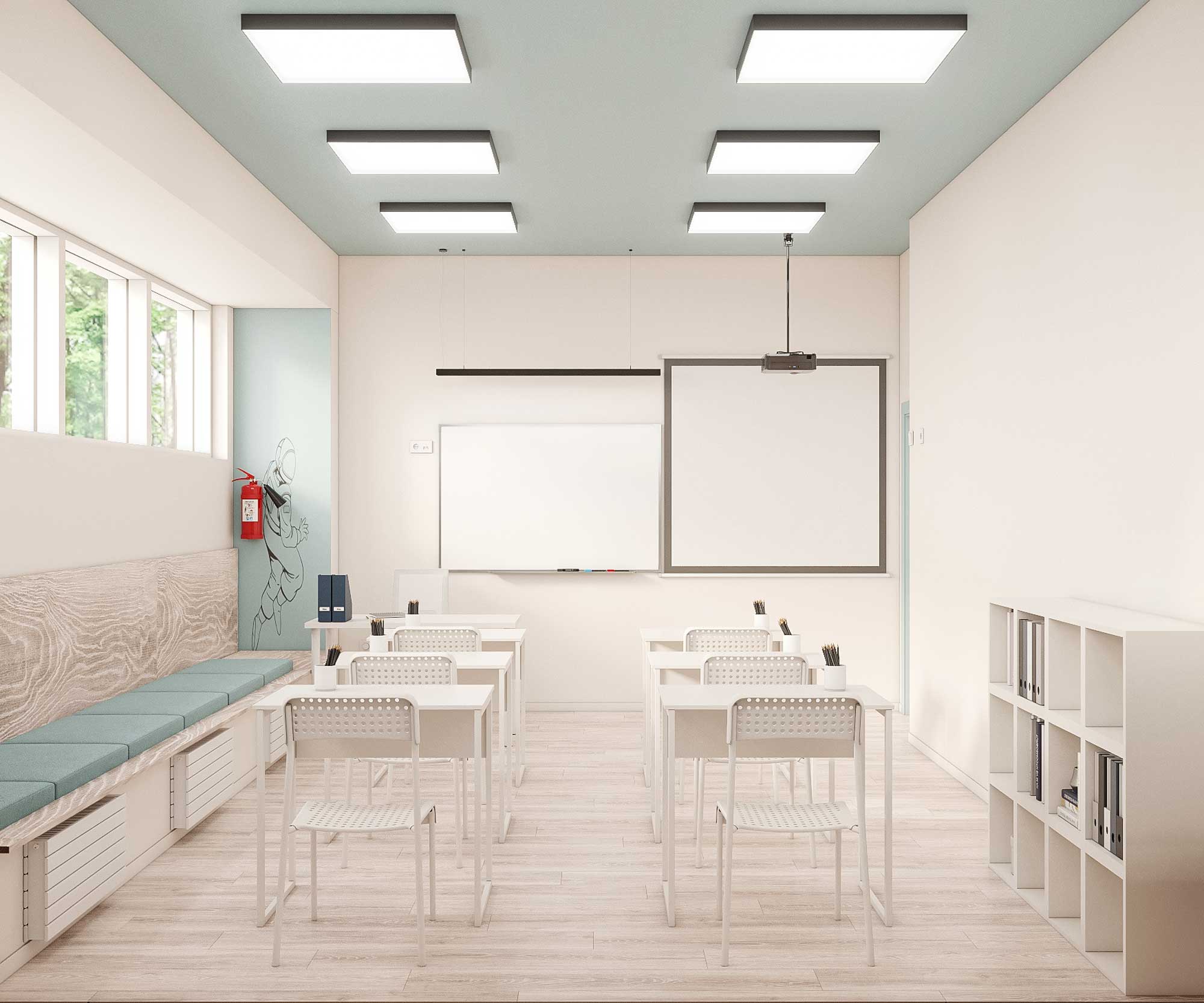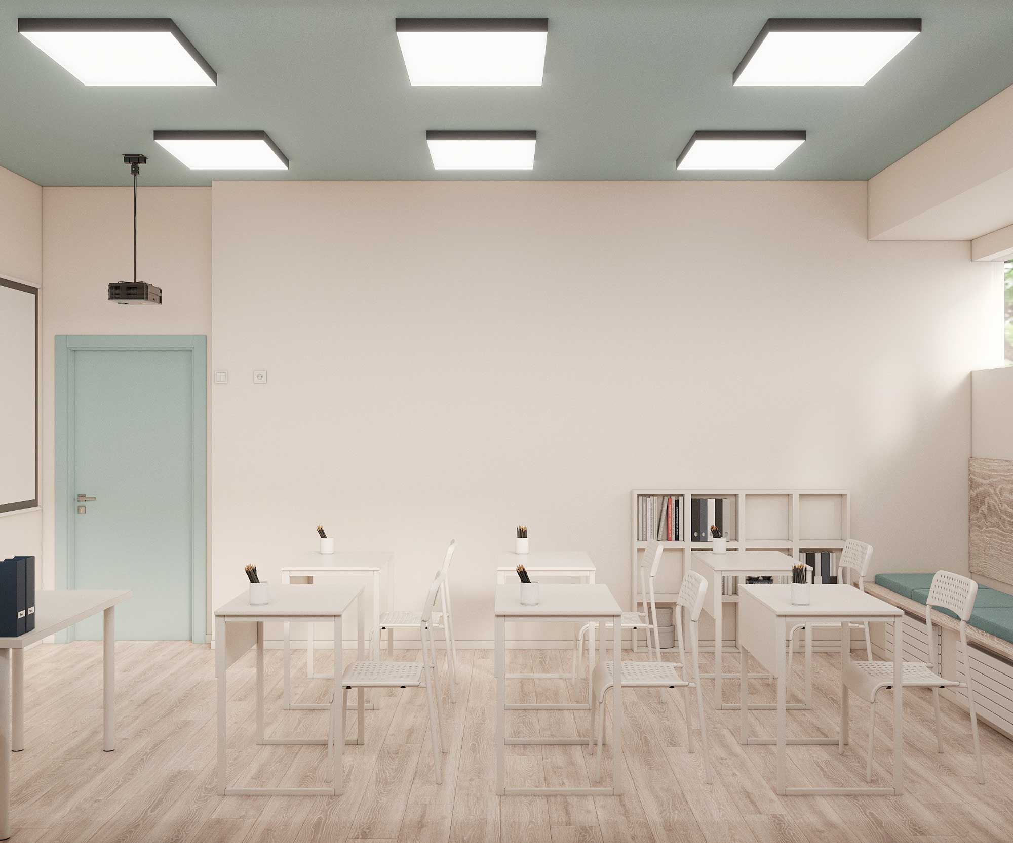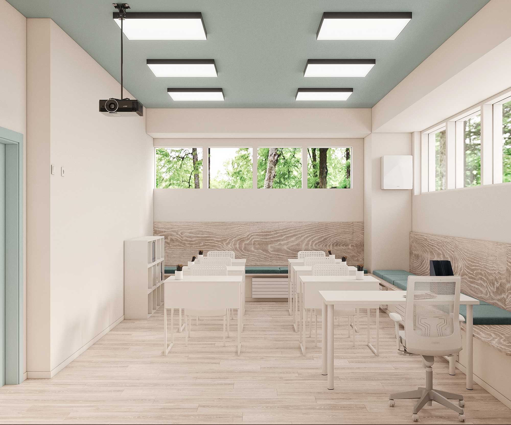 Итог: Результатом работы стало создание современного, функционального и эстетически привлекательного образовательного пространства. Этот интерьер идеально адаптирован под потребности учащихся и педагогического состава, обеспечивая оптимальные условия для глубокого изучения предметов, подготовки к важным экзаменам и гармоничного развития детей всех возрастов в безопасной и вдохновляющей атмосфере.