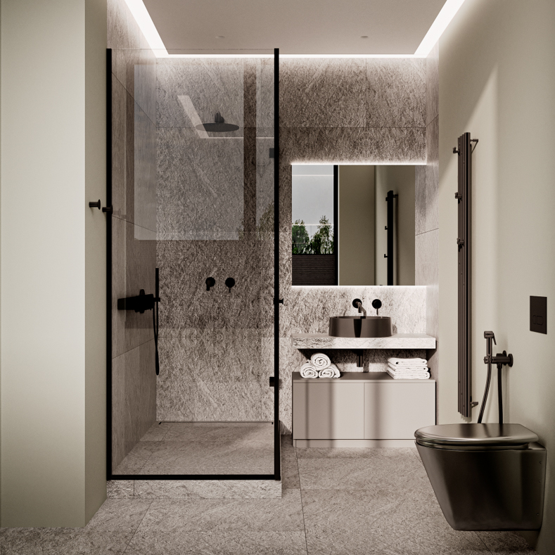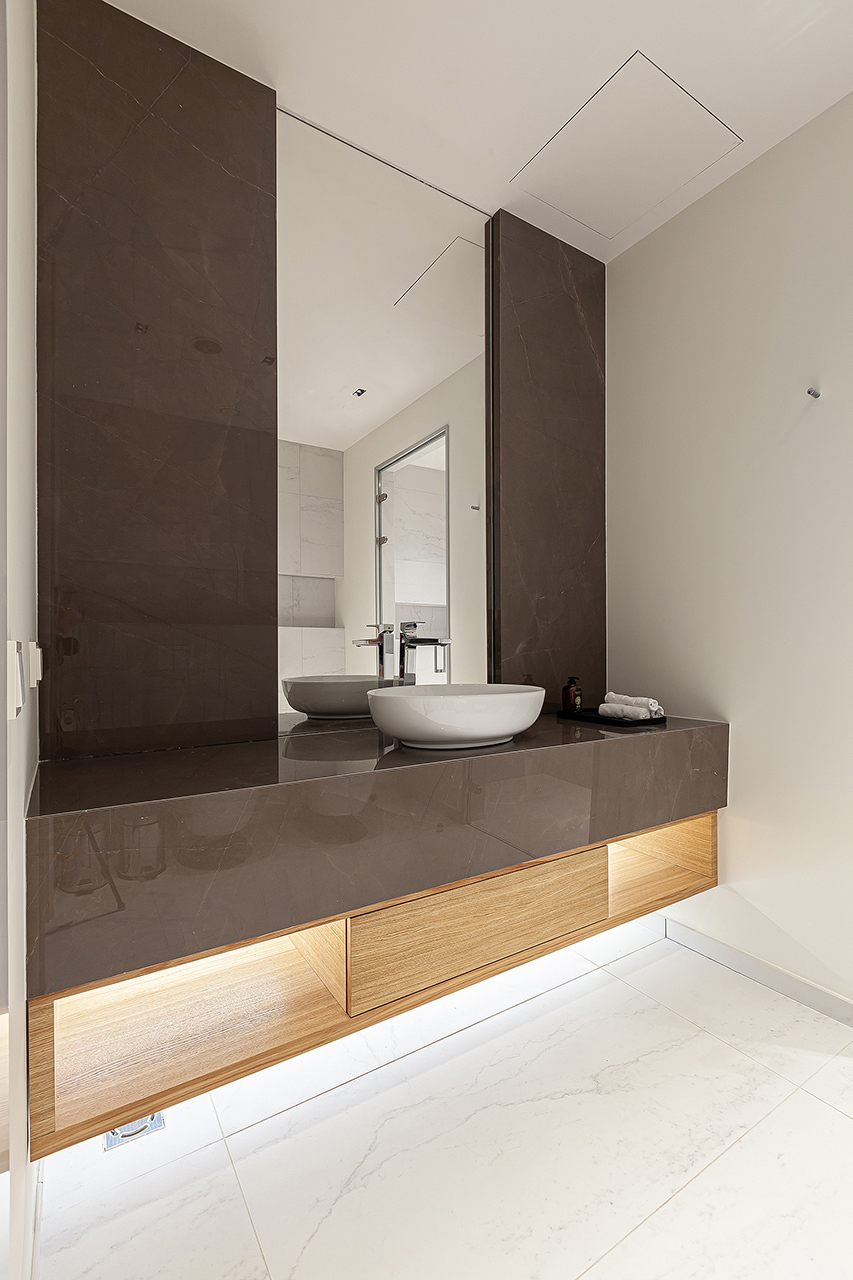 Санузлы — продуманы до мелочей: от больших зеркал с подсветкой до шкафа с аксессуарами по уходу за одеждой