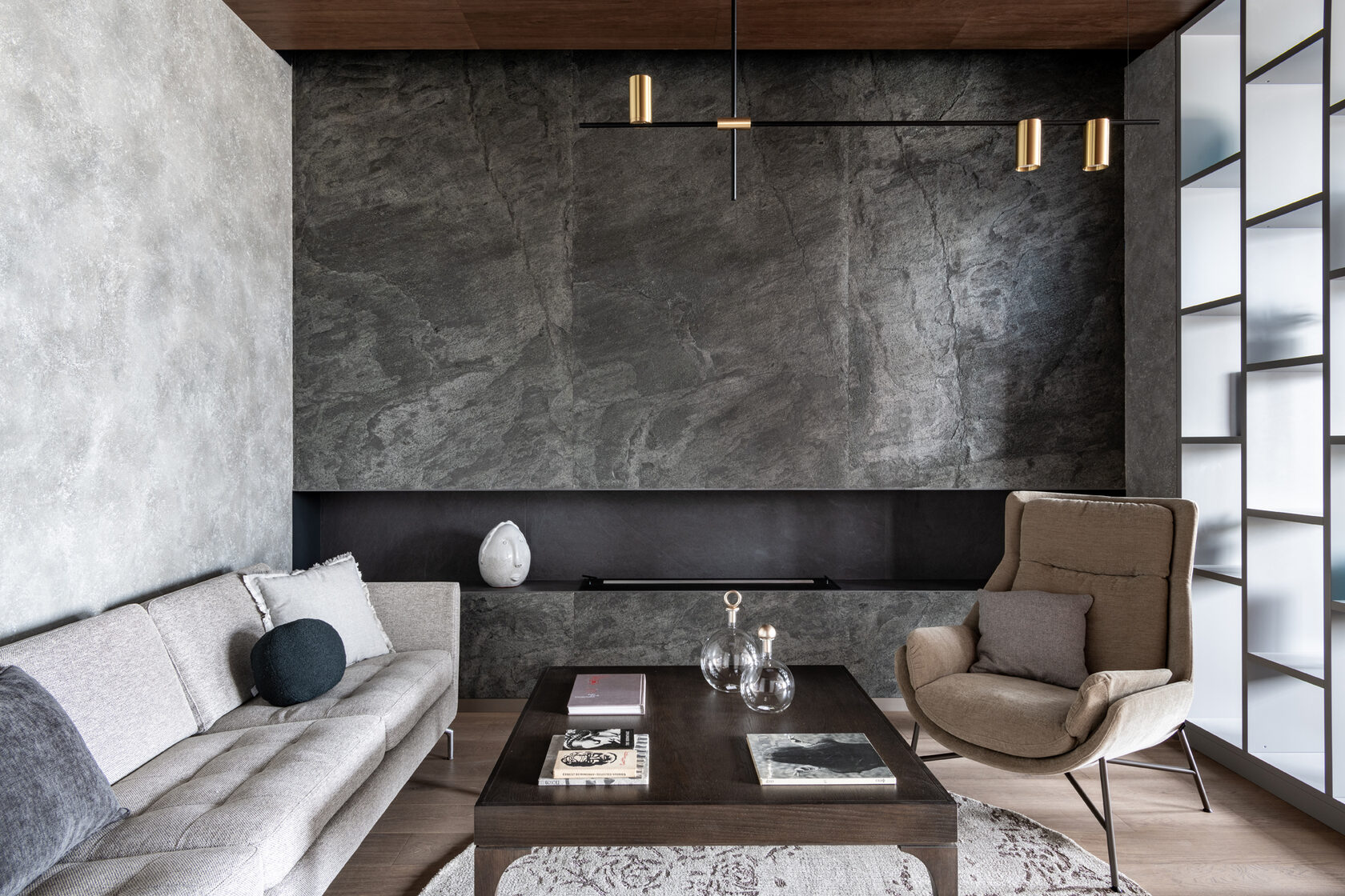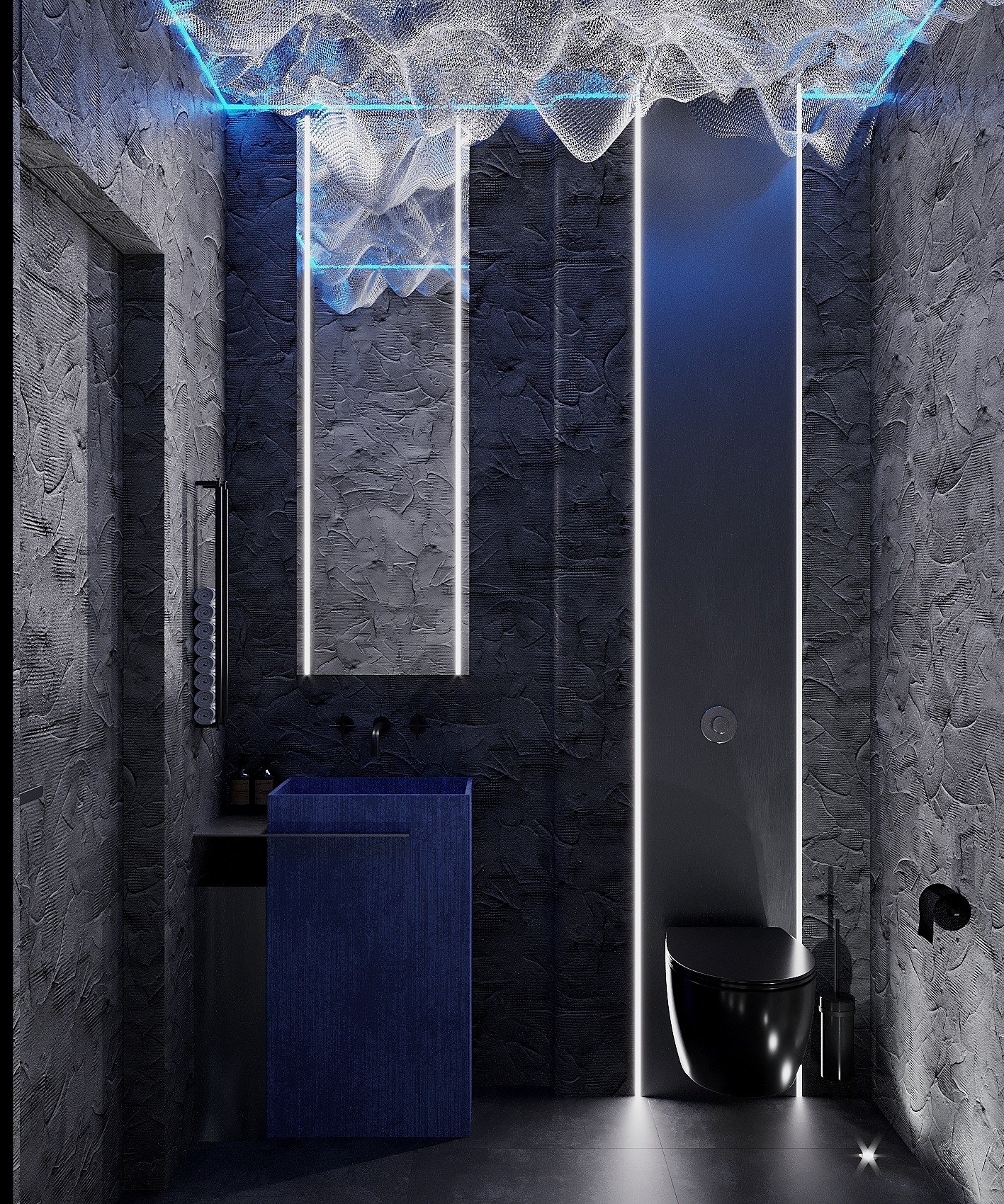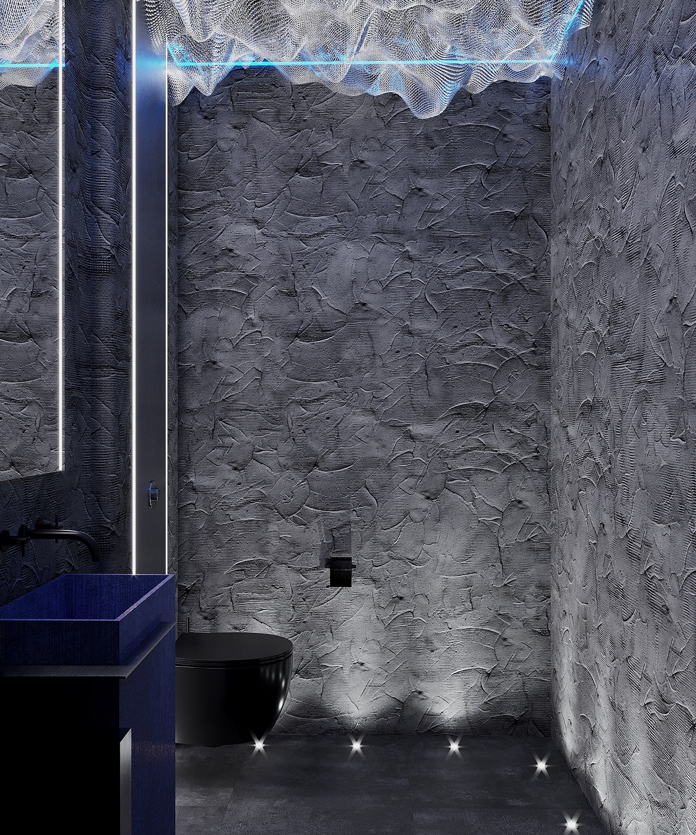 освещение и встроенные LED-панели акцентируют фактуру и зонируют интерьер,