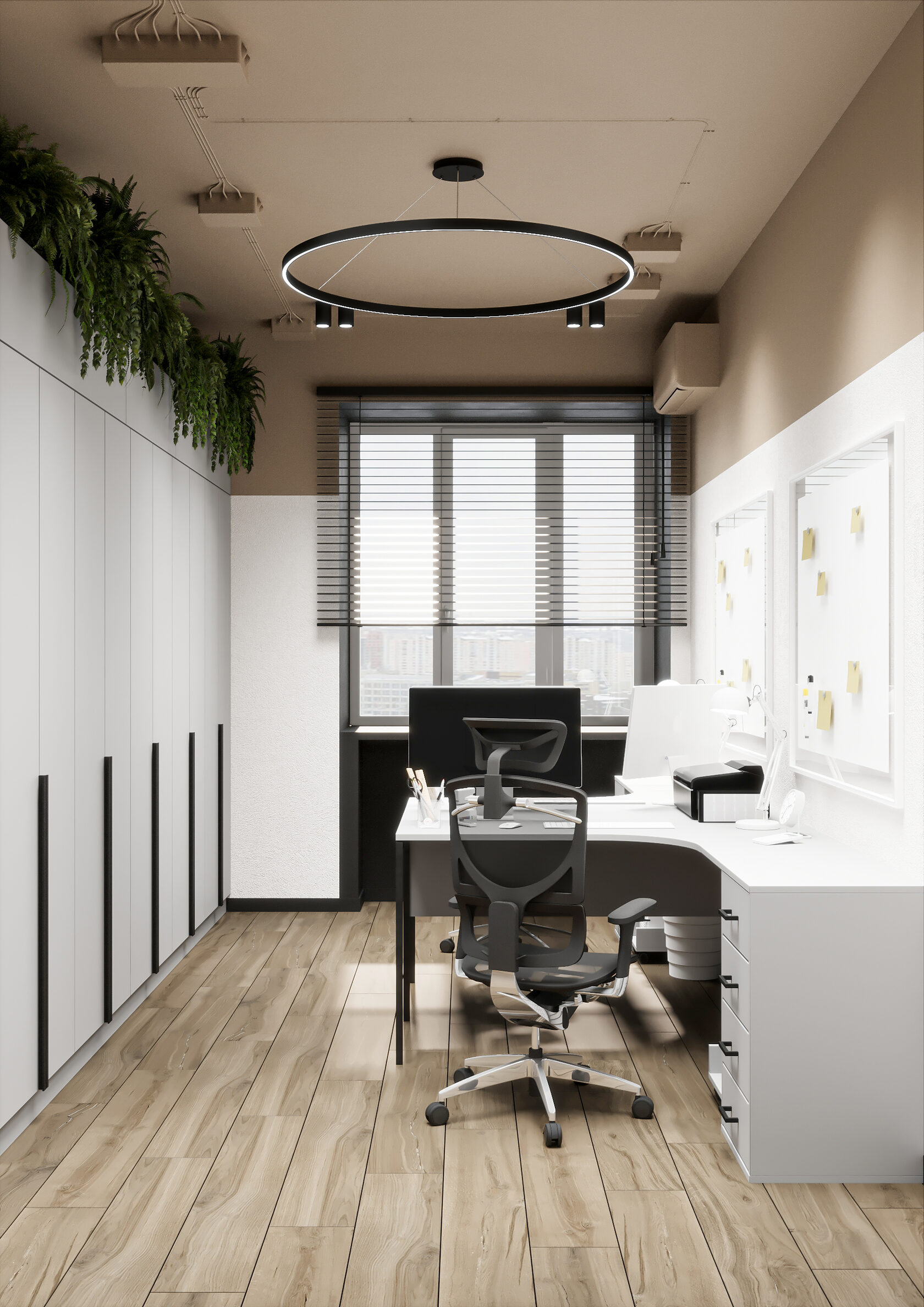 Итог: Проект успешно реализовал цель создания не просто рабочего пространства, но целостной и вдохновляющей среды, где каждая деталь продумана для максимальной функциональности и комфорта. Это современный офис, который одновременно прост и элегантен, предлагая оптимальные условия для эффективной и приятной работы, способствуя благополучию всех сотрудников.