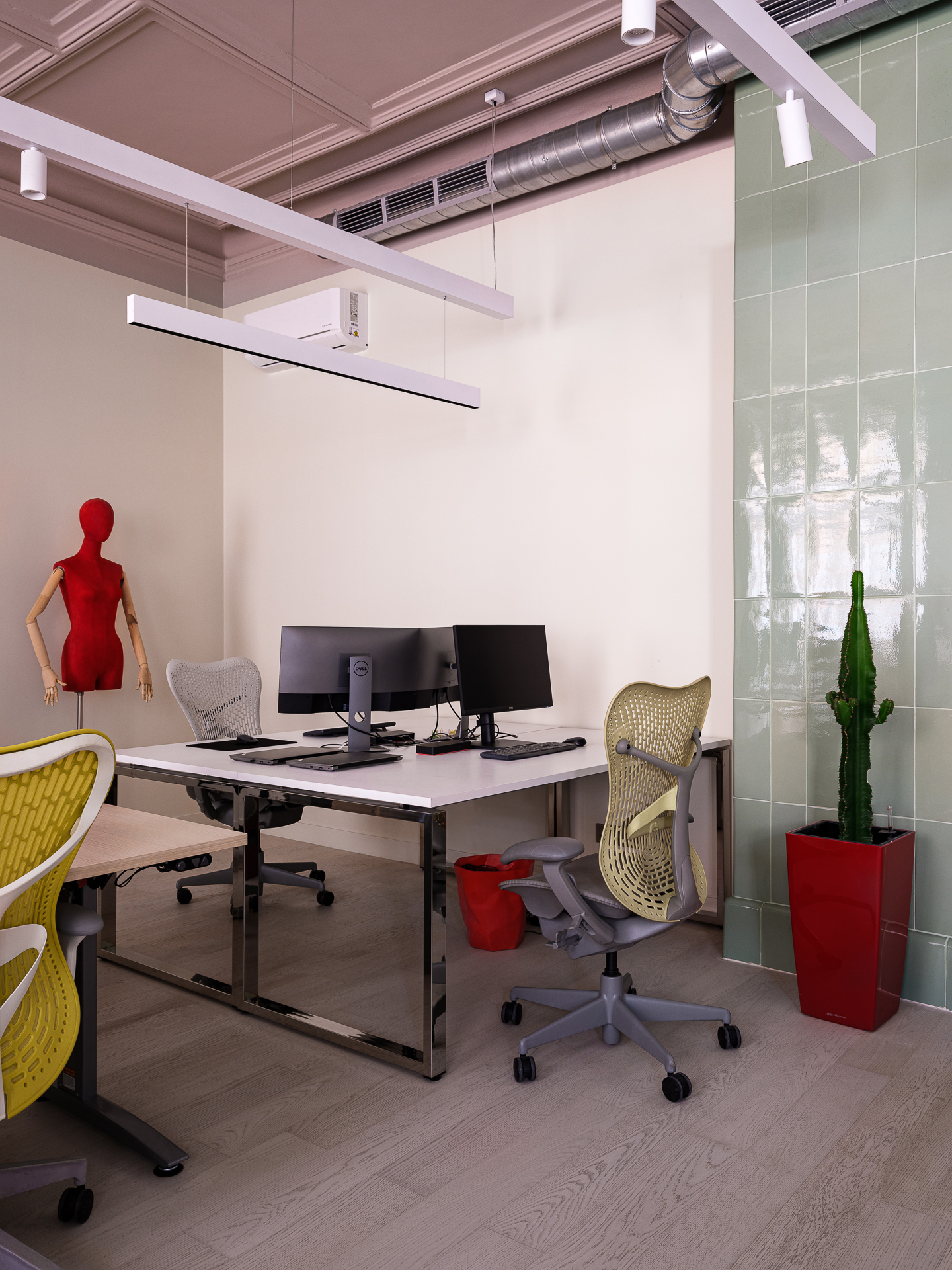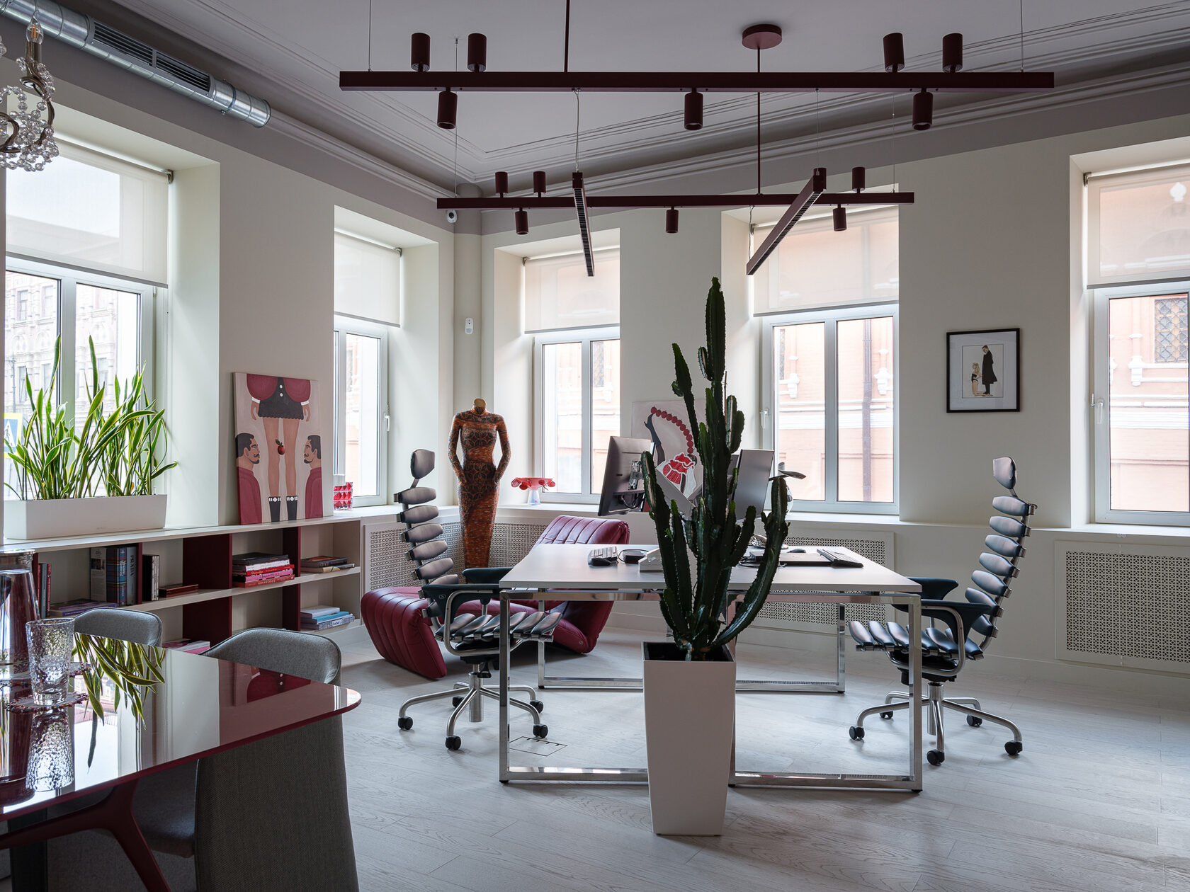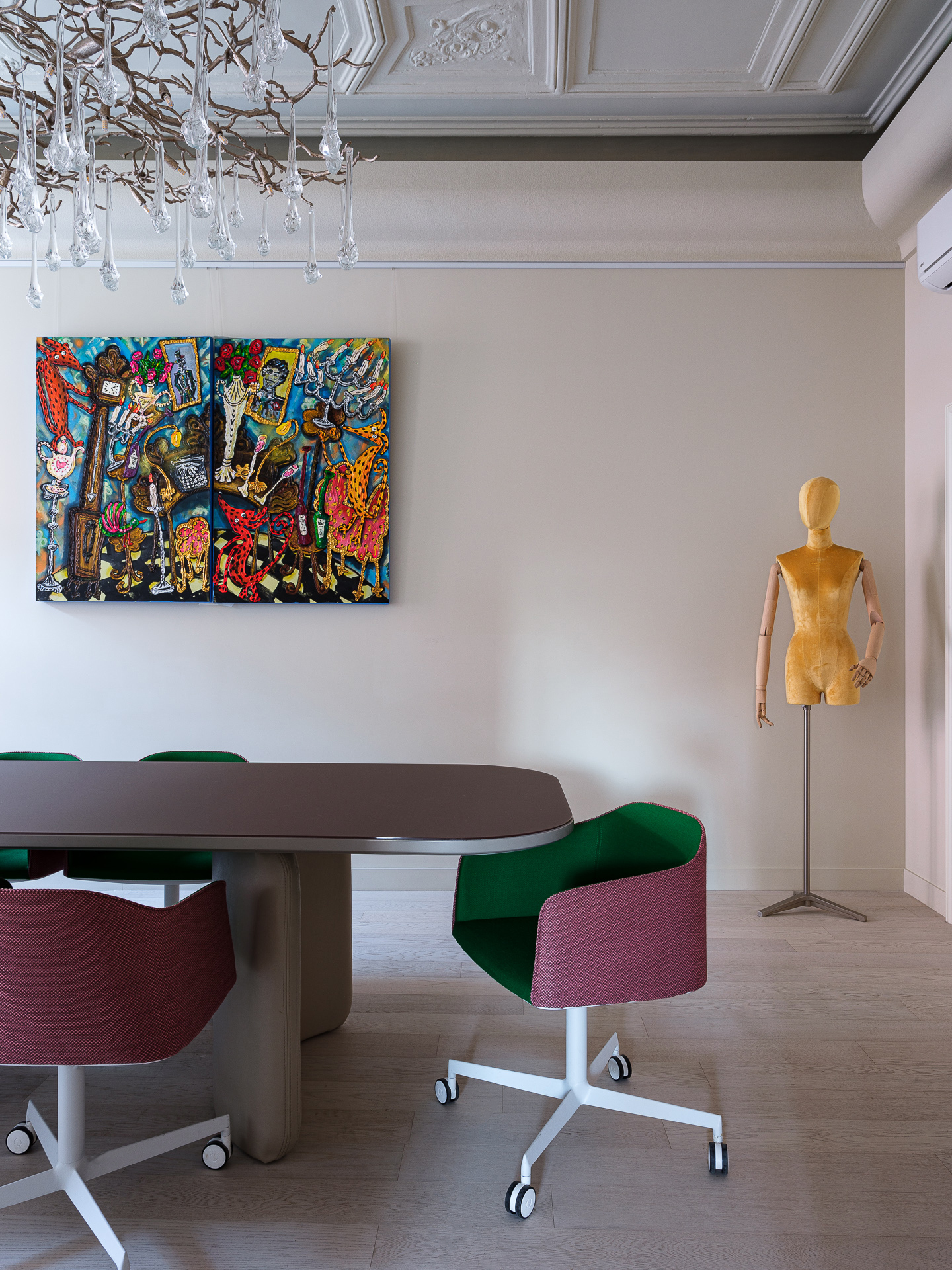 Финал: лаборатория модного бунта Это не рабочее пространство, а материализованное мировоззрение бренда: здесь лепнина Екатерининской эпохи мирно сосуществует с 3D-принтерами для прототипирования, а винтажные находки с блошиных рынков Парижа получают новые роли в окружении итальянских мебельных новинок. Офис, где даже кофе-машина Molteni выглядит как арт-объект, стал точкой сборки для тех, кто переписывает правила fashion-индустрии.