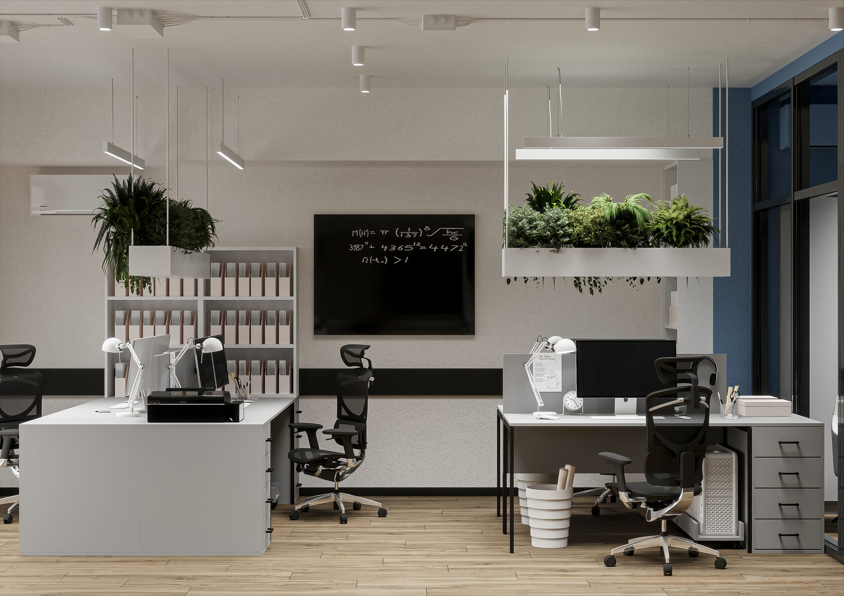 Результат: Современное офисное пространство, вдохновленное научными принципами, создающее комфортные условия для работы и творчества.
