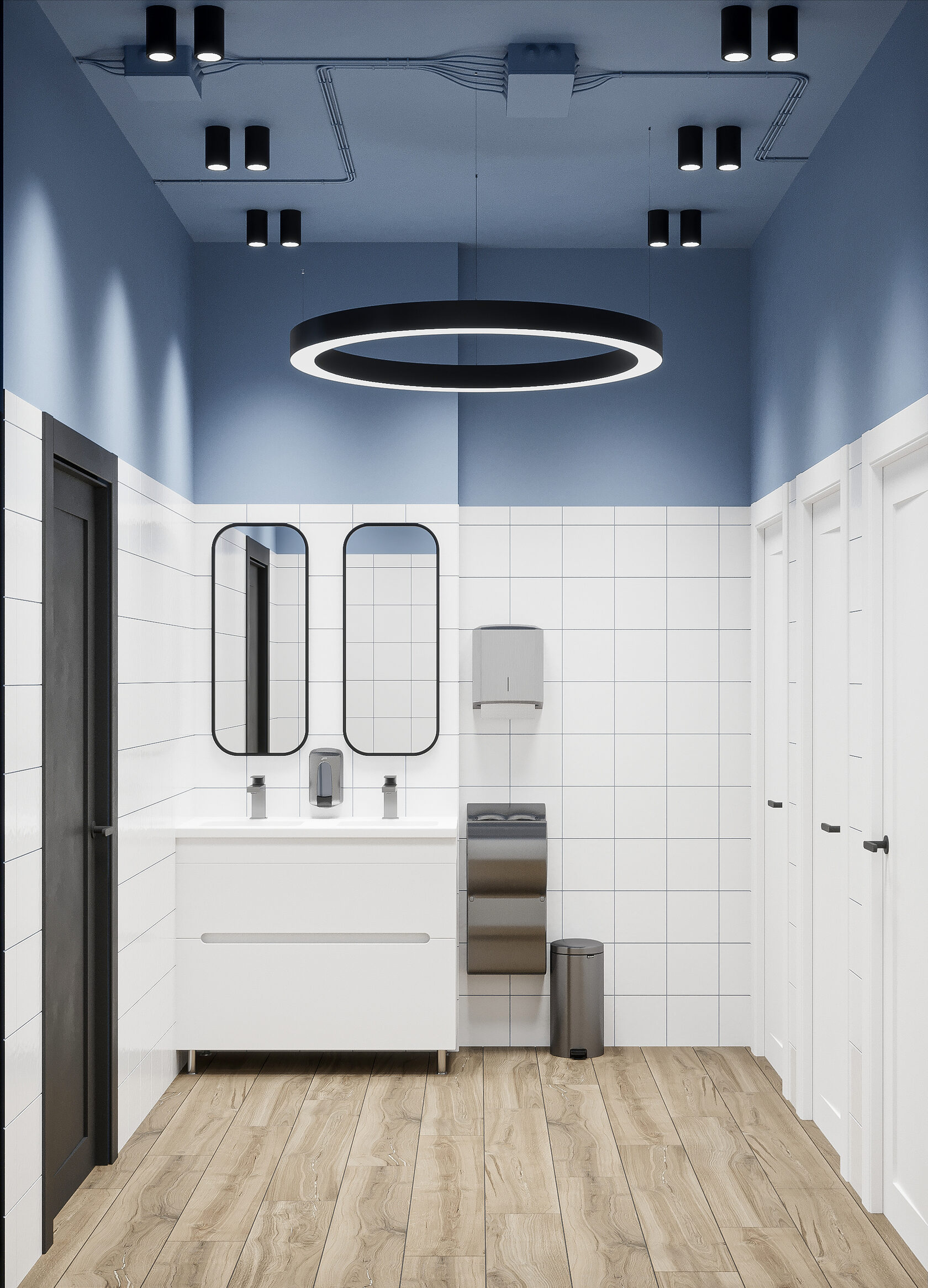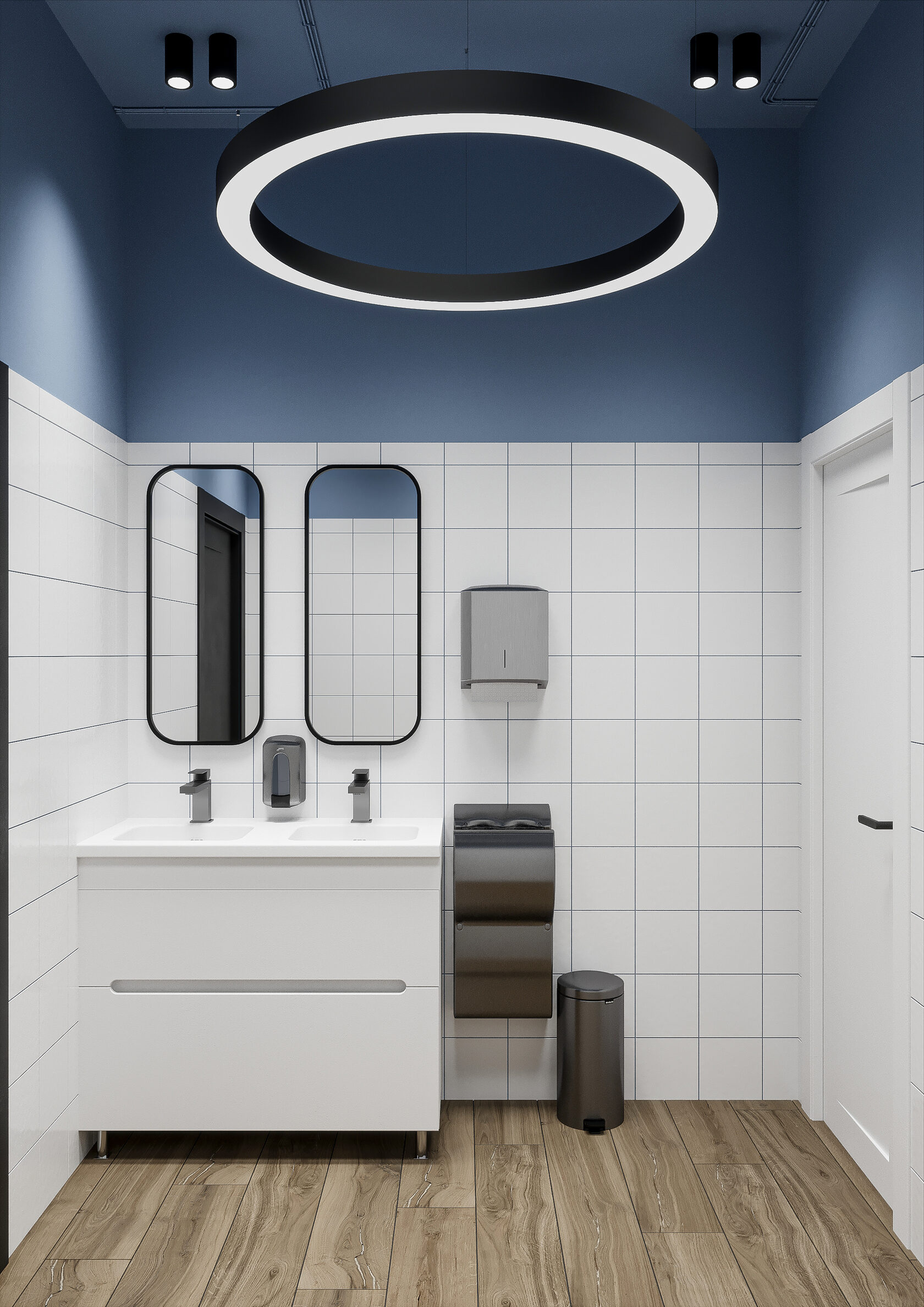 Этот проект решает амбициозную задачу создания многофункционального офисного пространства, гармонично объединяющего зоны для офисных сотрудников и обслуживающего персонала логистического центра. Ключевым аспектом стало внедрение четкого зонирования с тремя независимыми входами, что обеспечивает оптимальное распределение потоков и комфортные условия для каждой группы персонала.