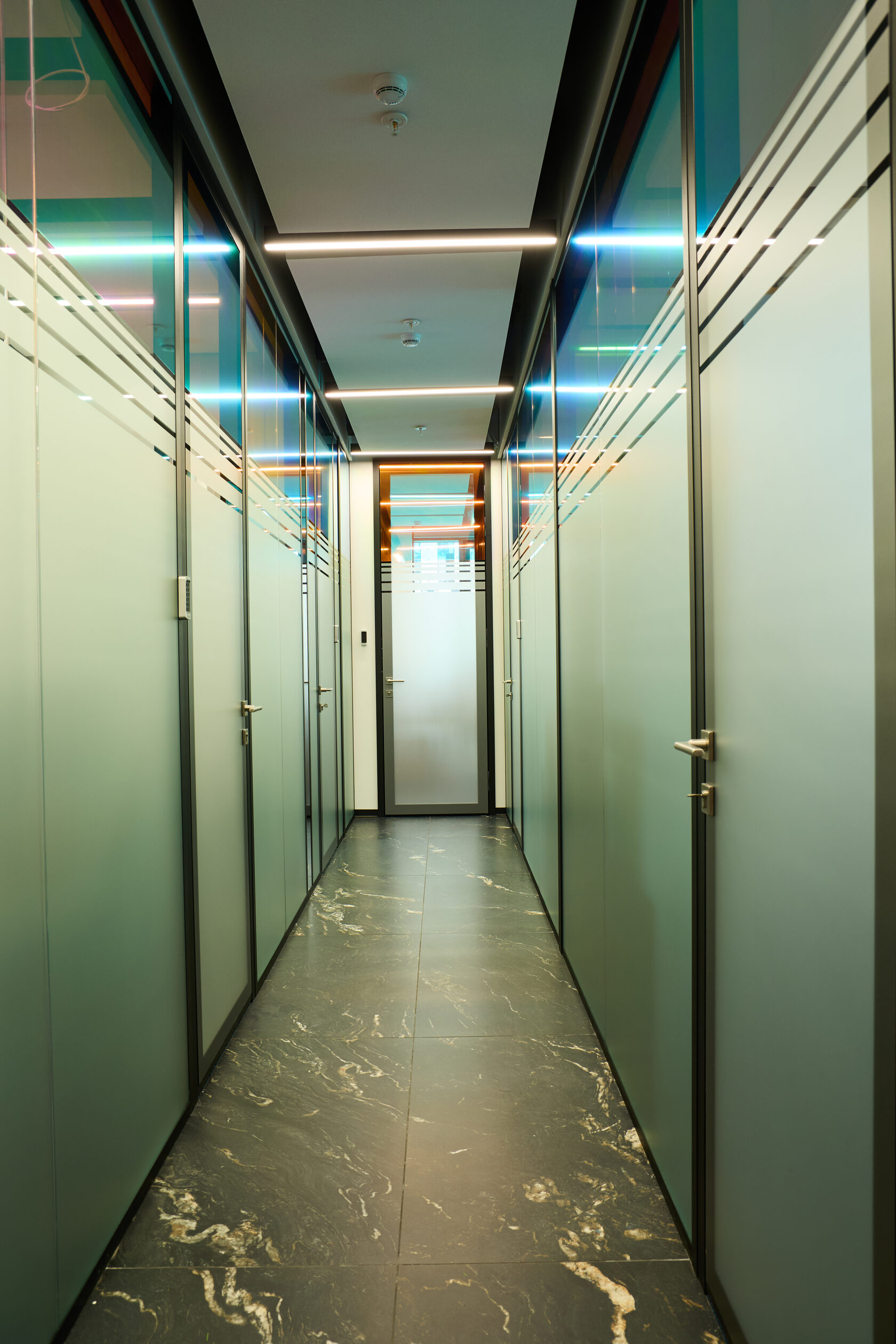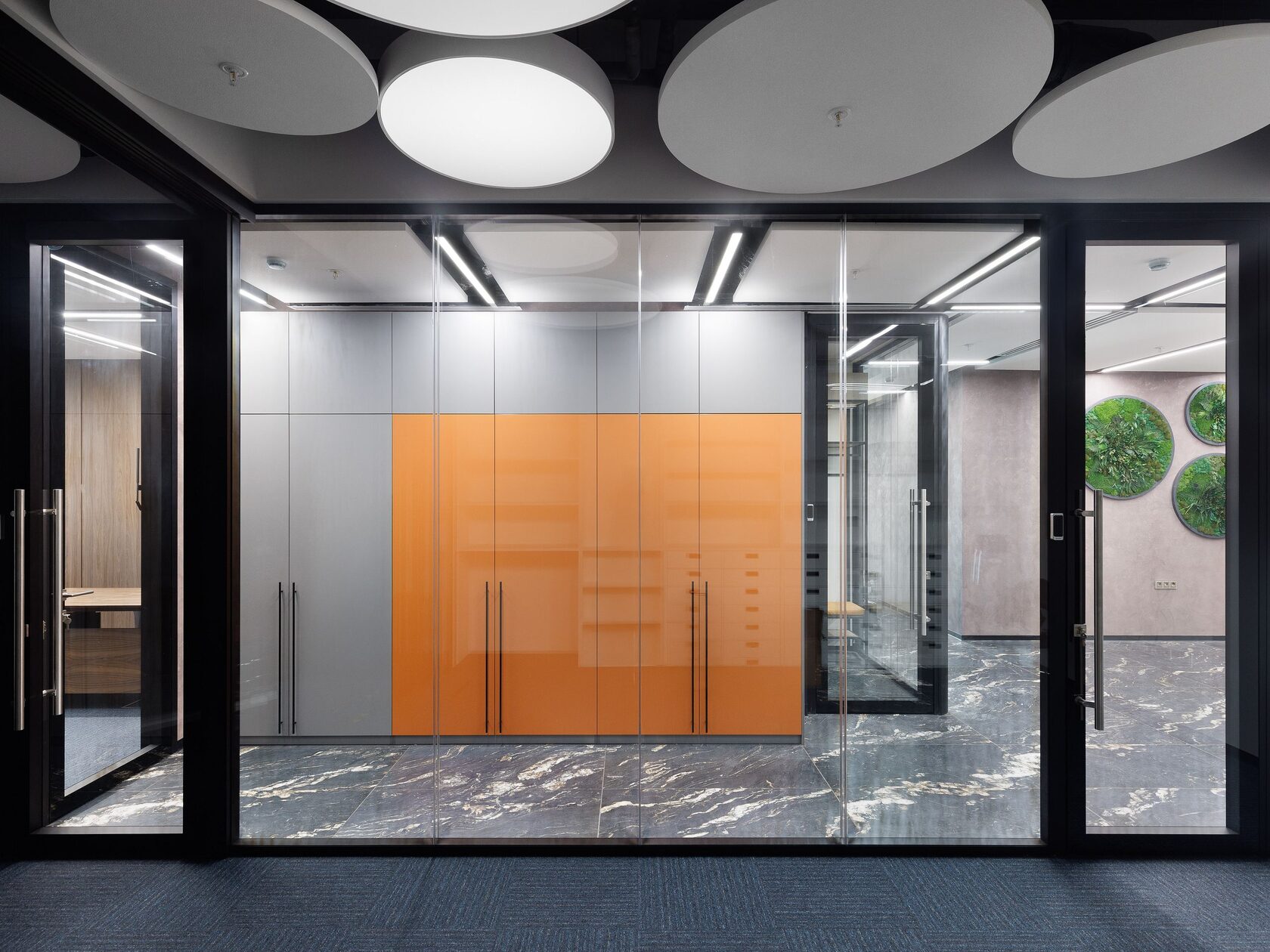 Итог: Офис представляет собой гармоничное объединение функциональности, безопасности и репрезентативного дизайна, обеспечивая комфорт и уверенность как для сотрудников, так и для клиентов.