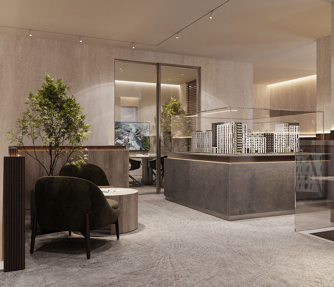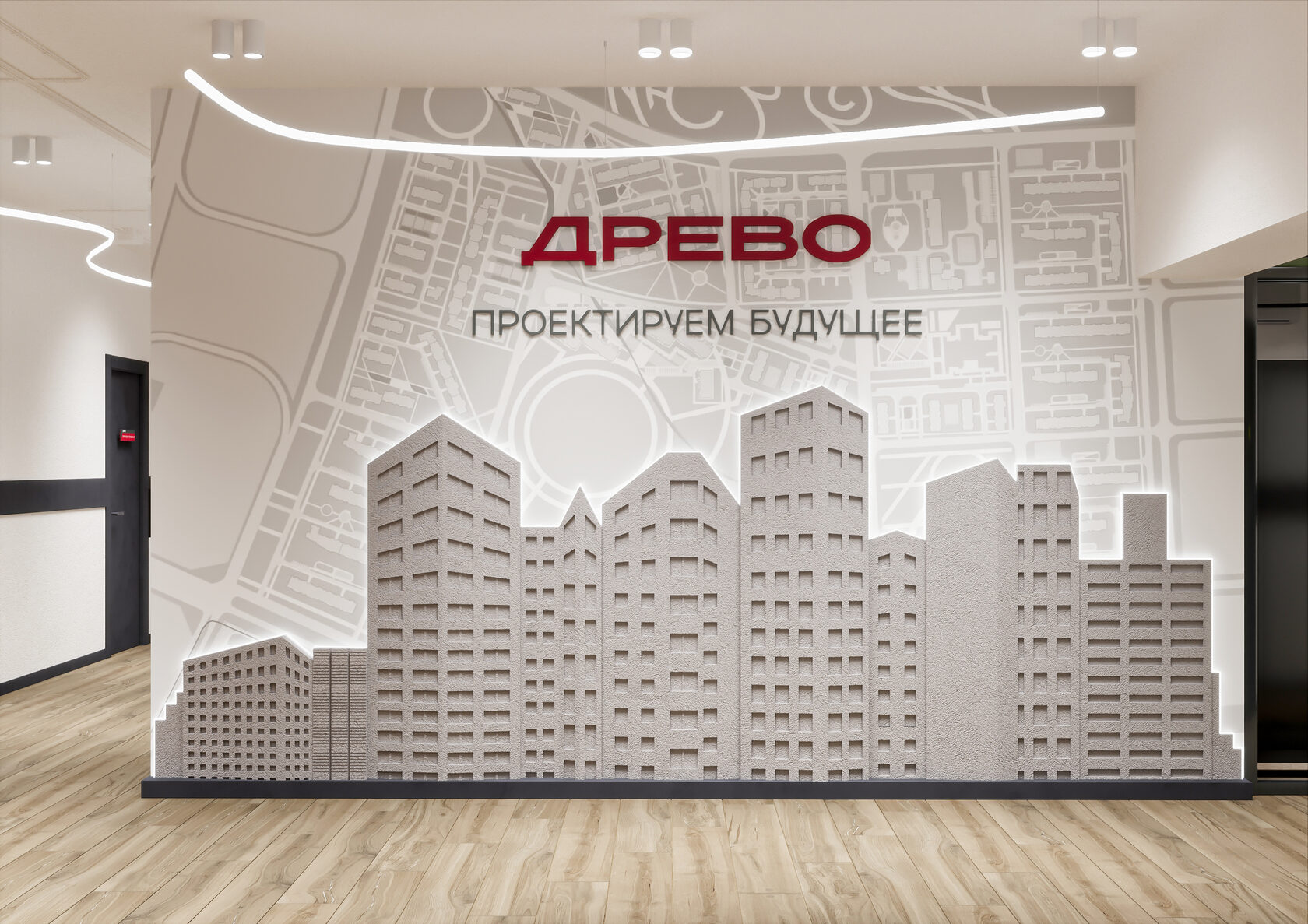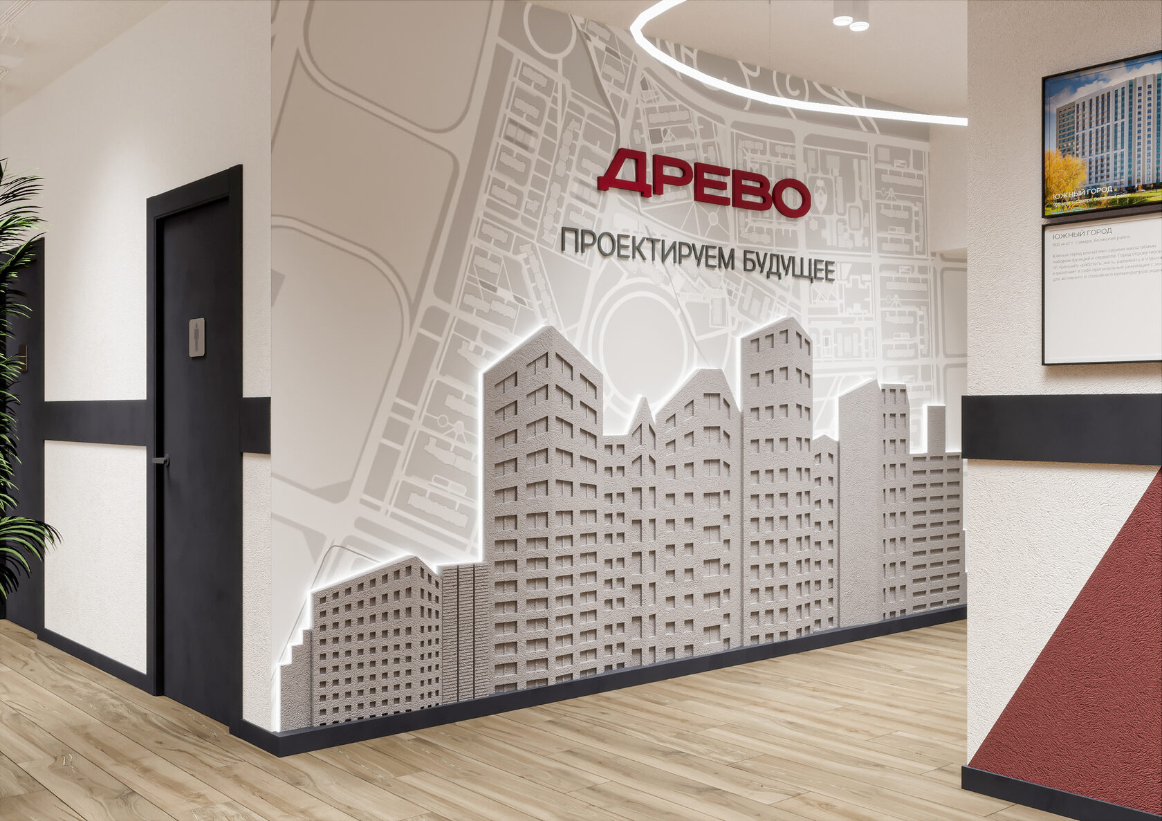 Концепция: Ключевой концепцией стало создание обволакивающего пространства, где каждый посетитель ощущает заботу и близость к природе, что способствует принятию решения о покупке загородной недвижимости. Достигается это за счет применения натуральных материалов и их высококачественных имитаций – дерева, камня, а также включения живых растительных элементов. Особое внимание уделено визуальным и тактильным эффектам, формирующим восприятие интерьера как уютного и вдохновляющего. Гибкость и адаптивность пространства – неотъемлемая часть концепции, позволяющая эффективно использовать его как для индивидуальных консультаций, так и для масштабных обучающих мероприятий.