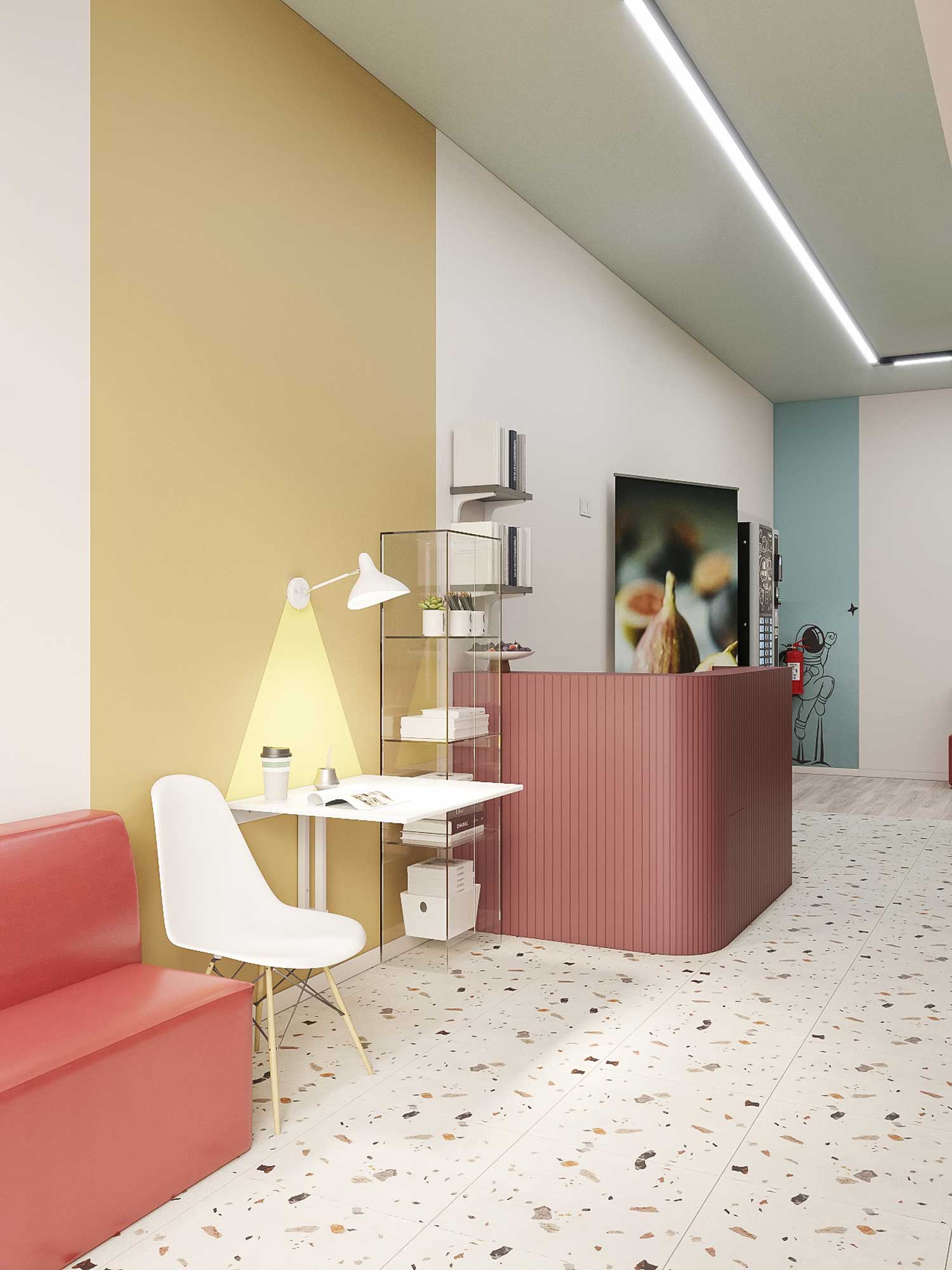 Этот проект представляет собой общественный интерьер, воплощающий идею инклюзивного пространства, гармонично вписанного в городской контекст Москвы. Расположенный на первом этаже старого жилого фонда, центр предлагает атмосферу открытости и полной доступности. Интерьер организован с учетом всех функциональных требований: зона приема посетителей оборудована для маломобильных групп, а административный блок на втором этаже оснащен удобным подъемником для беспрепятственного перемещения персонала и гостей.
