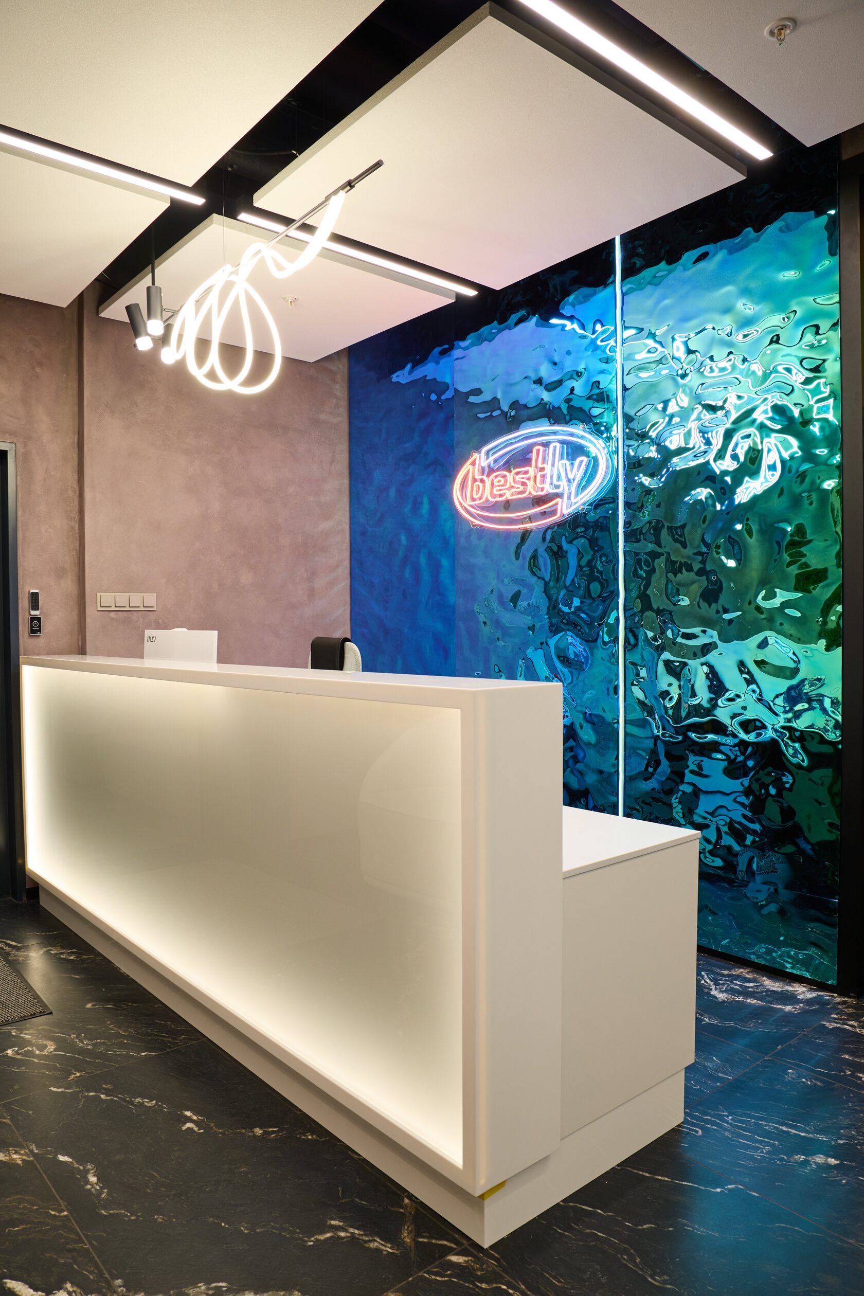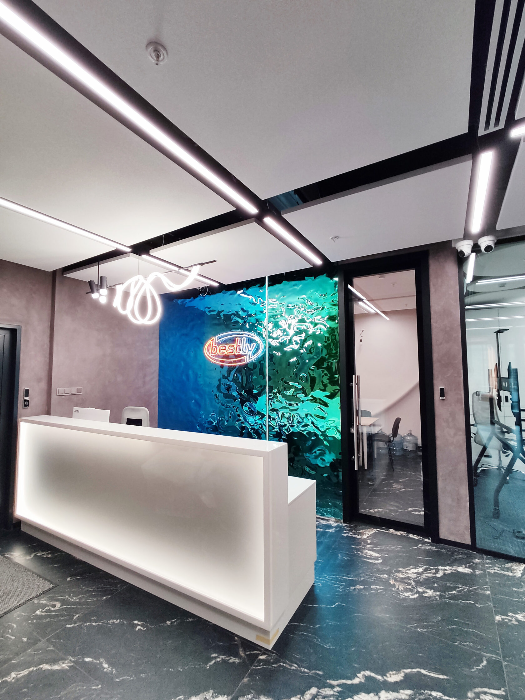 Этот проект представляет собой комплексный дизайн офиса под ключ для компании BESTLY, ведущего поставщика инженерных и выставочных решений. Расположенное в новом бизнес-центре пространство площадью 370 м² было преобразовано из полностью пустого помещения в высокофункциональную и представительскую рабочую среду. Проект, отмеченный публикацией в профессиональном журнале, реализован в тесном сотрудничестве с Заказчиком, что подчеркивает высокий уровень доверия и профессионализма.