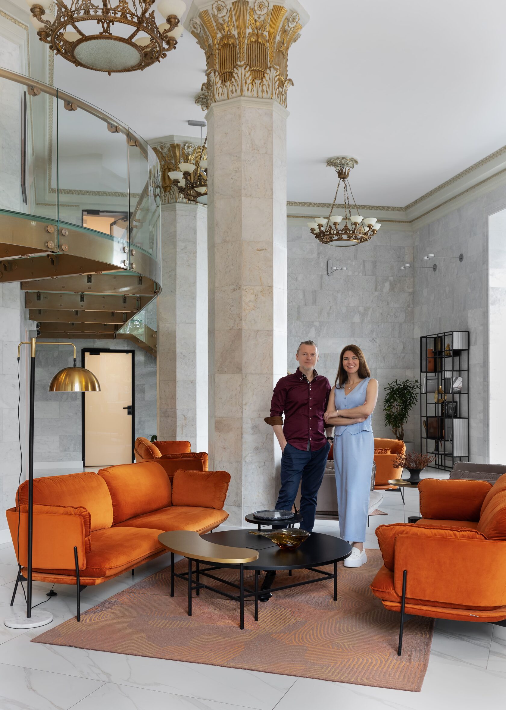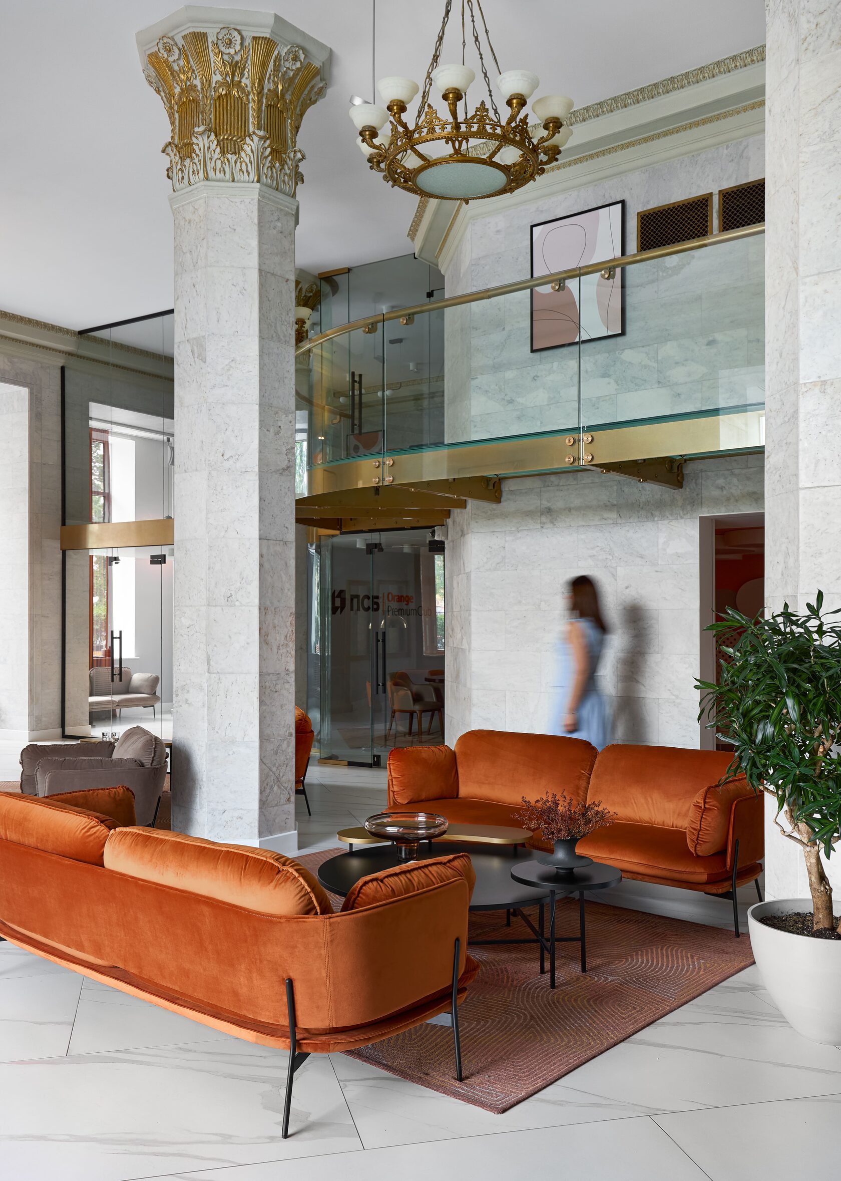 Концепция: Ключевая концепция проекта – виртуозный синтез современной функциональности с величественным историческим интерьером, обладающим охранным статусом. Дизайн был продиктован архитектурой здания, где изящные линии, обилие света и деликатные цветовые акценты гармонично сочетаются с фирменным стилем и колористикой бренда ПСБ, отраженными в тщательно подобранной мебели, декоре и текстиле.