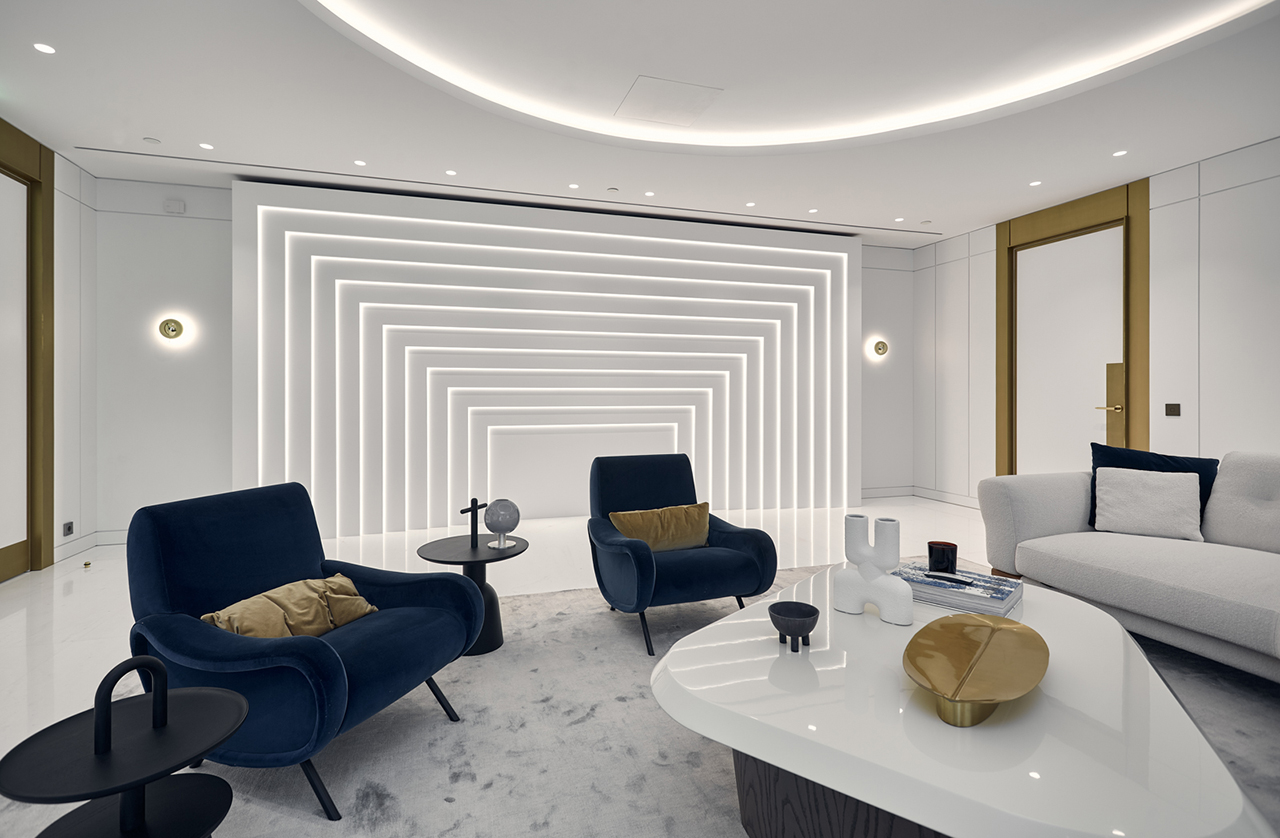 Мягкое декоративное освещение, включая «парящие» элементы интерьера.