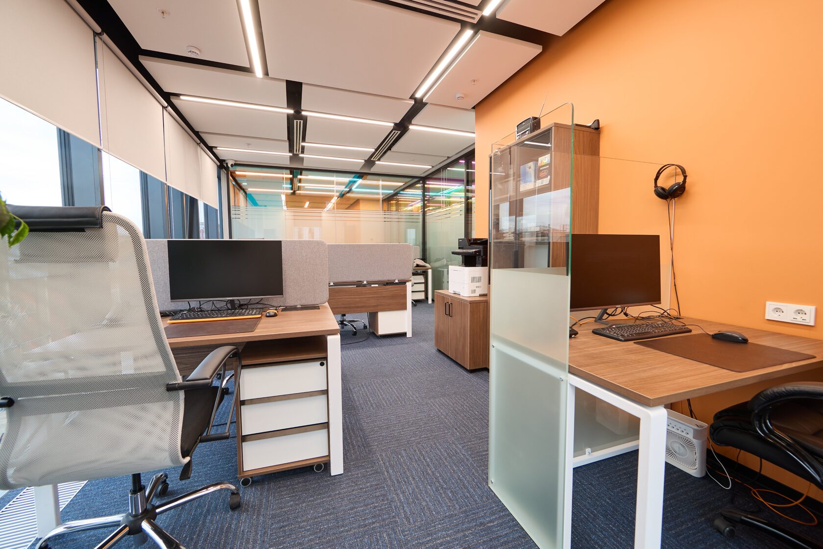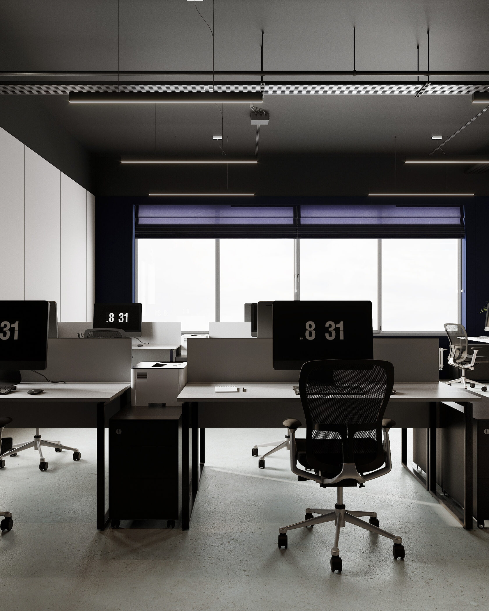 Важная деталь, которую особенно оценили заказчики — мониторы сотрудников не находятся в прямом поле зрения, что добавляет приватности.