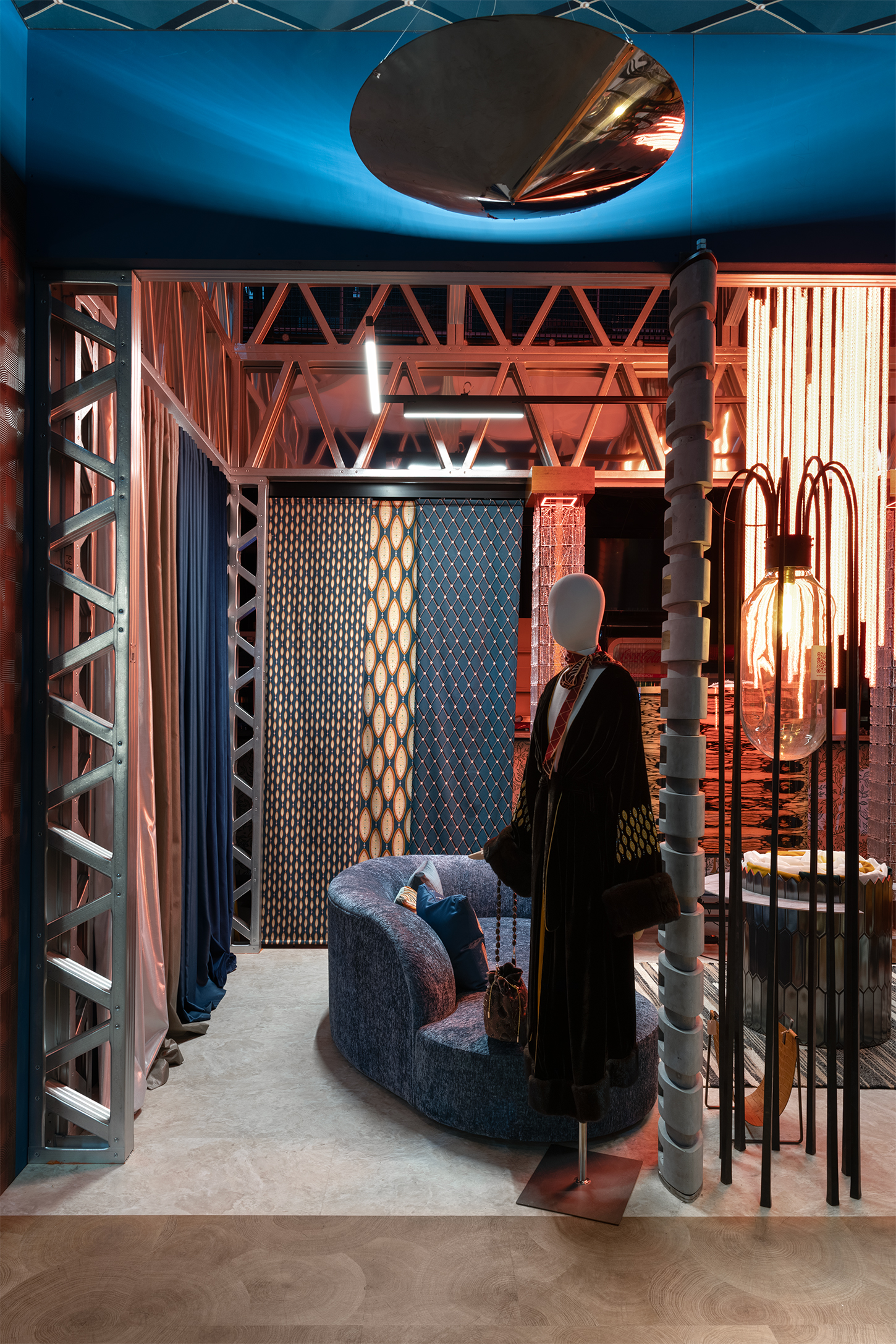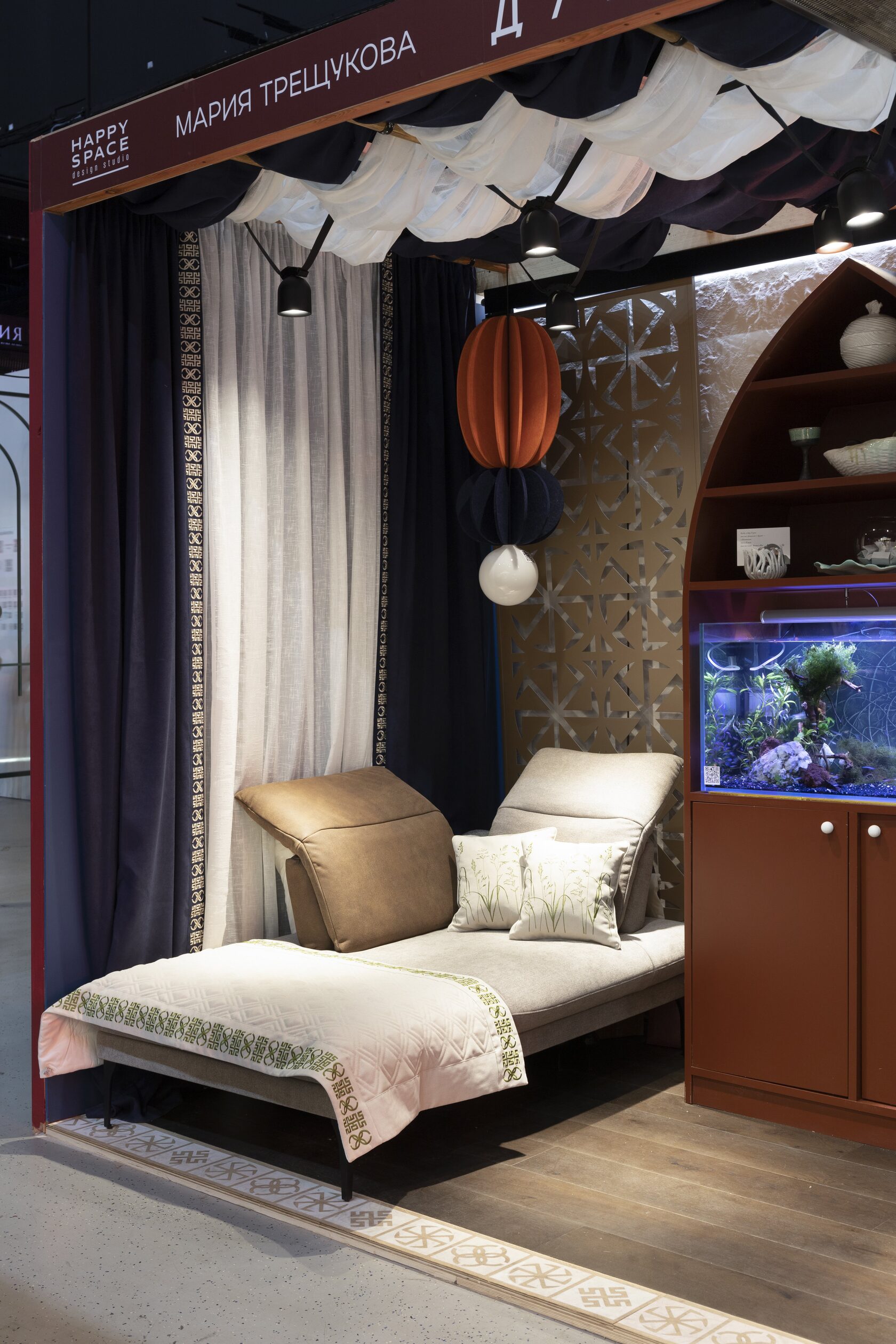 Проект является совместной коллаборацией Анастасии Володиной, Марии Трещуковой и студии текстиля Pasionaria. Основой для вышивки послужили славянские обереги, которые легли в концепцию капсулы «Дух Свободы». Стенд объединяет народные традиции, художественное мастерство и современные элементы, создавая пространство для отдыха и вдохновения.
