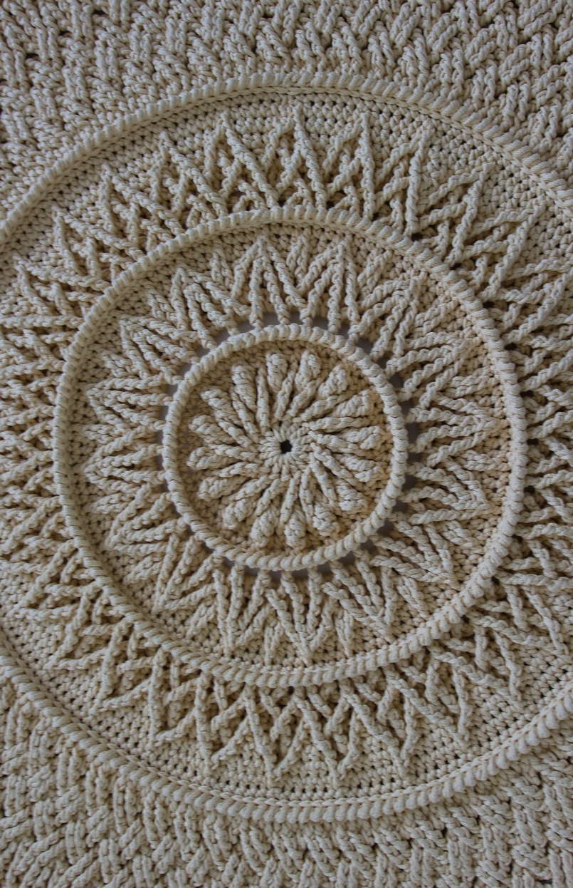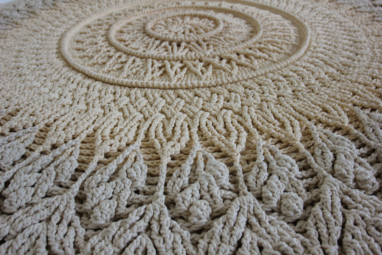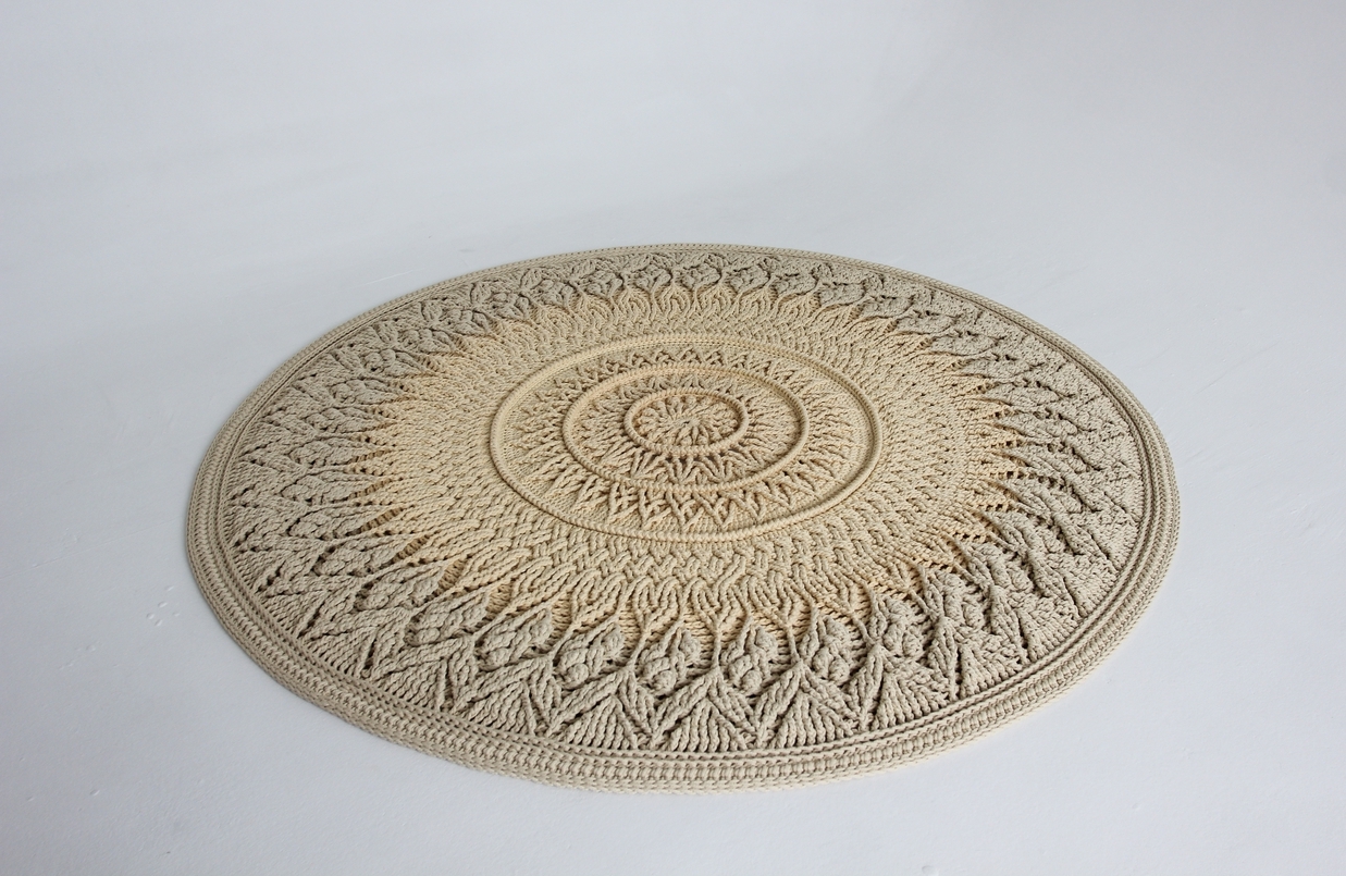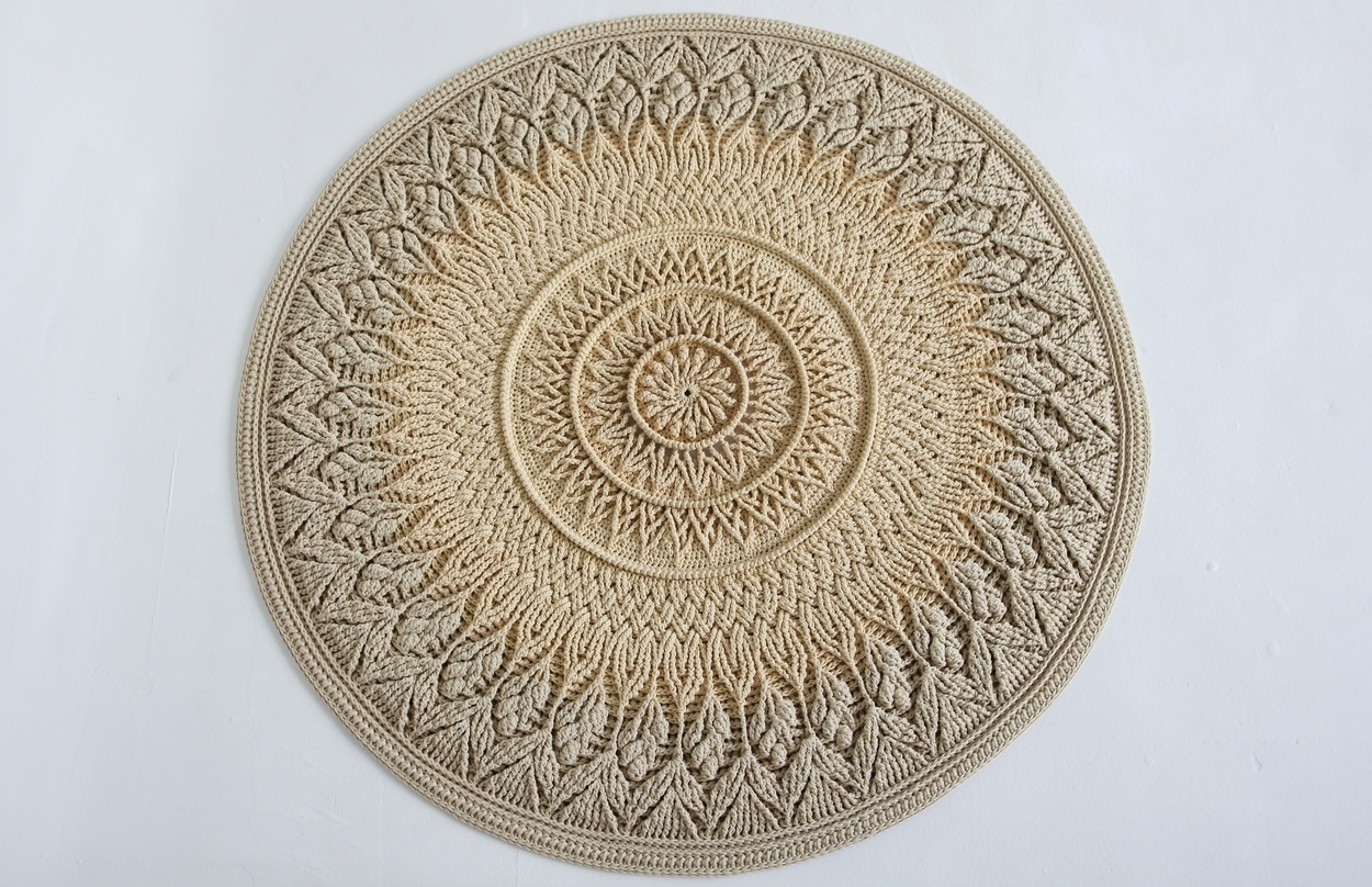 Ковер 'КОЛОС' — это выдающееся произведение ручной работы, выполненное крючком в новаторской технике рельефного вязания. Его многоуровневая схема придает узору необыкновенную глубину и объем, позволяя переосмыслить древние мотивы в современном ключе. С диаметром 2,2 метра, он привносит в пространство ощущение тепла, уюта и благородной степенности, становясь центральным элементом интерьера.