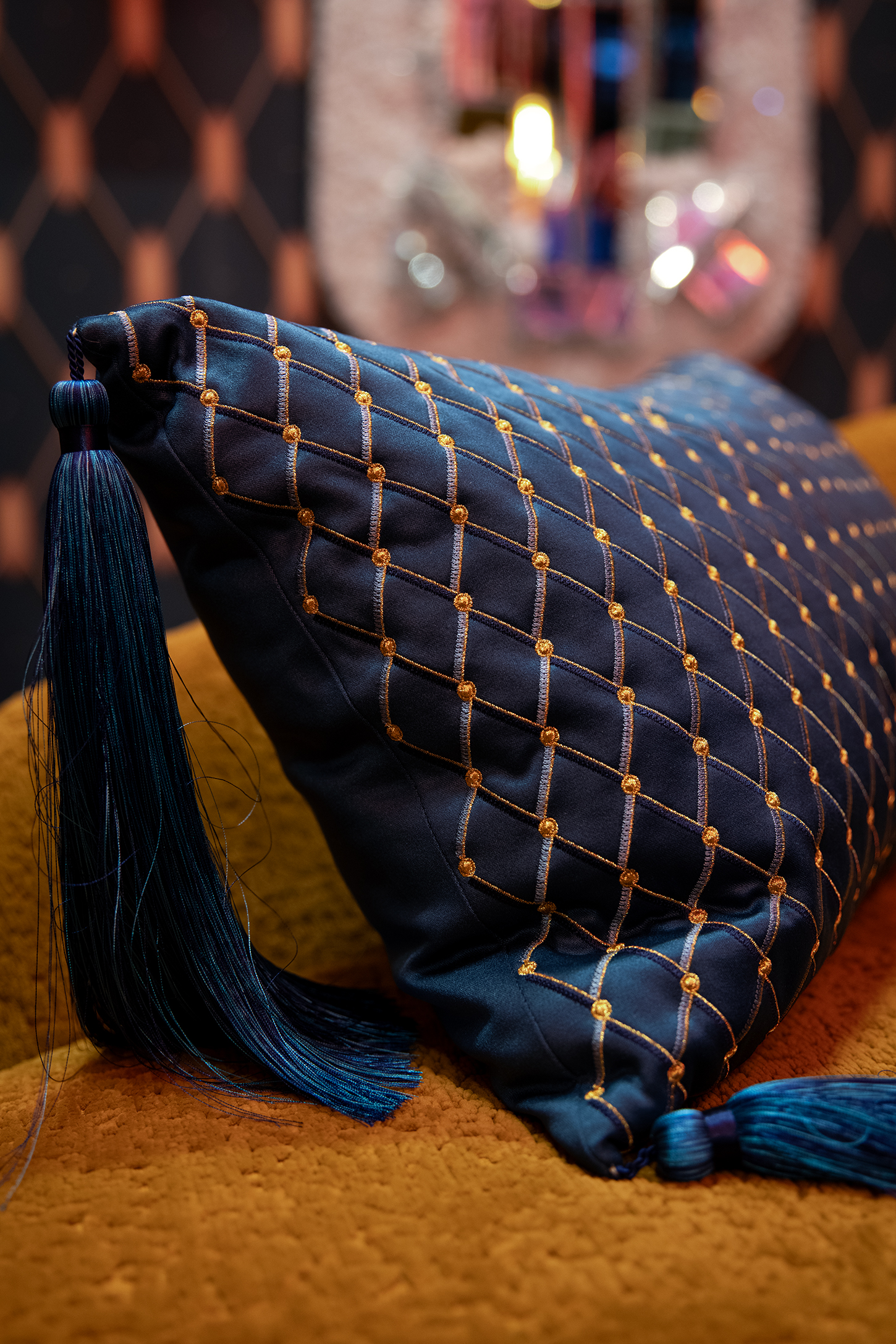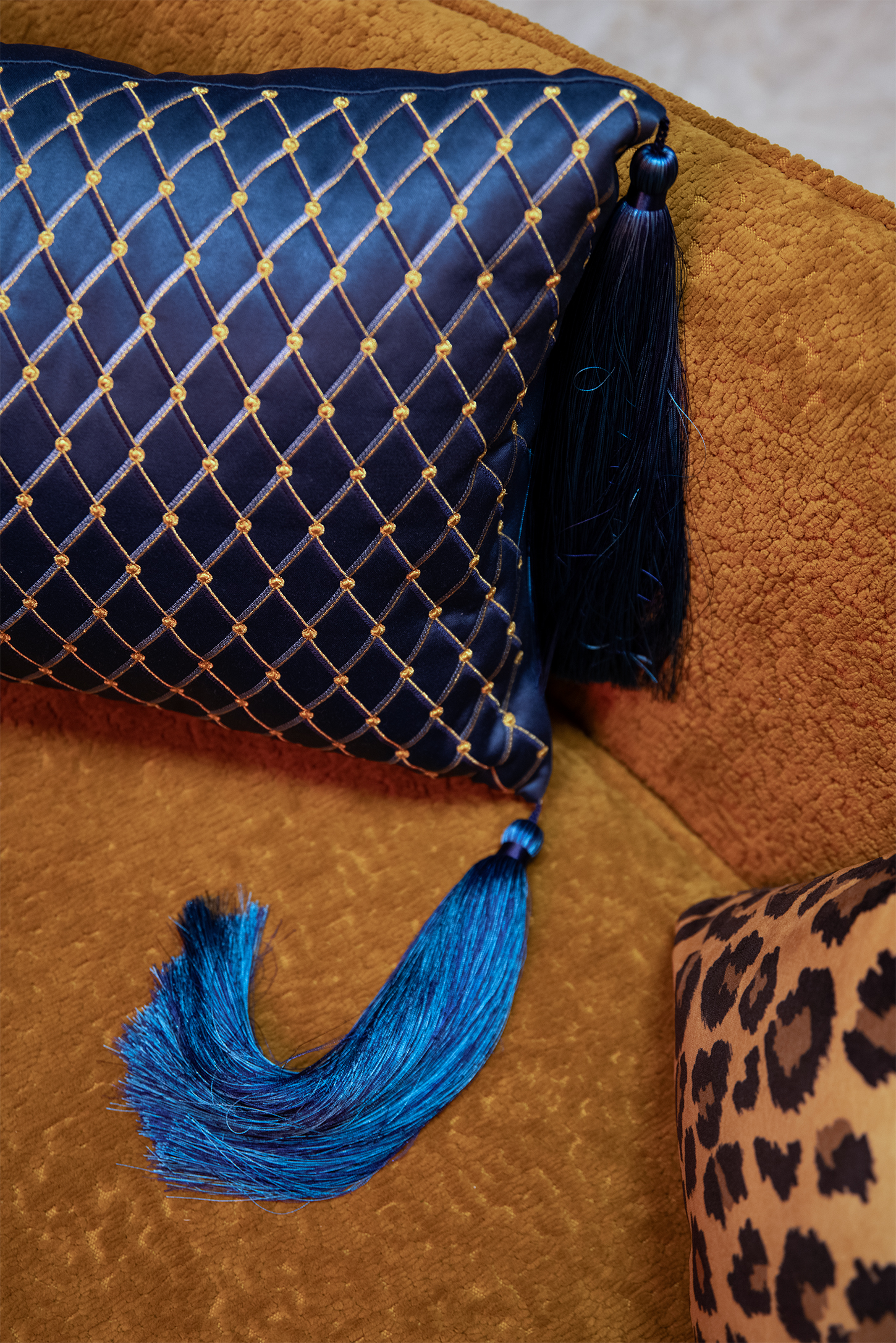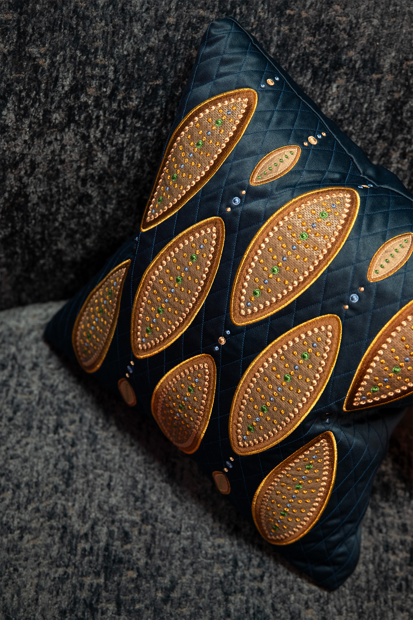 Эта уникальная коллекция декоративных подушек, выполненная в современном стиле, была разработана специально для частного загородного дома. Проект объединяет разнообразные геометрические формы и богатство текстур, искусно реализованных с использованием высококачественных материалов: натуральной шерсти, искусственного меха и полиэстера. Каждое изделие, доступное в размерах от 30х60 до 50х50 см, является результатом тщательной машинной работы, гарантирующей безупречное качество.