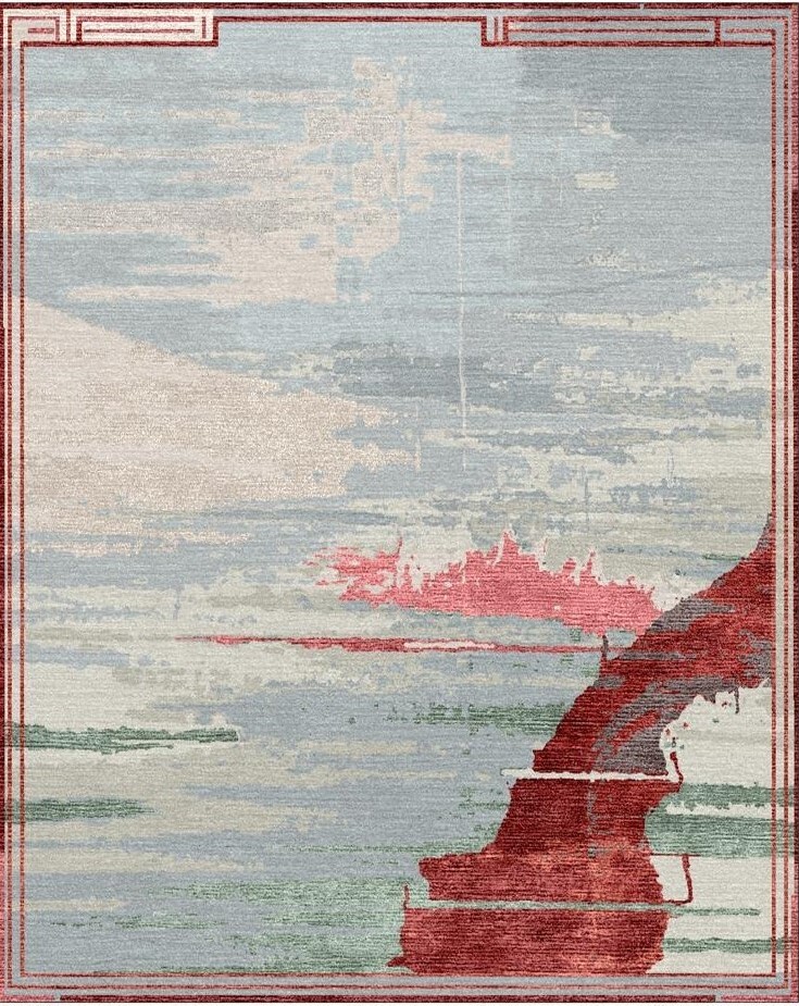 Концепция: Концепция проекта заключалась в создании ковра, способного выступать как центральный акцент в интерьере. Дизайн 'Вдохновения' построен на контрасте: строгая геометрия рамки, вдохновленная четкими линиями ар-деко, гармонично сочетается со спокойной, но выразительной абстракцией центральной части. Выбор ярких и одновременно сбалансированных оттенков серого, голубого, красного и зеленого призван внести смелый, но интегрируемый цветовой акцент в любое пространство.