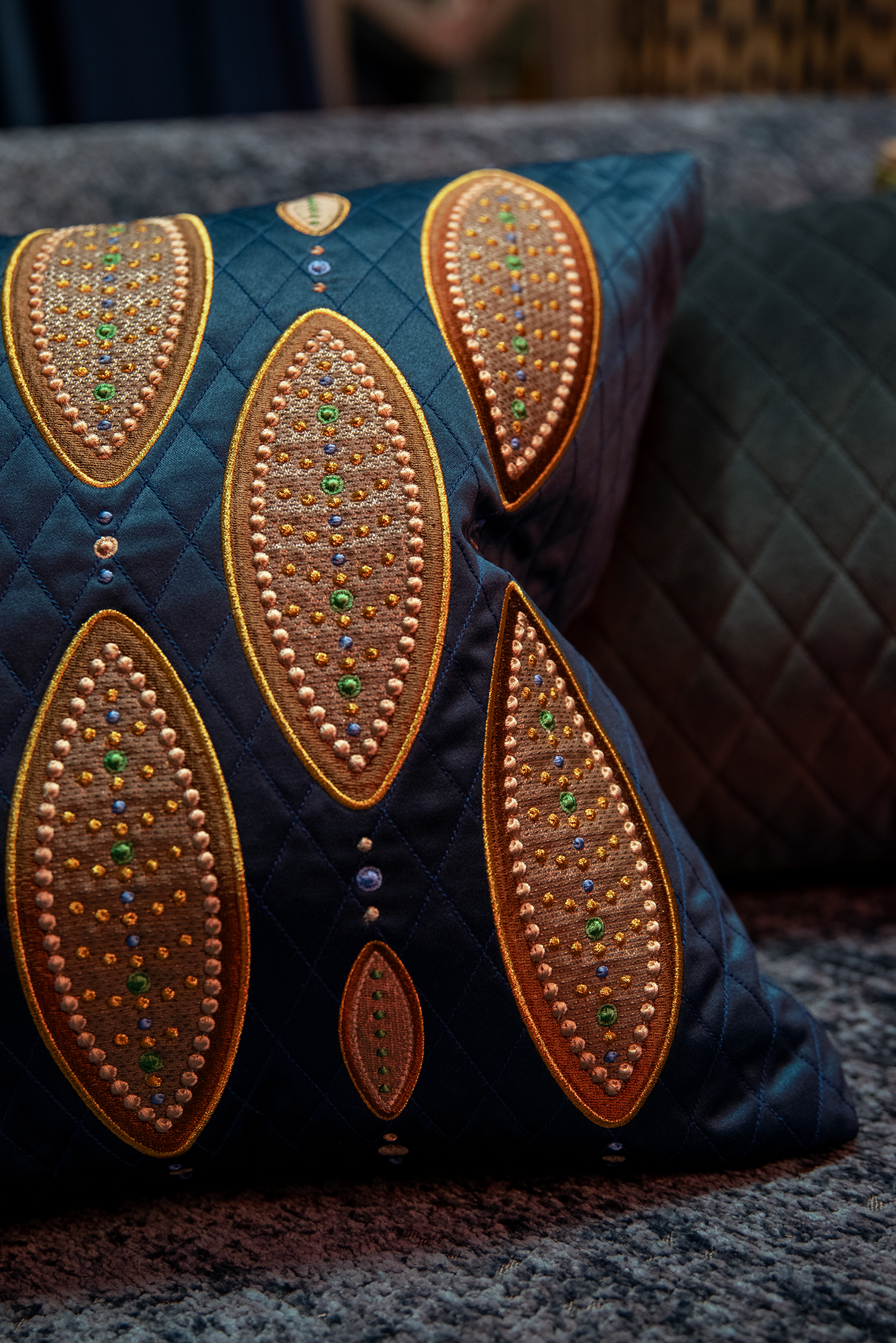 Концепция: В основе концепции "Приоритет фактур" лежит глубокий анализ и индивидуальный подход к каждому элементу. Выбор тканей и их фактур тщательно обосновывался в соответствии с цветовой палитрой и функциональным назначением конкретных комнат загородного дома. Целью было не только привнести визуальное разнообразие, но и создать тактильные акценты, где каждая подушка, с ее уникальной геометрией и материалом, гармонично вписывается в общий дизайн, формируя единый, но динамичный ансамбль.