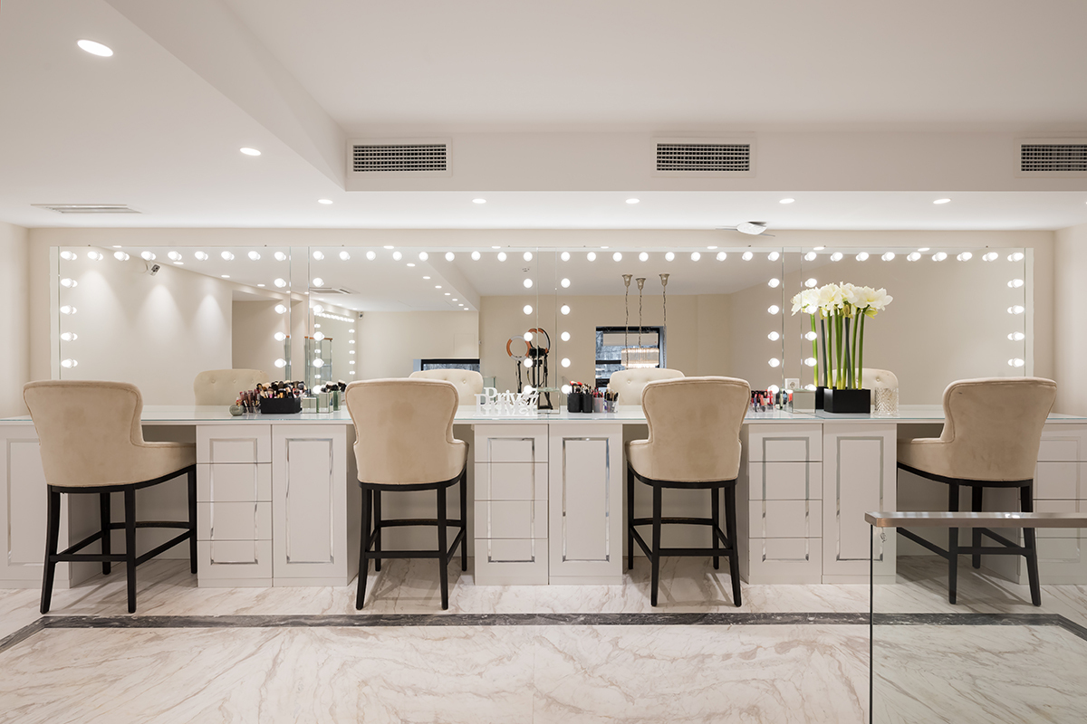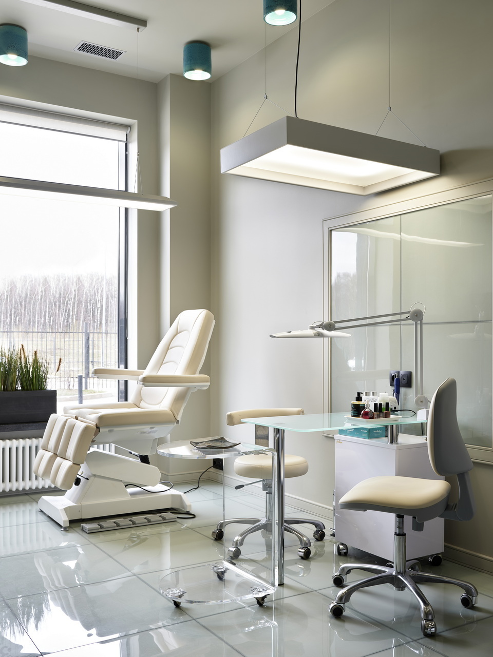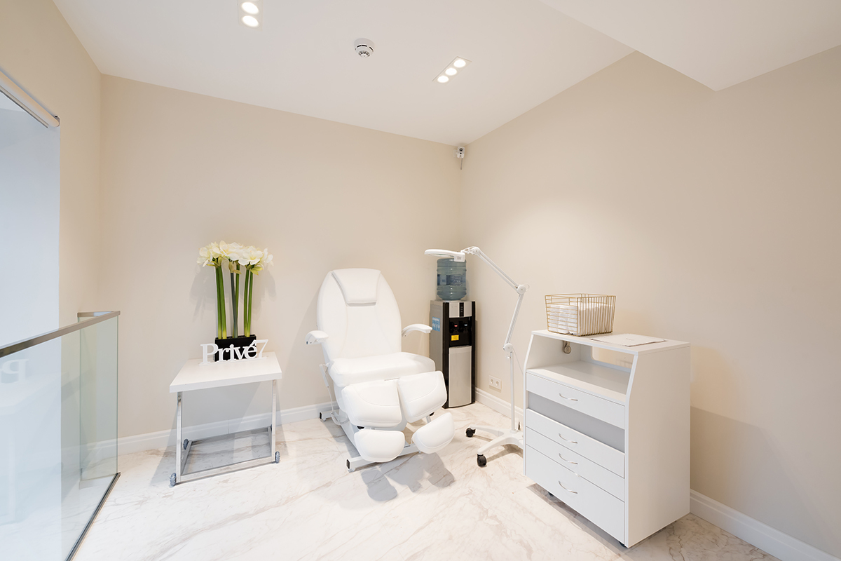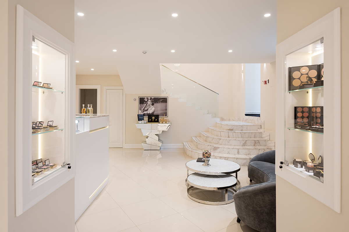 Клиника расположена на Котельнической набережной в двухуровневом пространстве общей площадью 374 кв. м, с видом на Кремль. Интерьер выдержан в современном минималистичном стиле с использованием мрамора, дерева и латуни. Пространство получилось светлым, уютным и атмосферным, при этом соответствует всем требованиям медицинского учреждения.