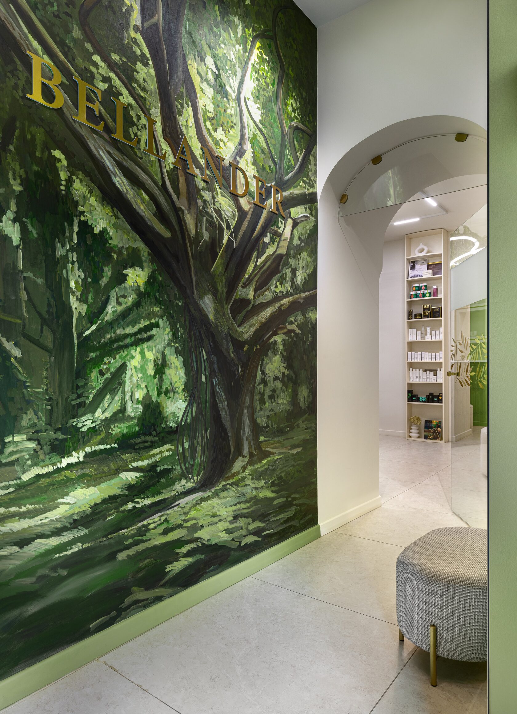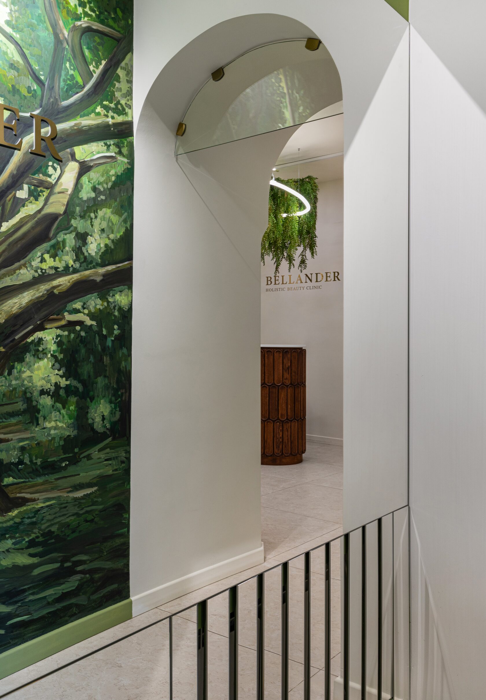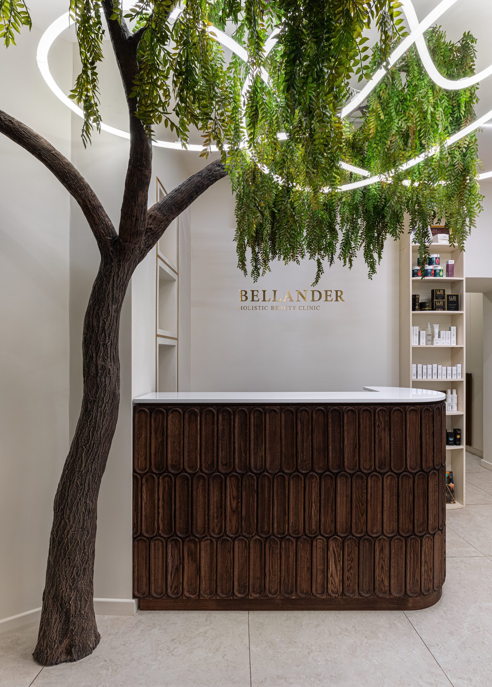 Bellander — это не просто медицинский центр, а пространство, где красота возвращается к своим истокам. Новый бренд с уникальной айдентикой создаёт атмосферу доверия и спокойствия, подчёркивая естественность как основу гармонии внешнего и внутреннего. В интерьере использованы природные оттенки и органические материалы, а в зоне ожидания и на ресепшене размещены живые деревья — символ философии бренда.