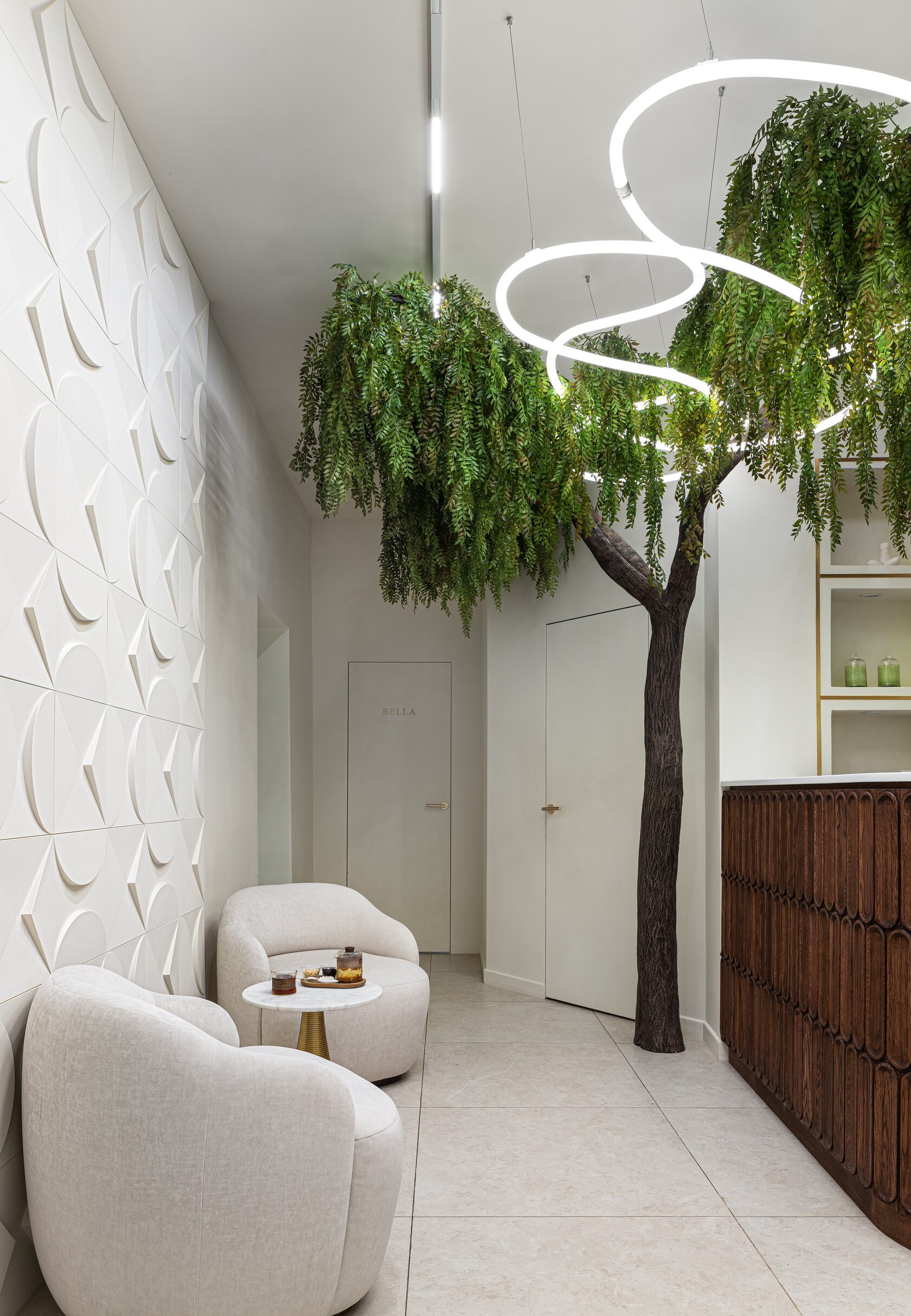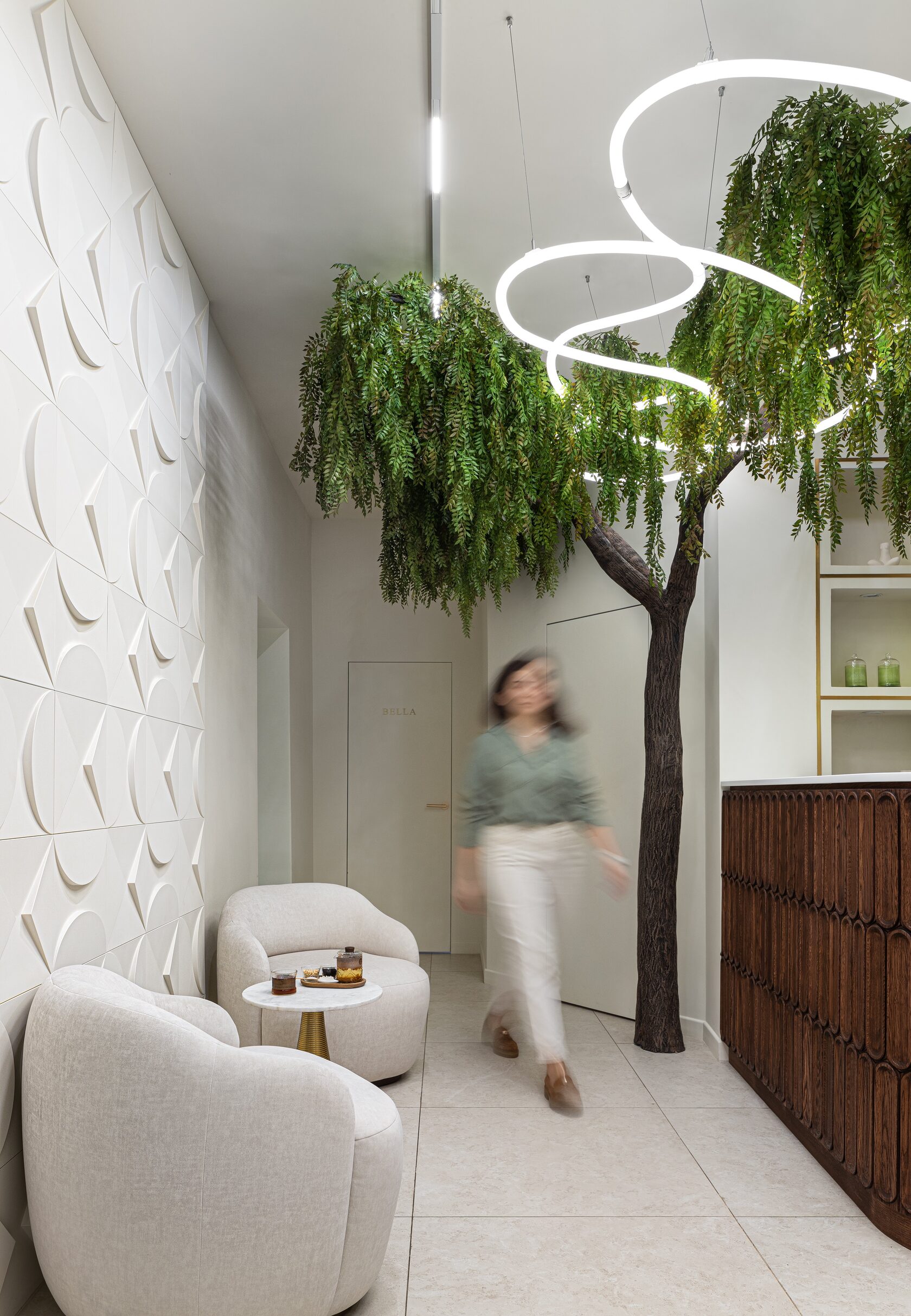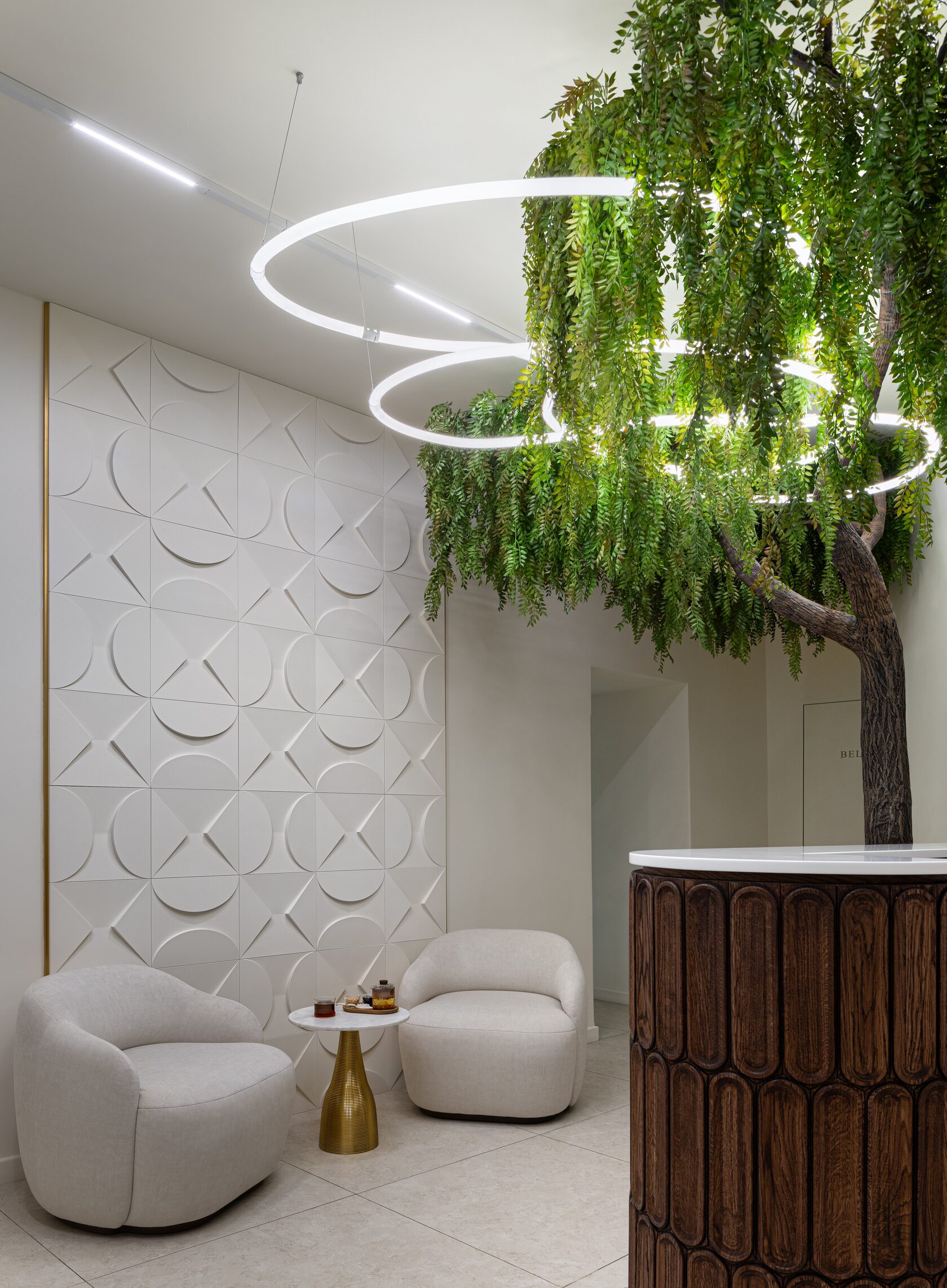 Bellander — это не просто медицинский центр, а пространство, где красота возвращается к своим истокам. Новый бренд с уникальной айдентикой создаёт атмосферу доверия и спокойствия, подчёркивая естественность как основу гармонии внешнего и внутреннего. В интерьере использованы природные оттенки и органические материалы, а в зоне ожидания и на ресепшене размещены живые деревья — символ философии бренда.