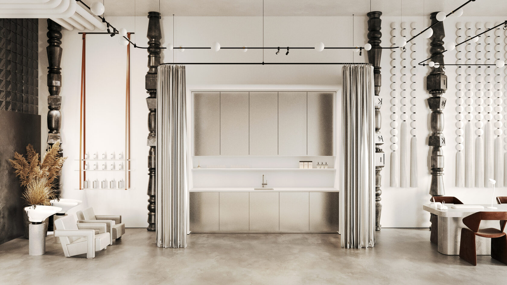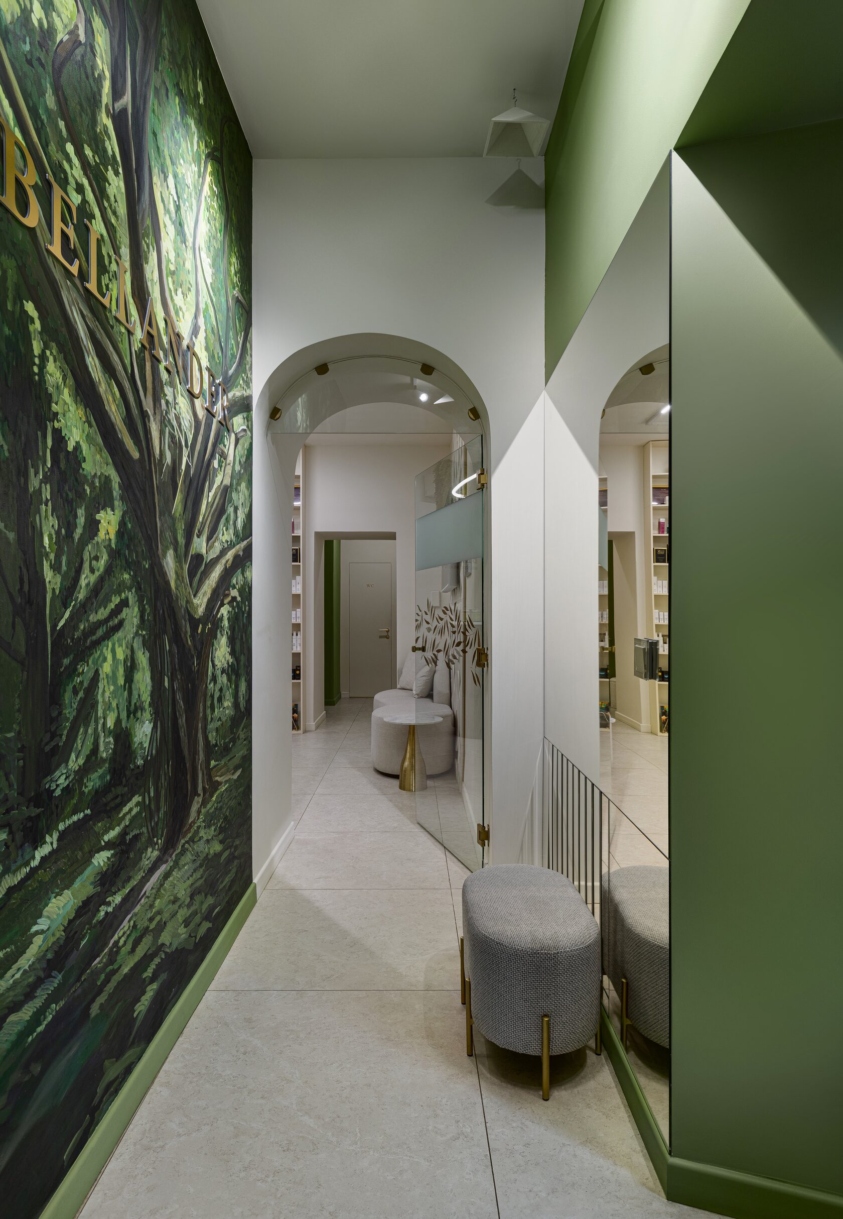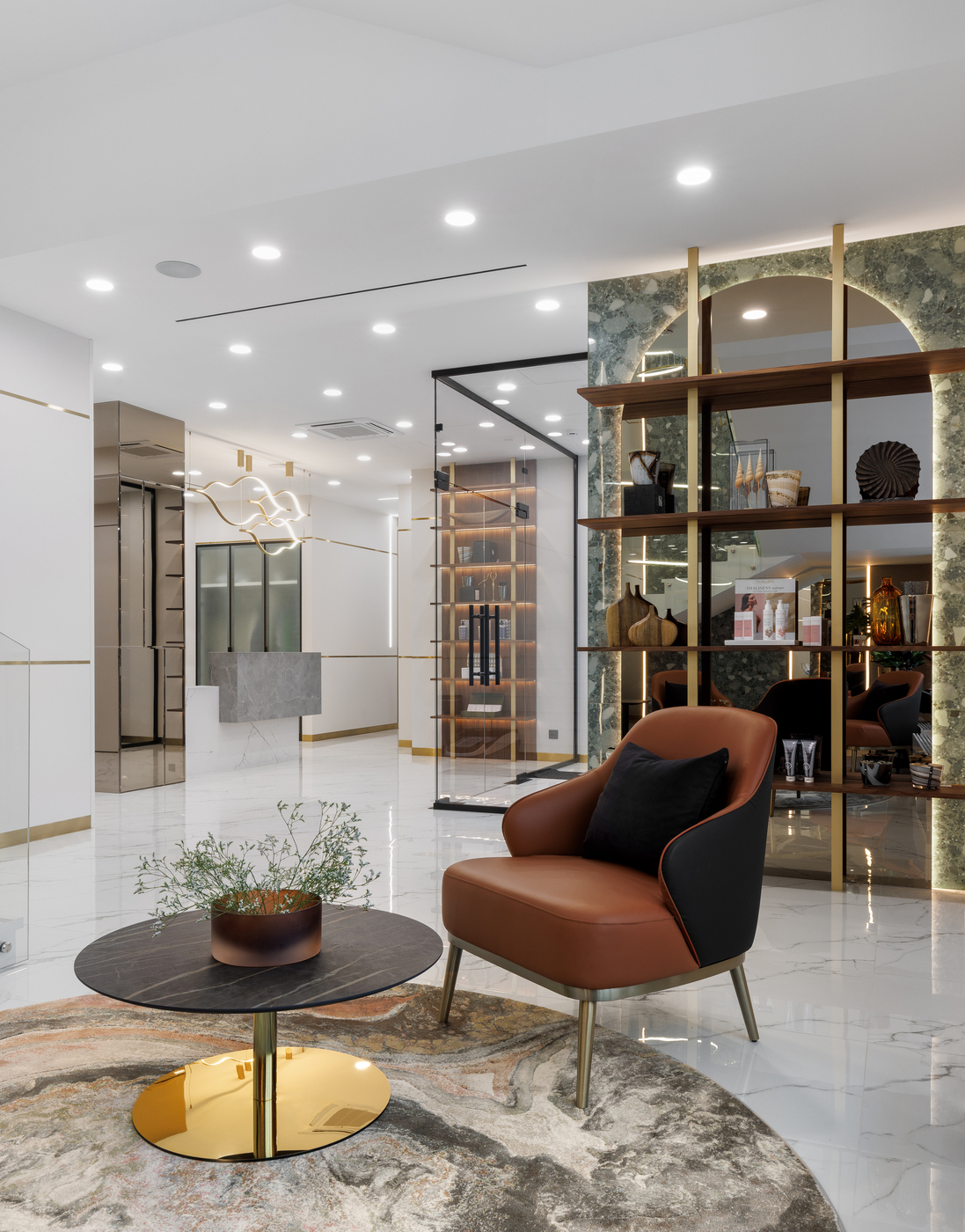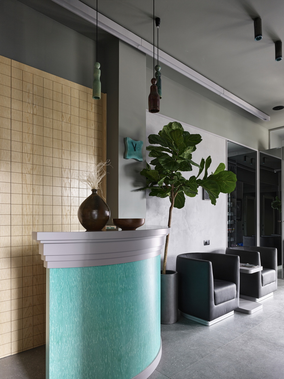 Проект представляет собой салон красоты, где каждая деталь продумана с точки зрения комфорта, эргономики и эстетики. Интерьер выполнен в смешанном стиле, объединяющем традиции и инновации. Планировка тщательно выверена, все зоны — лаборатории, рецепшн, клиентские зоны — функциональны и удобны. Использованы высококачественные материалы: стекло, металл, керамика, бетон, гипсовая лепнина, искусственный камень, создавая многослойное пространство с микромиром мизансцен, акцентов и доминант.