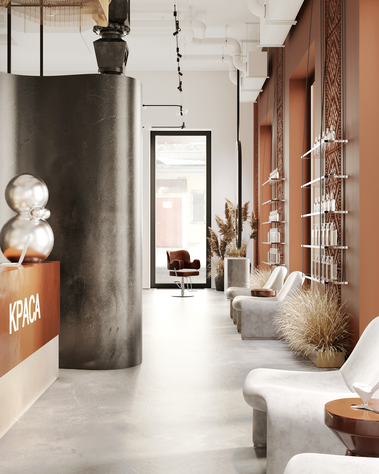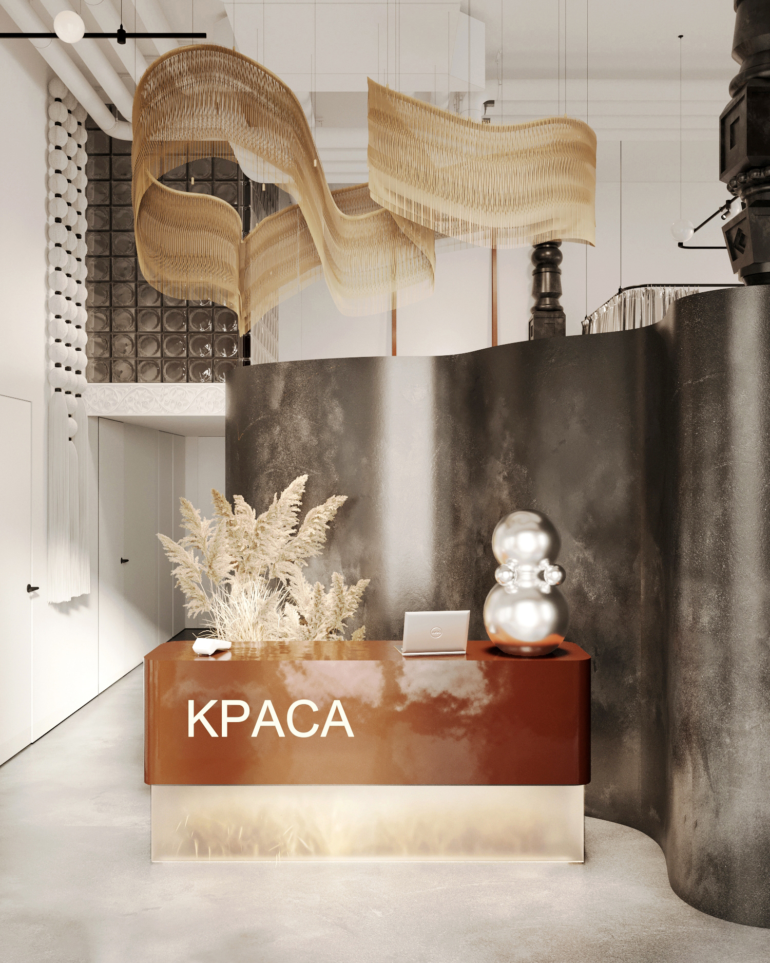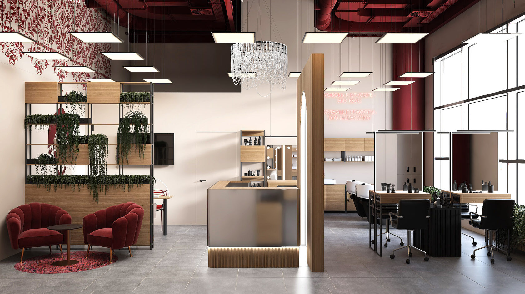 Концепция: Философия «Красавы» утверждает, что настоящая красота рождается на стыке традиции и современности. Проект вдохновлен богатством русской культуры, её символами, переосмысленными сквозь призму сегодняшнего дня. Интерьер подчеркивает идею диалога прошлого и будущего, сочетая наследие и инновации. Он создан как фон, который поддерживает, вдохновляет и раскрывает потенциал как мастеров, так и клиентов, уважая их индивидуальность. «Красава» — это современное культурное высказывание о женственности, самобытности и красоте, созданное на пересечении этнической памяти и актуального дизайна.