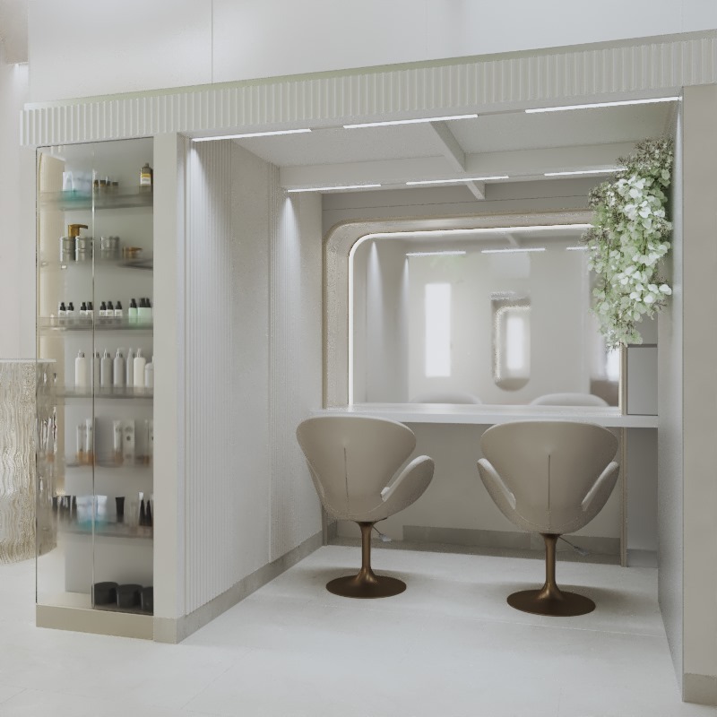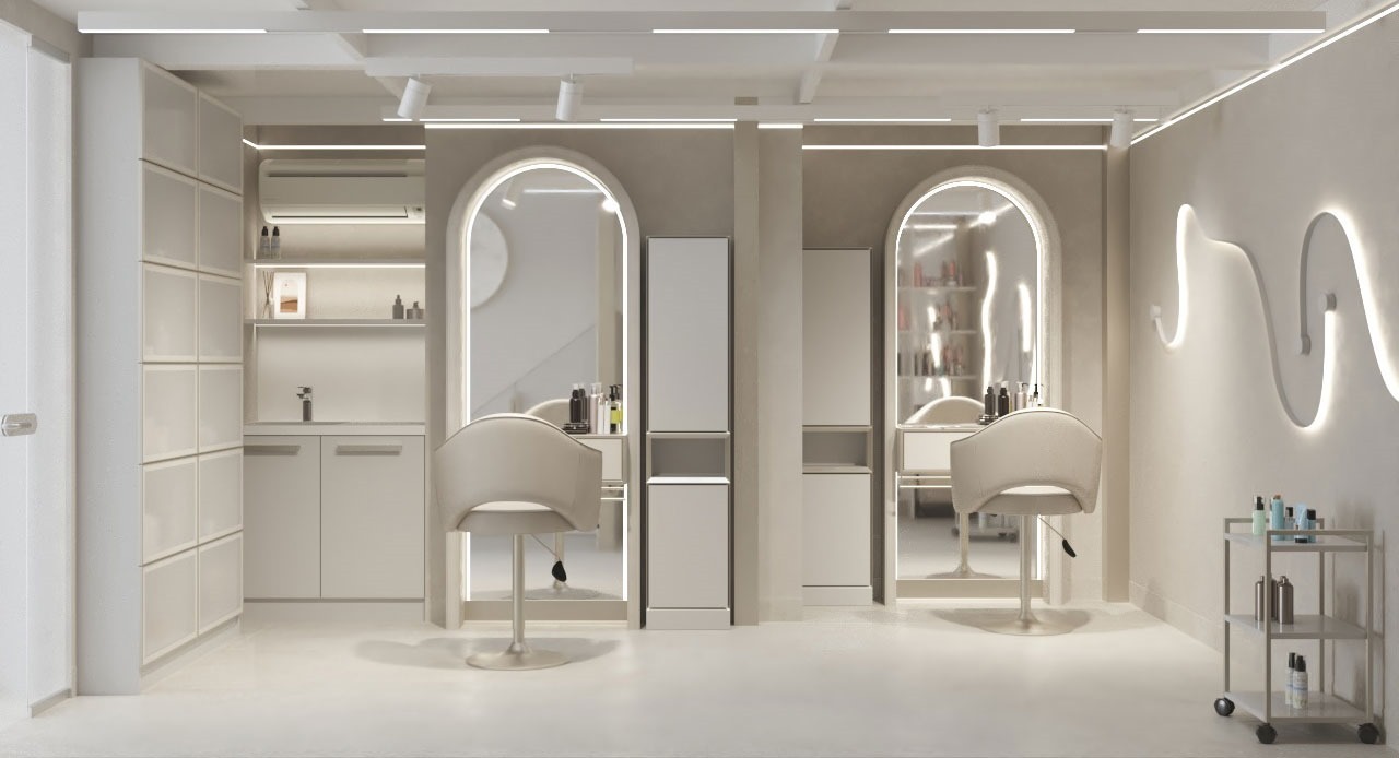 Итог: Салон красоты стал примером продуманного, многослойного пространства, где каждая деталь служит общей гармонии. Эстетика, функциональность и эргономика объединены так, чтобы создавать комфорт, безопасность и визуальное удовольствие для клиентов и сотрудников.