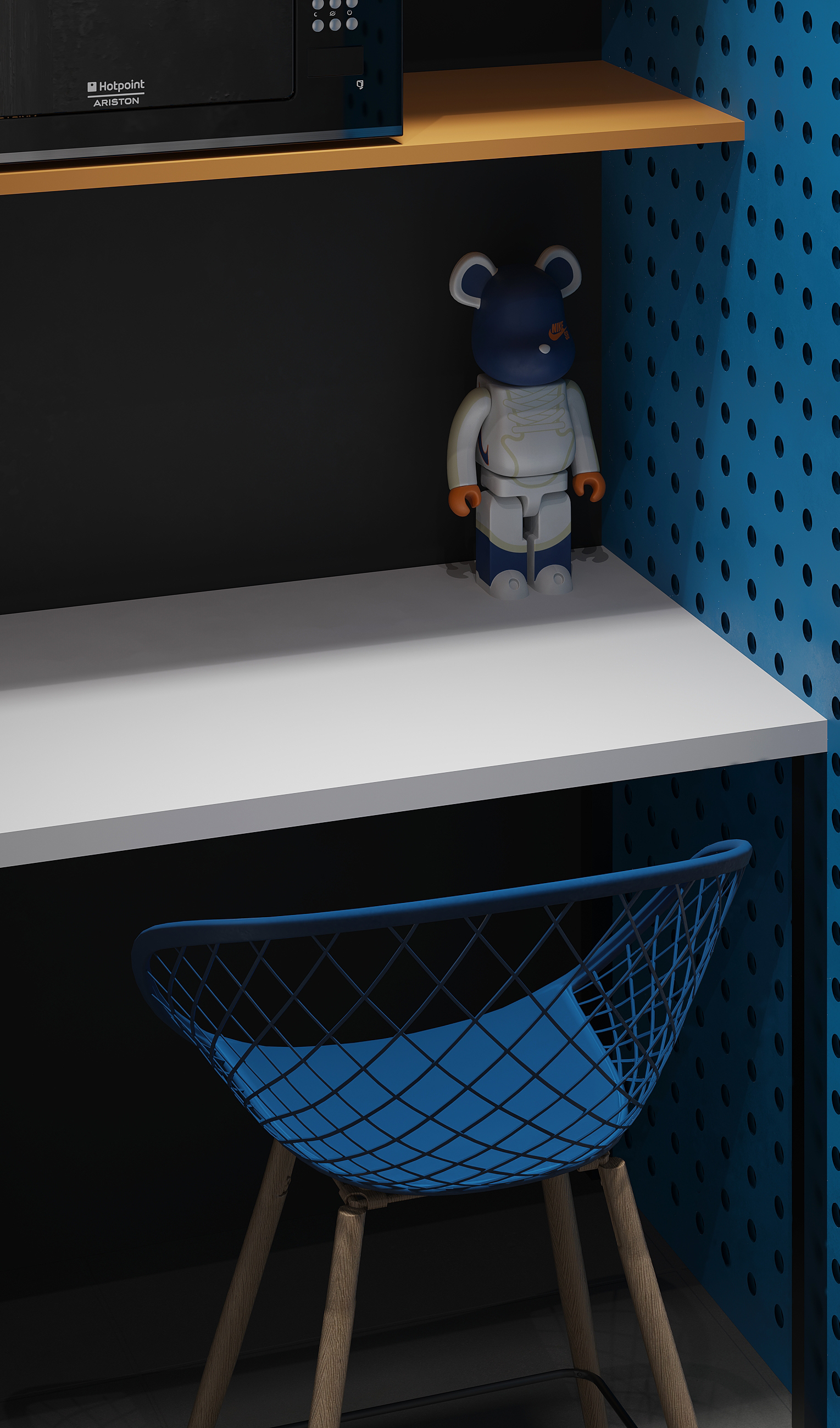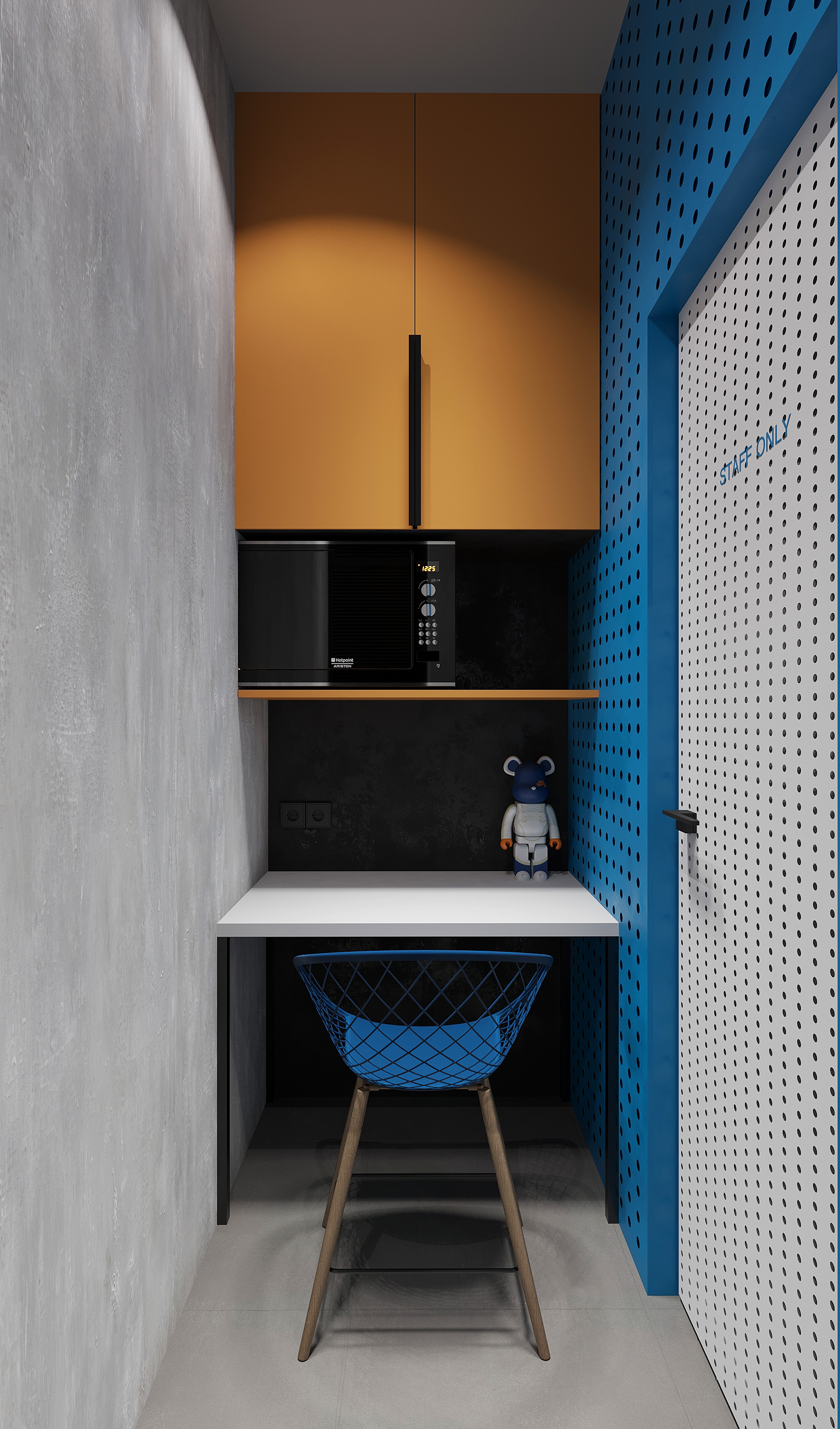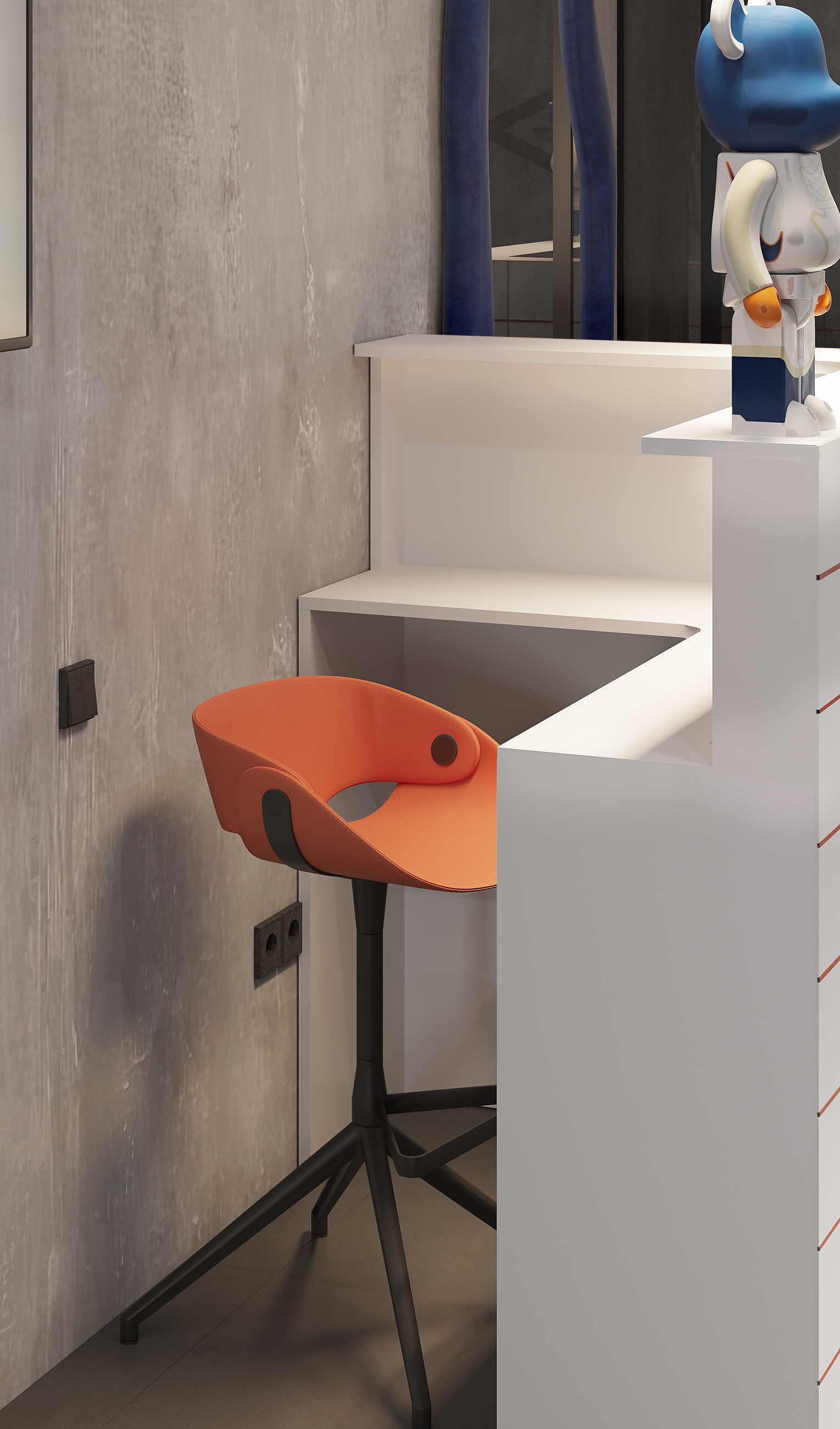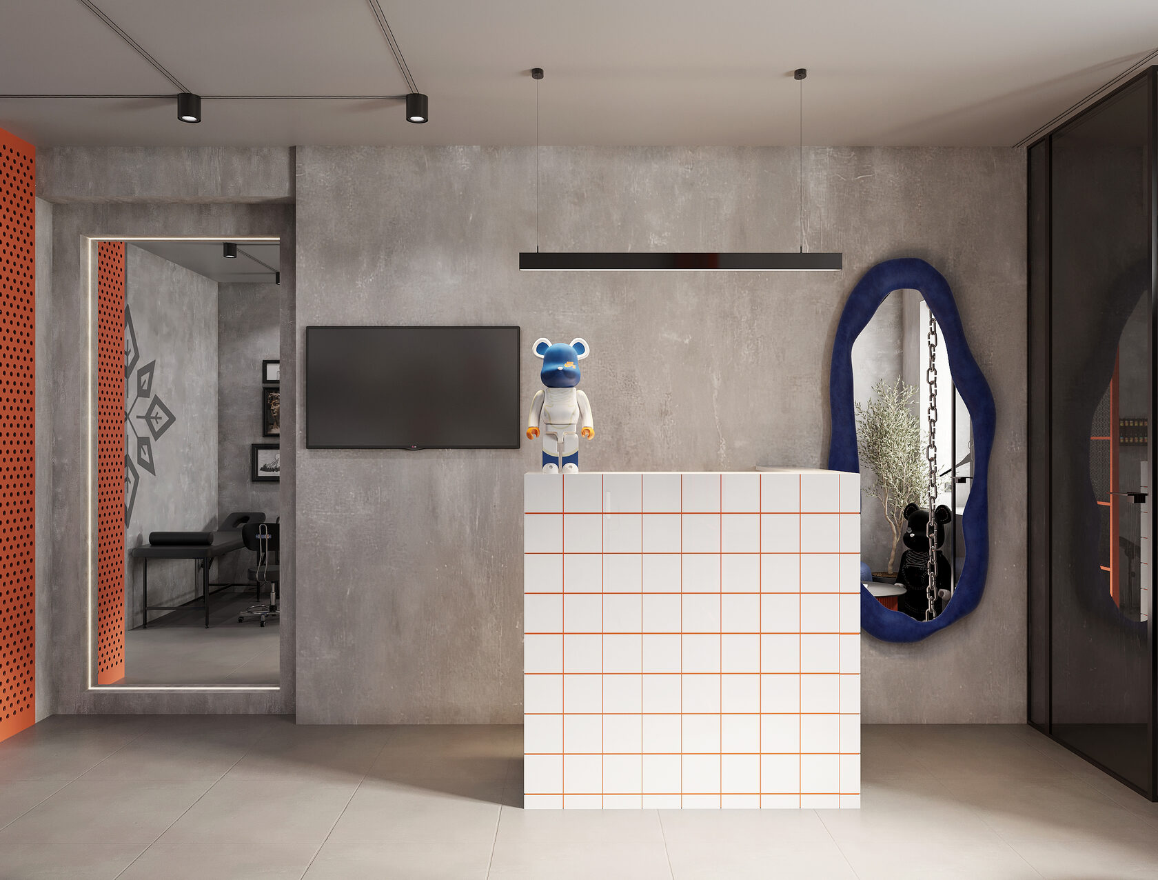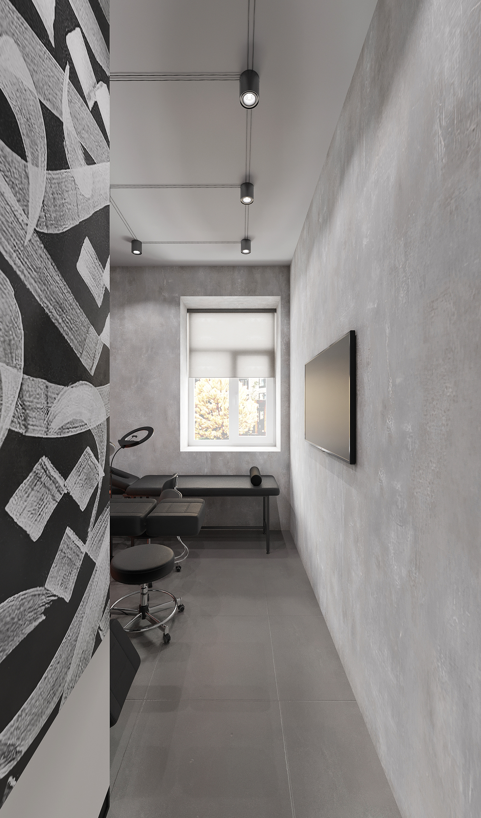 Концепция: В основе дизайн-концепции лежит глубокое понимание потребностей каждого специалиста, что позволило создать интуитивно понятные и эргономичные рабочие зоны: два места для тату-мастеров и индивидуальный кабинет для пирсинга. В палитре интерьера доминируют спокойные серые оттенки, формирующие атмосферу умиротворения и уюта, контрастирующие с яркими акцентами и деталями, которые придают пространству динамизм и неповторимую индивидуальность. Проект включает проработанные зоны: эффектный ресепшн, комфортабельную зону ожидания, специализированные рабочие станции, профессиональную фотозону, а также удобные бытовые помещения для персонала – кухню и санузел.