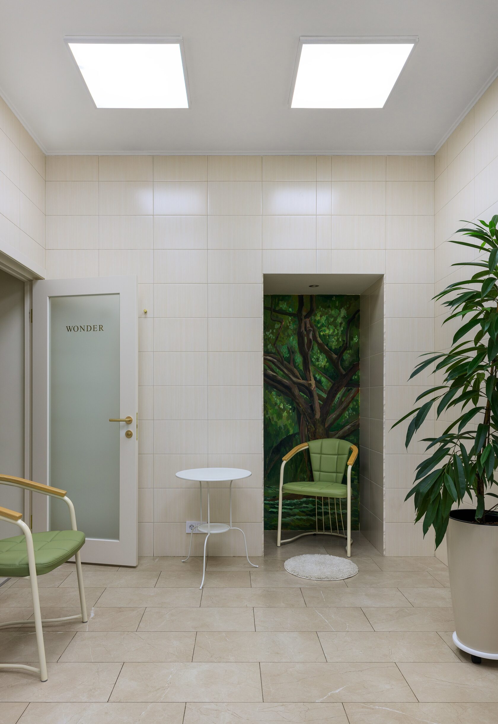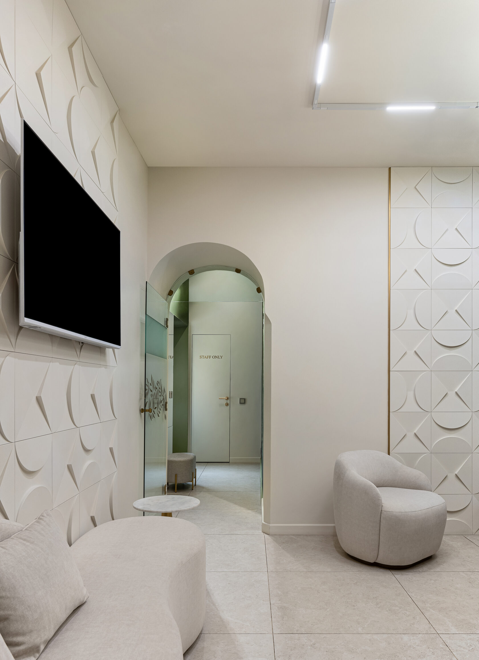 Итог: Клиника ориентирована на клиентов бизнес-сегмента. Это премиальное, запоминающееся пространство, которое стало первой клиникой в сети. Интерьер создан так, чтобы клиенты хотели возвращаться вновь, сочетая стиль, уют и атмосферу заботы.