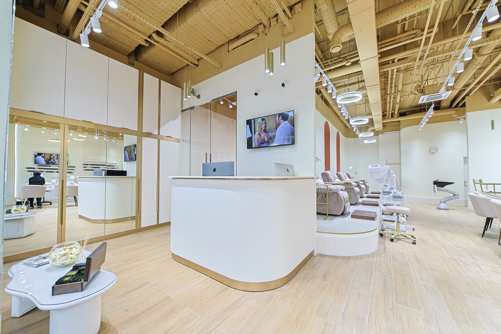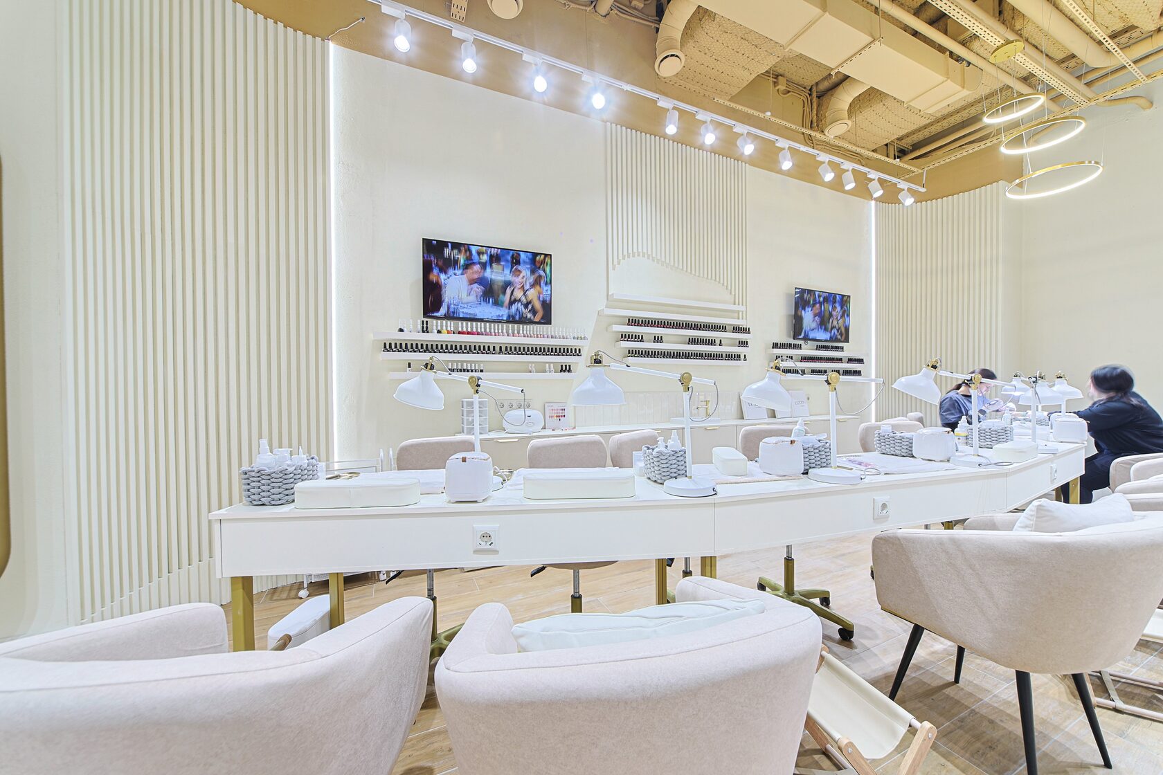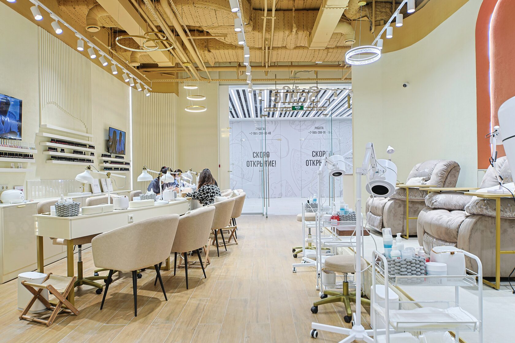 Новый флагманский салон сети «Selfie Beauty Club» площадью 105 м², стратегически расположенный в динамичном центре Москвы, ТЦ «ЗУМ» на территории ЗИЛарт. Проект был реализован для расширения присутствия бренда, предоставив клиентам и персоналу многофункциональное пространство, включающее VIP-кабинет для обслуживания в 'шесть рук', просторную зону маникюра на 8 мест, инновационную подиумную зону для 'четырех рук', а также специализированные зоны мейкапа и полноценную инфраструктуру для персонала.