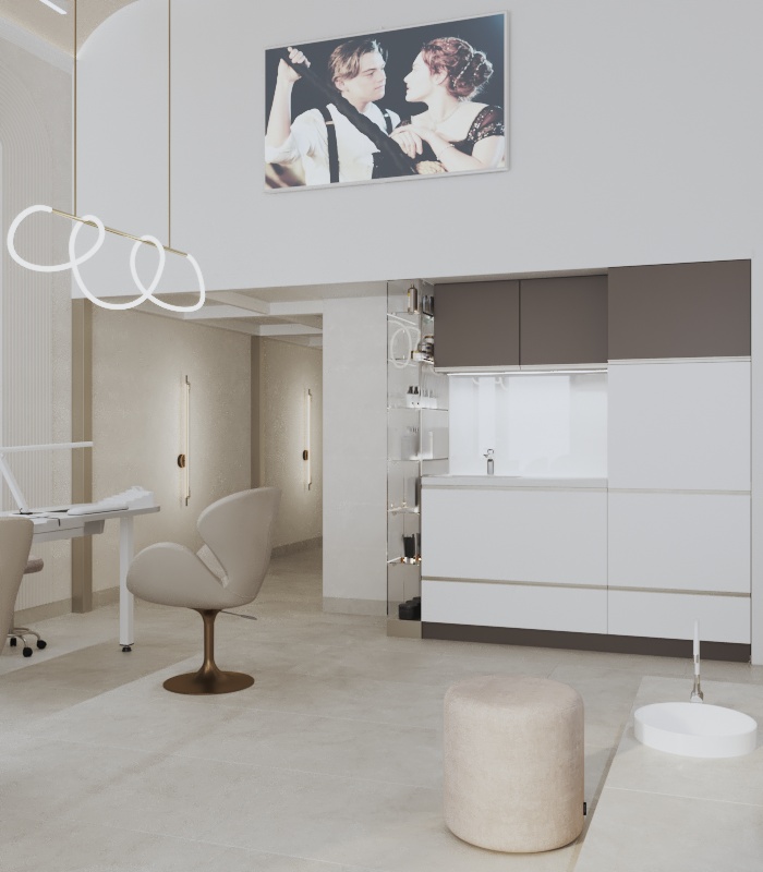 Этот проект разработан для одного из кабинетов салона красоты, где каждая деталь подчеркивает стремление к эстетике и индивидуальности. Основная идея — создать пространство, которое само по себе вдохновляет и вызывает чувство восхищения.