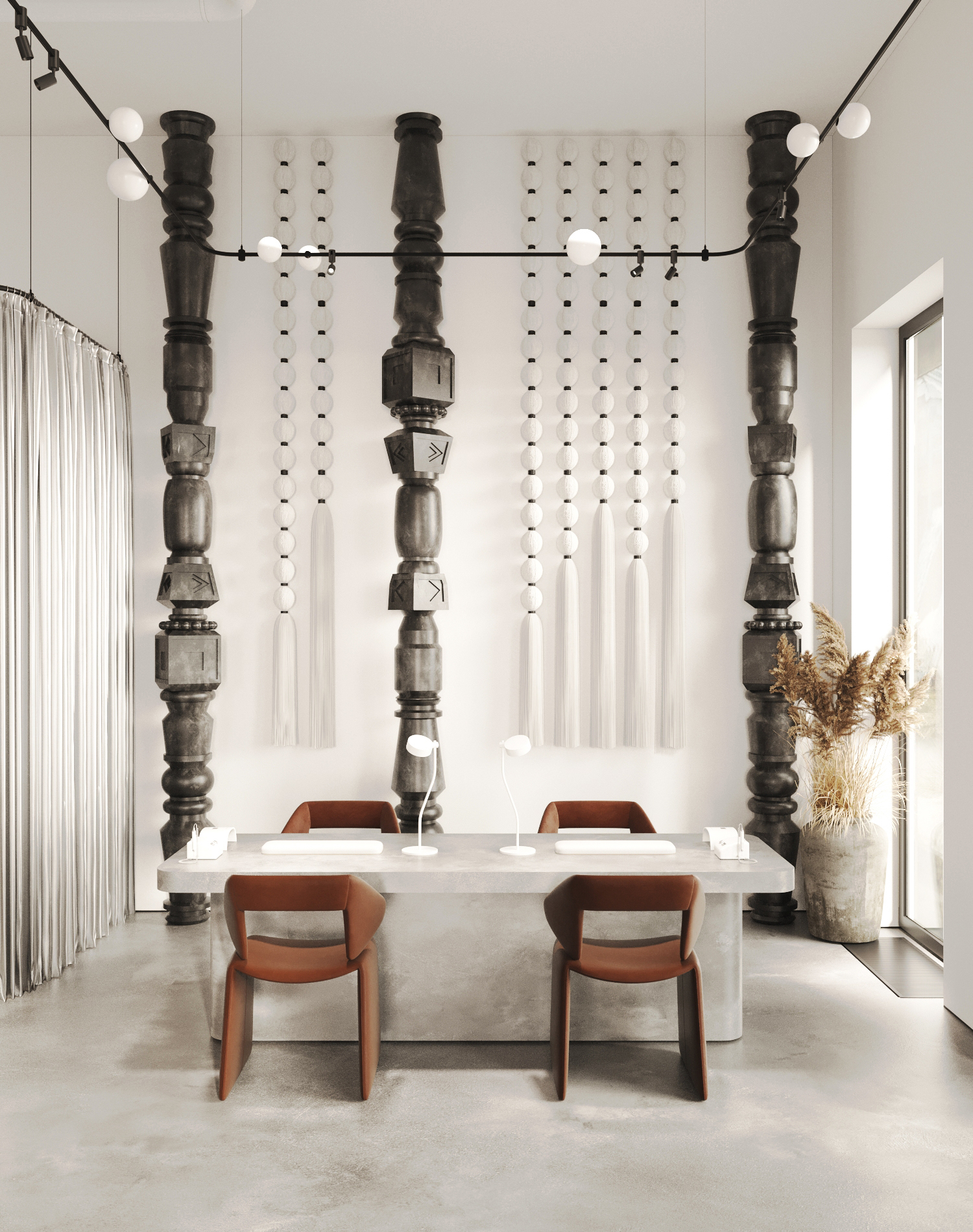 Итог: В результате создан не просто функциональный бьюти-коворкинг, а эстетически выдающееся пространство, которое служит воплощением уникального синтеза традиций и новаторства. «Красава» предлагает вдохновляющую и комфортную среду для профессионалов и клиентов, становясь ярким примером современной интерпретации национальной идентичности в дизайне и успешно демонстрируя, как культурное наследие может быть актуализировано и интегрировано в современное пространство красоты.