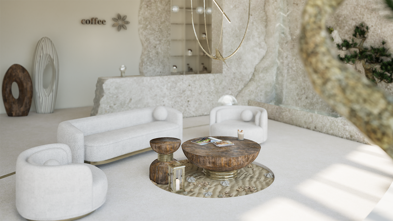Концепция: Дизайн интерьера строится на синтезе этнических мотивов и современных решений. Натуральные материалы — дерево, камень, текстиль в тёплых тонах — гармонично сочетаются с технологичными элементами для обеспечения максимального комфорта. Пространство наполнено мягким светом, природными текстурами и уединёнными зонами, создающими атмосферу полного расслабления.