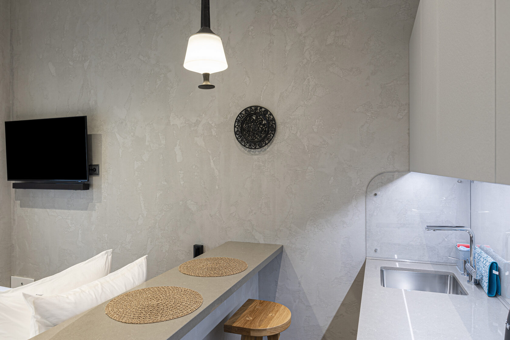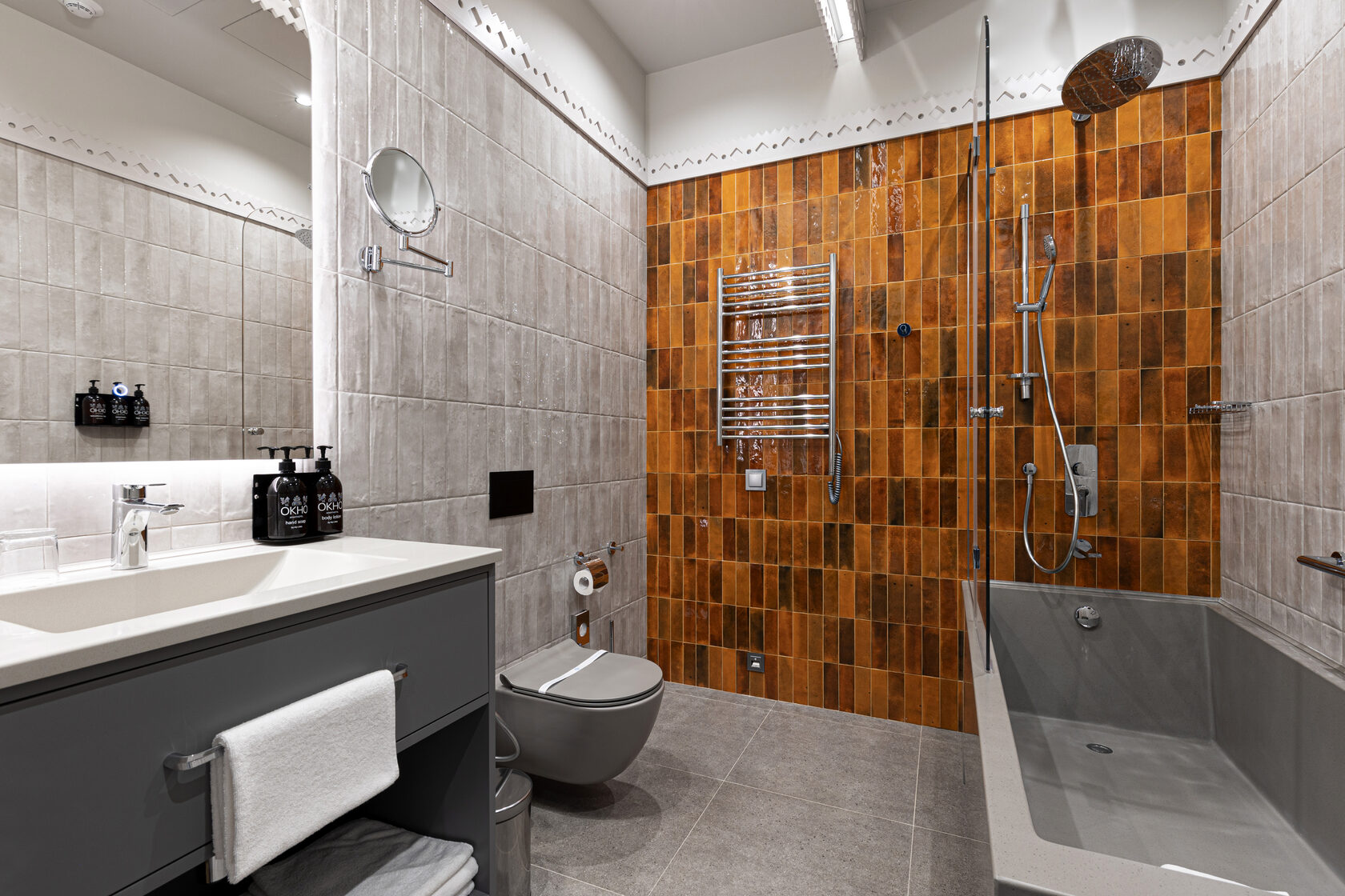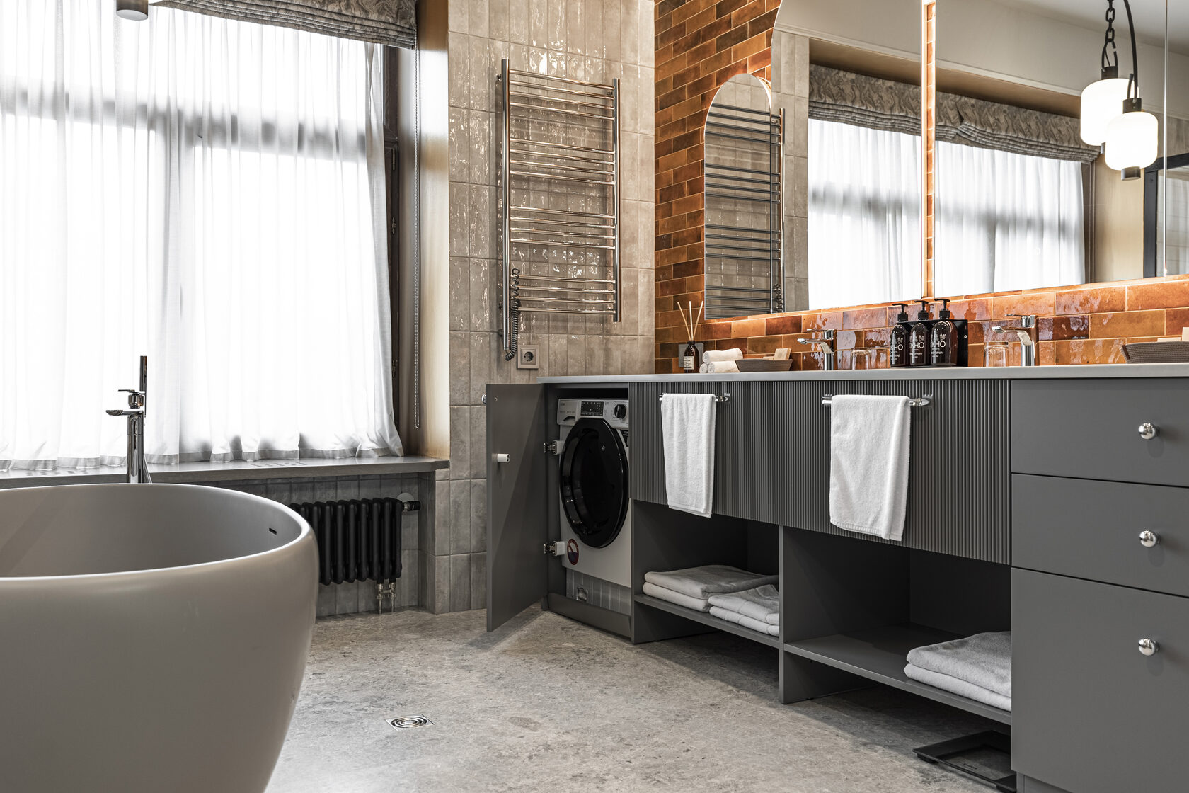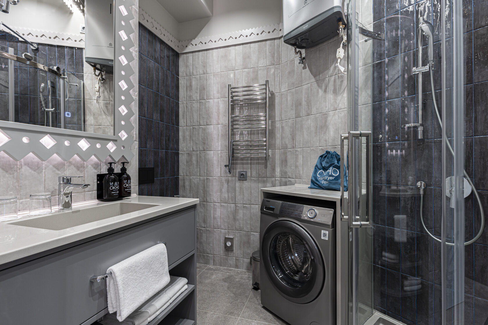 Технологическая новизна проекта заключается в применении материала Solid Surface и разработке модульной системы нового типа. Подобные решения почти не представлены в России, а интеграция формы отдельно стоящей ванны в модуль — была спроектирована впервые.