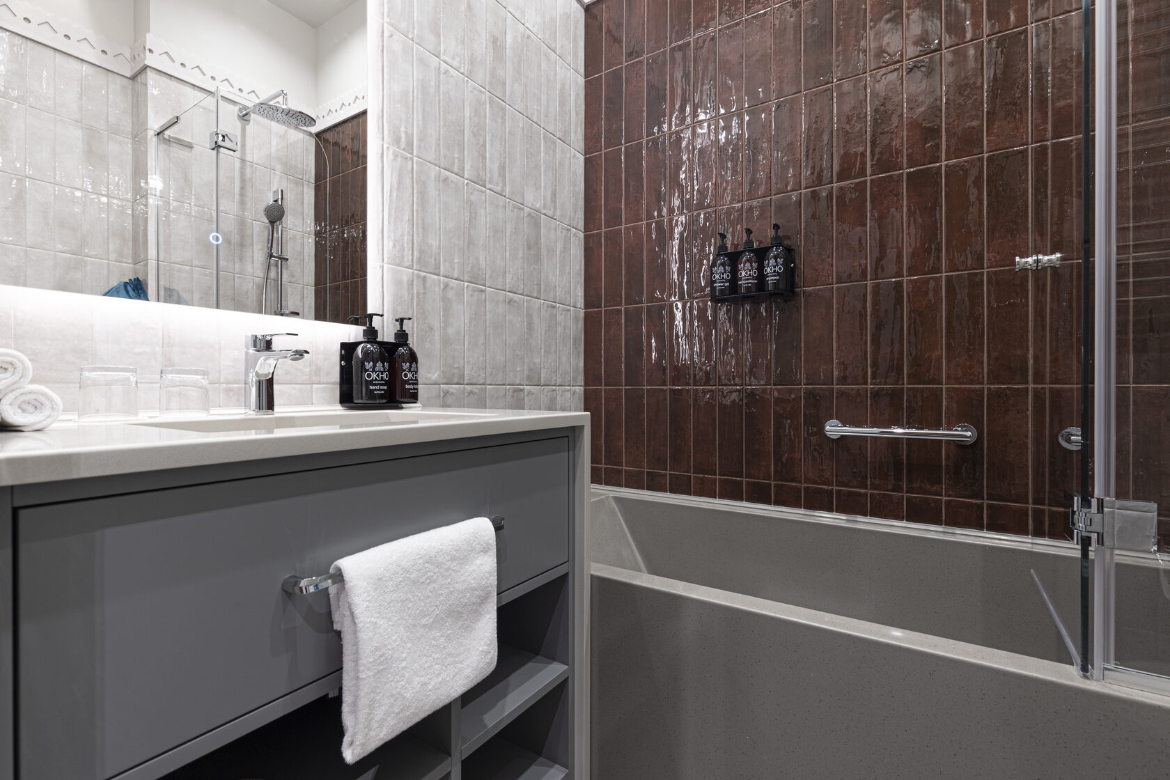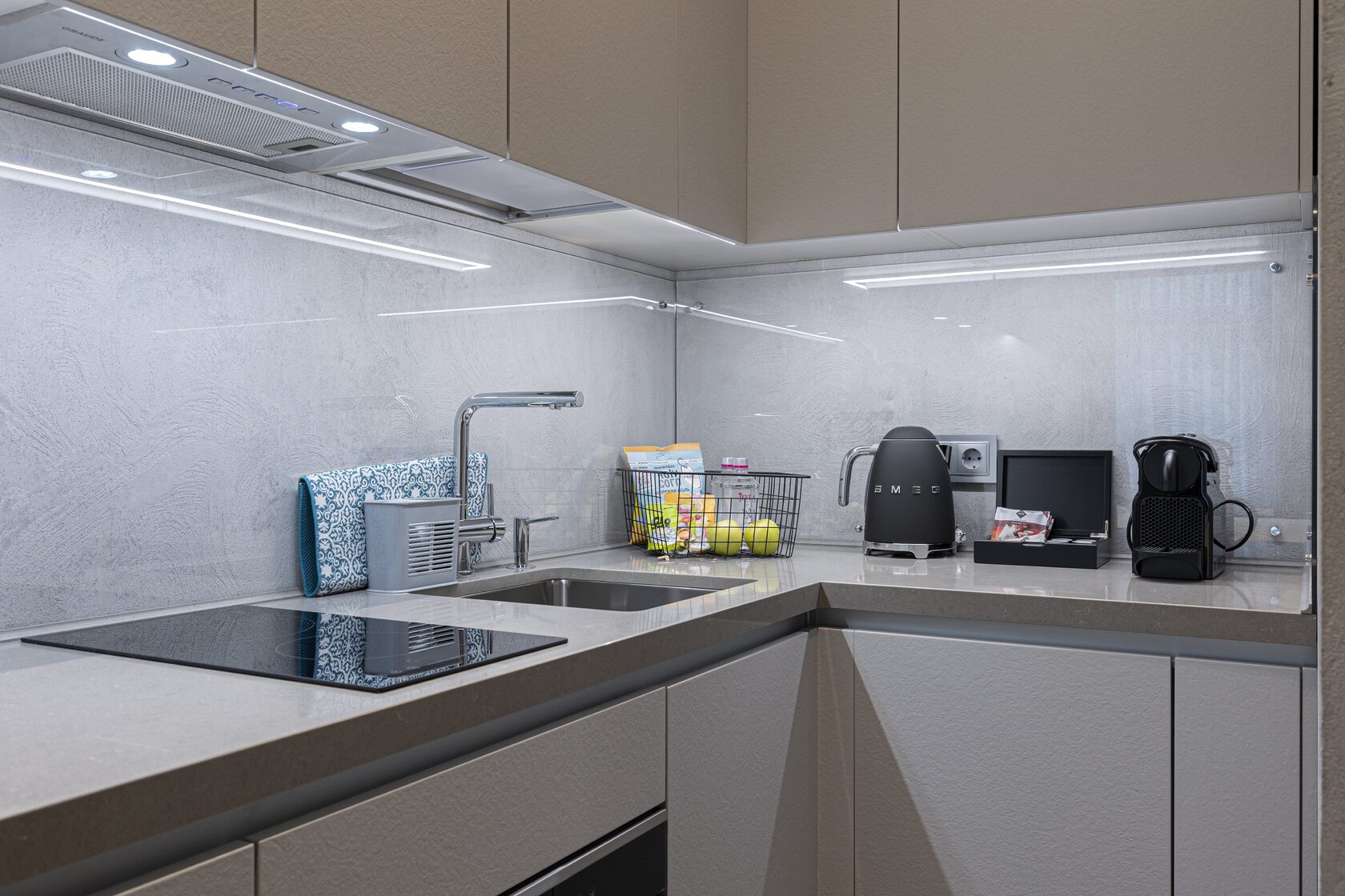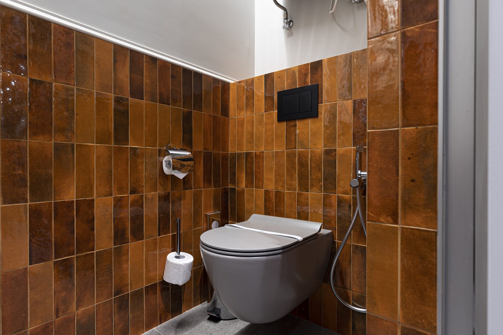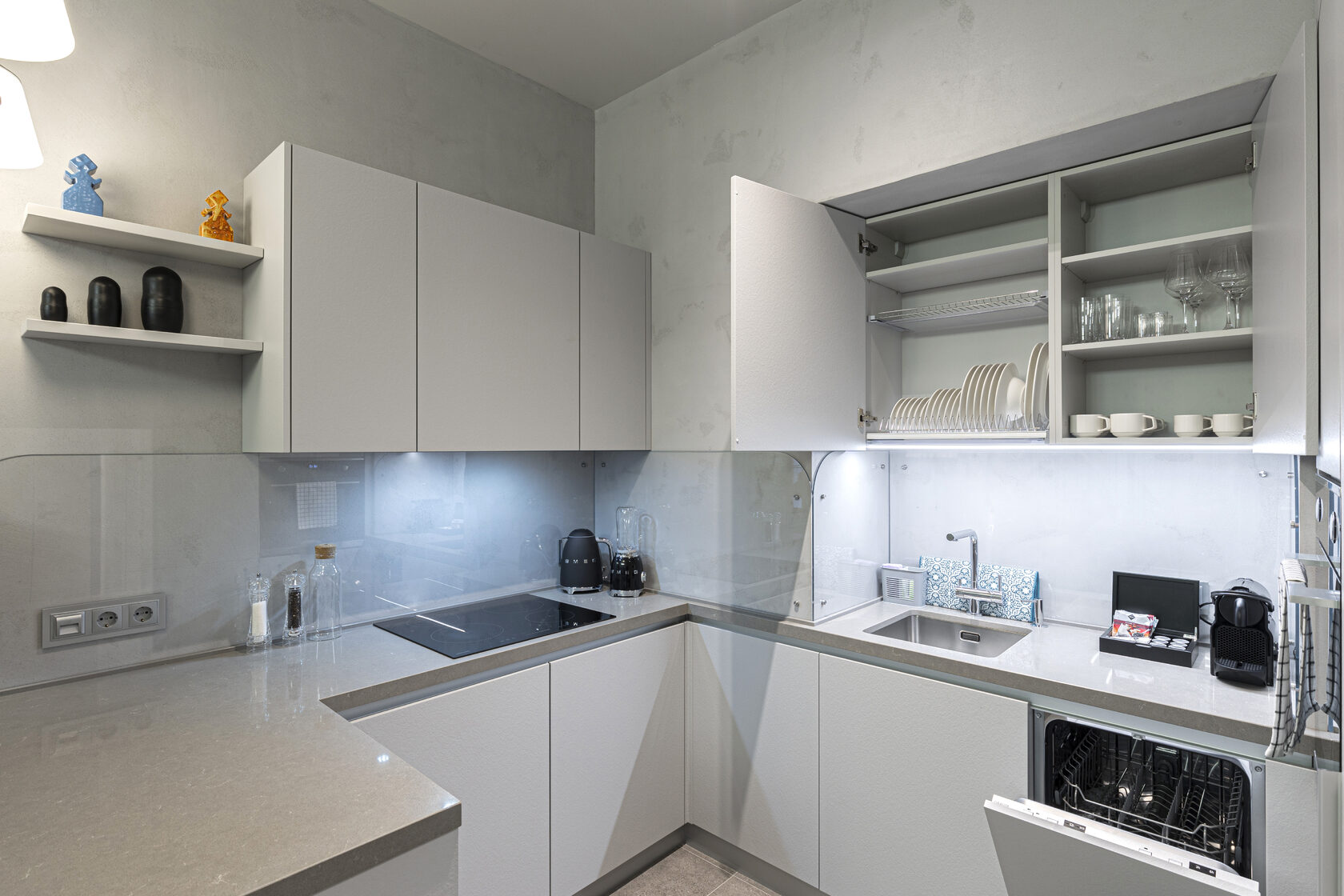 Технологическая новизна проекта заключается в применении материала Solid Surface и разработке модульной системы нового типа. Подобные решения почти не представлены в России, а интеграция формы отдельно стоящей ванны в модуль — была спроектирована впервые.