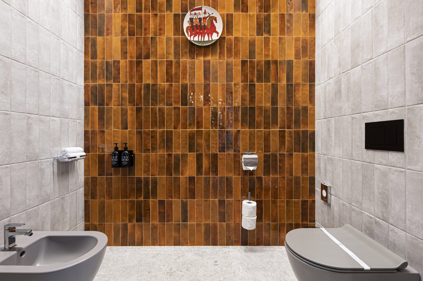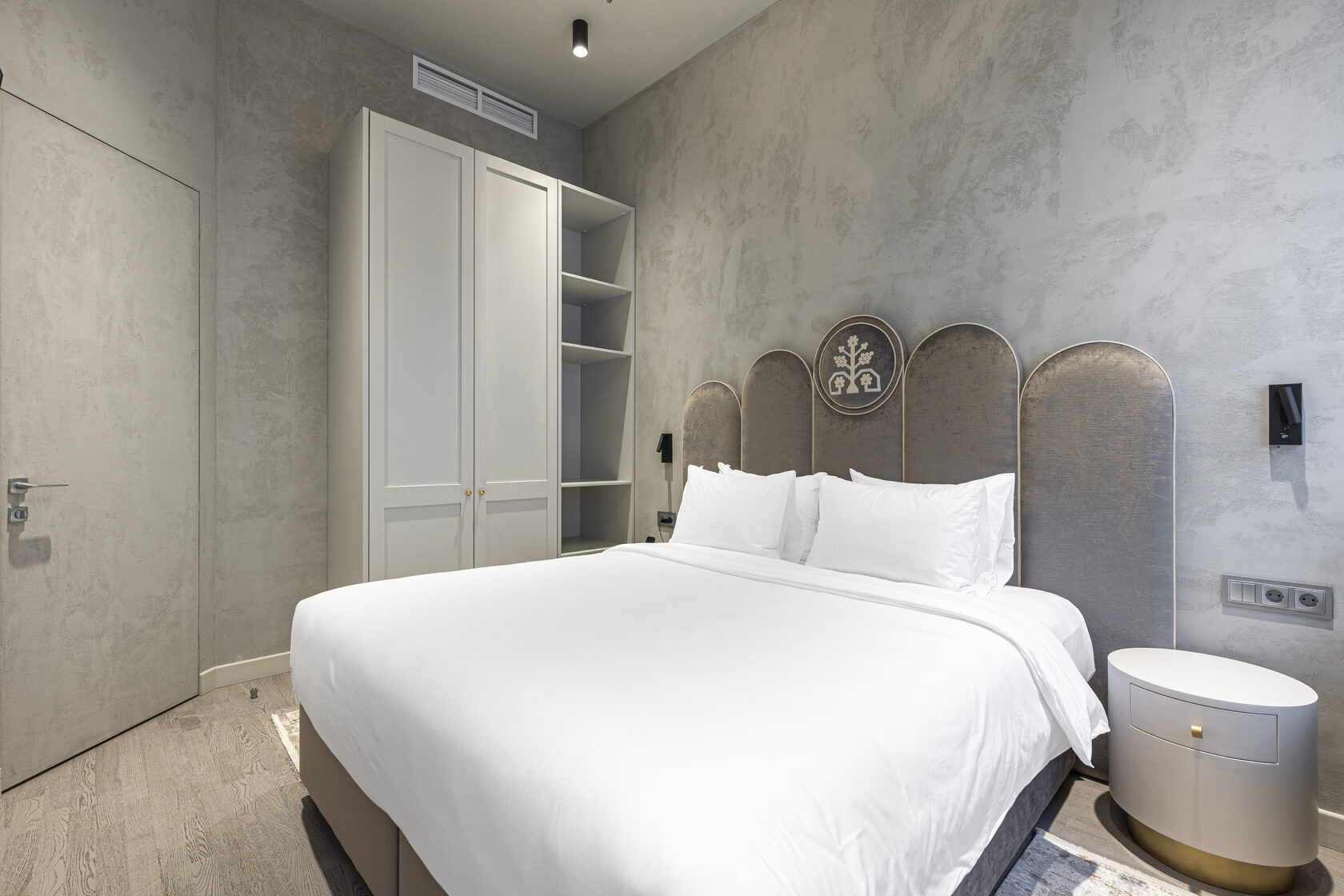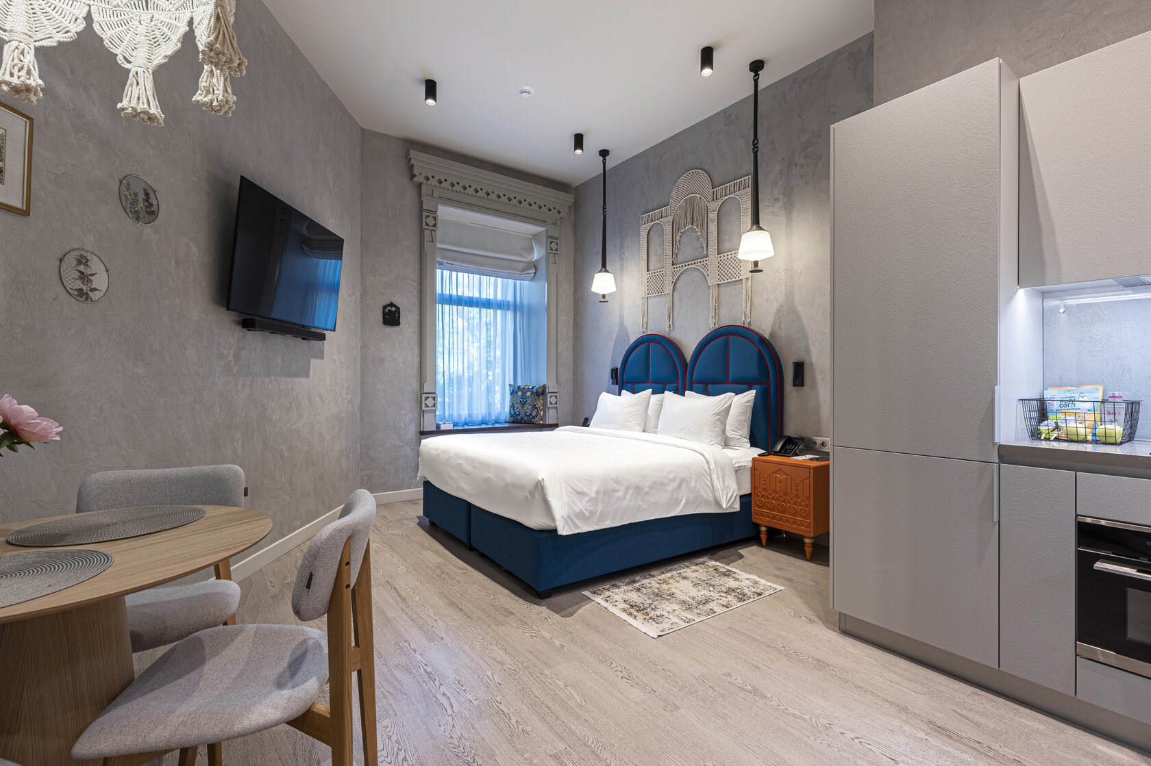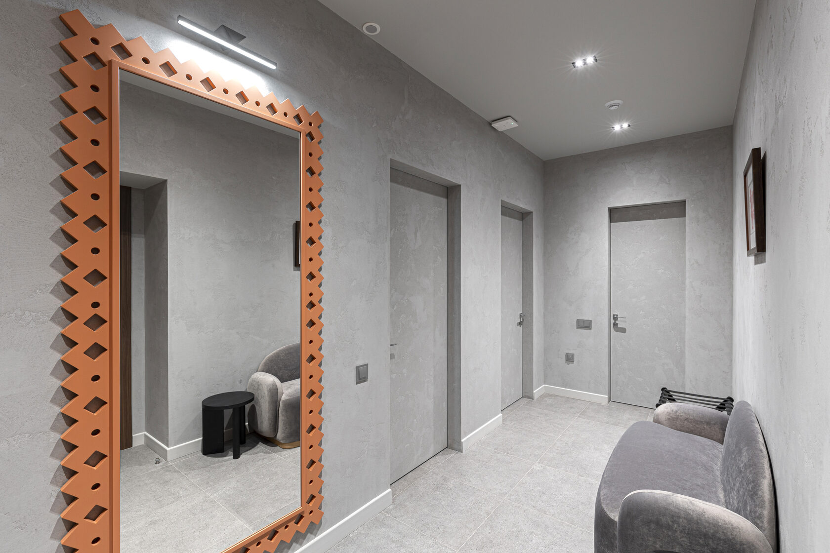Концепция: Основная идея проекта заключается в создании 'окна в современную Россию' через гармоничное сочетание традиций и новаторства. Интерьеры отеля искусно вплетают культурный код страны во все аспекты дизайна: от отделки стен до тщательно подобранной мебели, светильников и текстиля. Каждый из двадцати одного номера, распределенного по восьми категориям, назван в честь знаменитых русских народных промыслов (Дымково, Касли, Жостово и др.), что подчеркивает уникальную идентичность и богатство русской культуры.