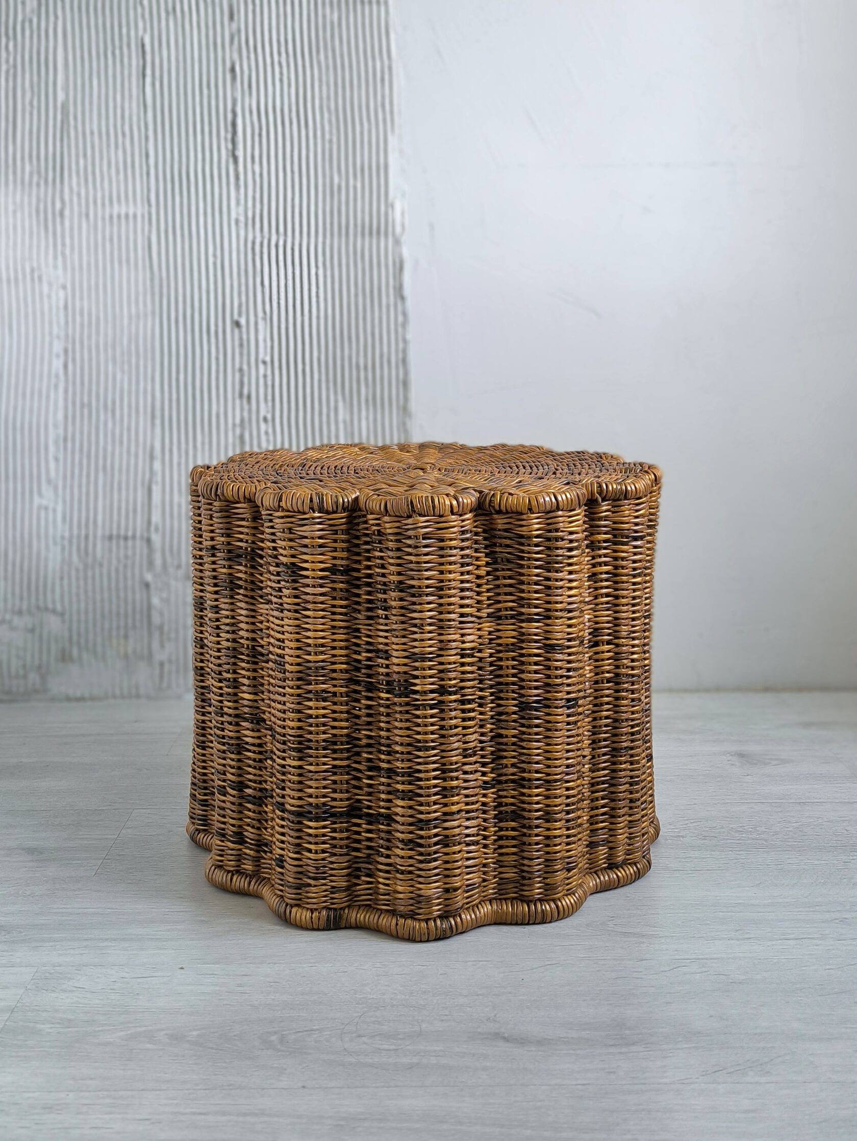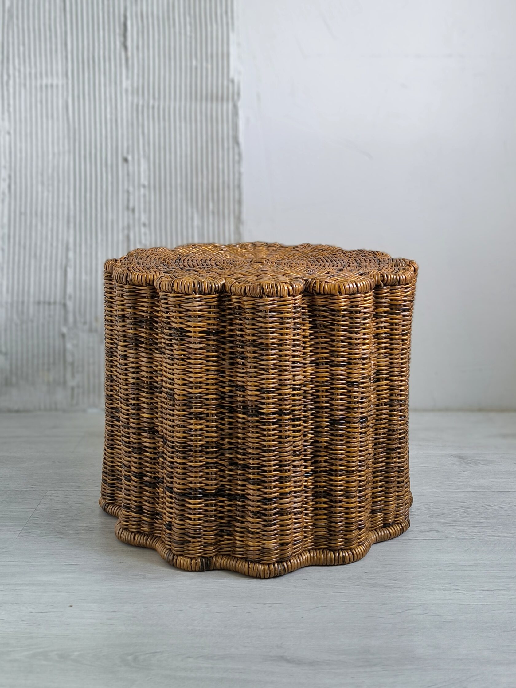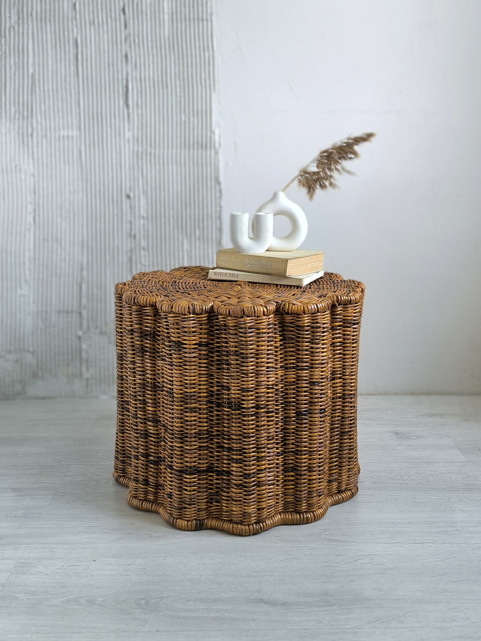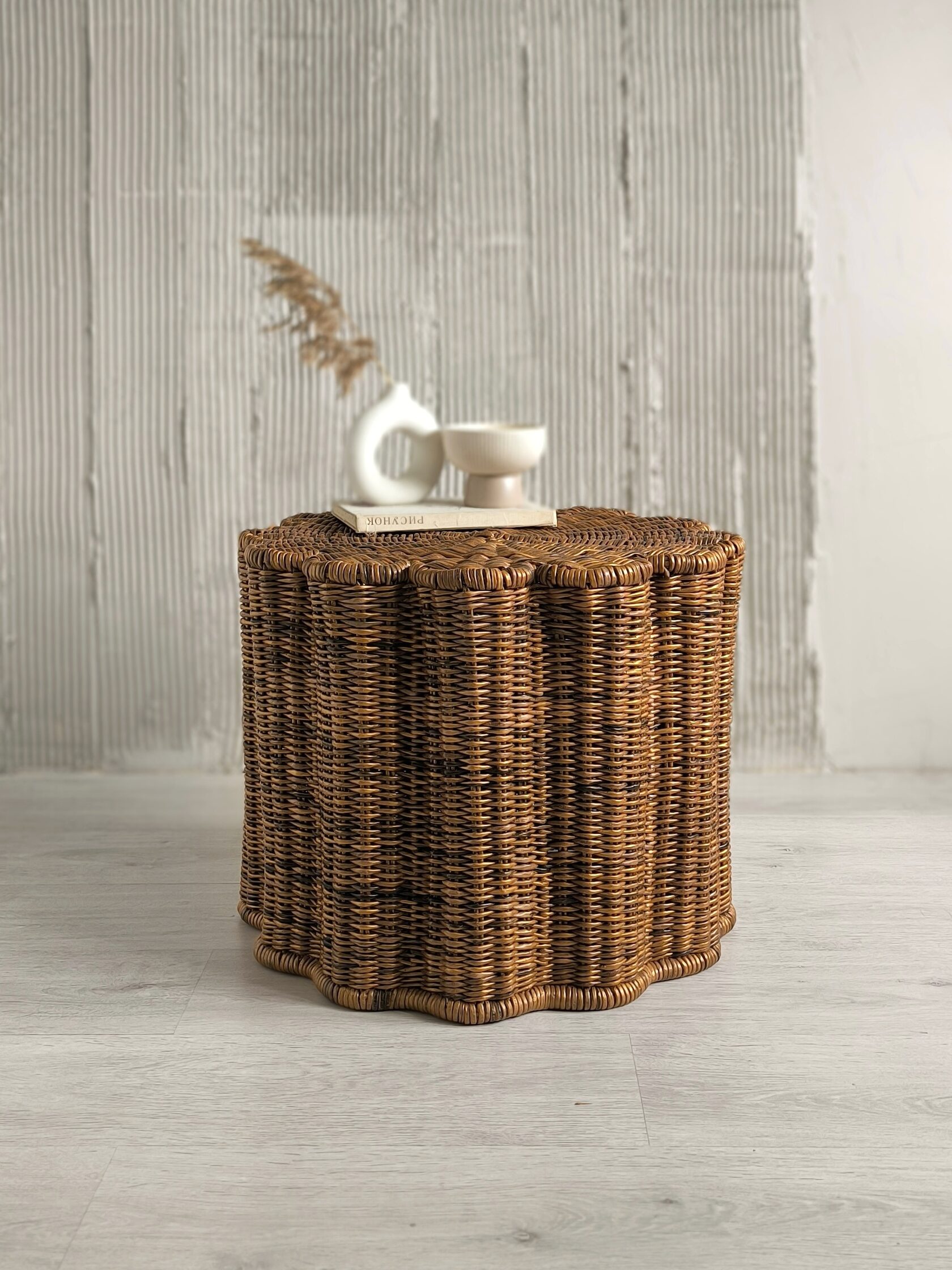 Эксклюзивный плетёный стол, созданный Валерией Корельской для капсульной коллекции Кристины Вытновой и Юлии Толстовой, представленной на выставке «Русский дом 2025». Этот объект, не имеющий жёстких геометрических линий, воплощает плавную, текучую форму, вдохновлённую живой природой. Изготовленный из металлического каркаса с влагостойкой имитацией лозы, стол (диаметр 53 см, высота 41 см) создаёт постоянно меняющуюся игру света и тени, делая его динамичным элементом в интерьере.