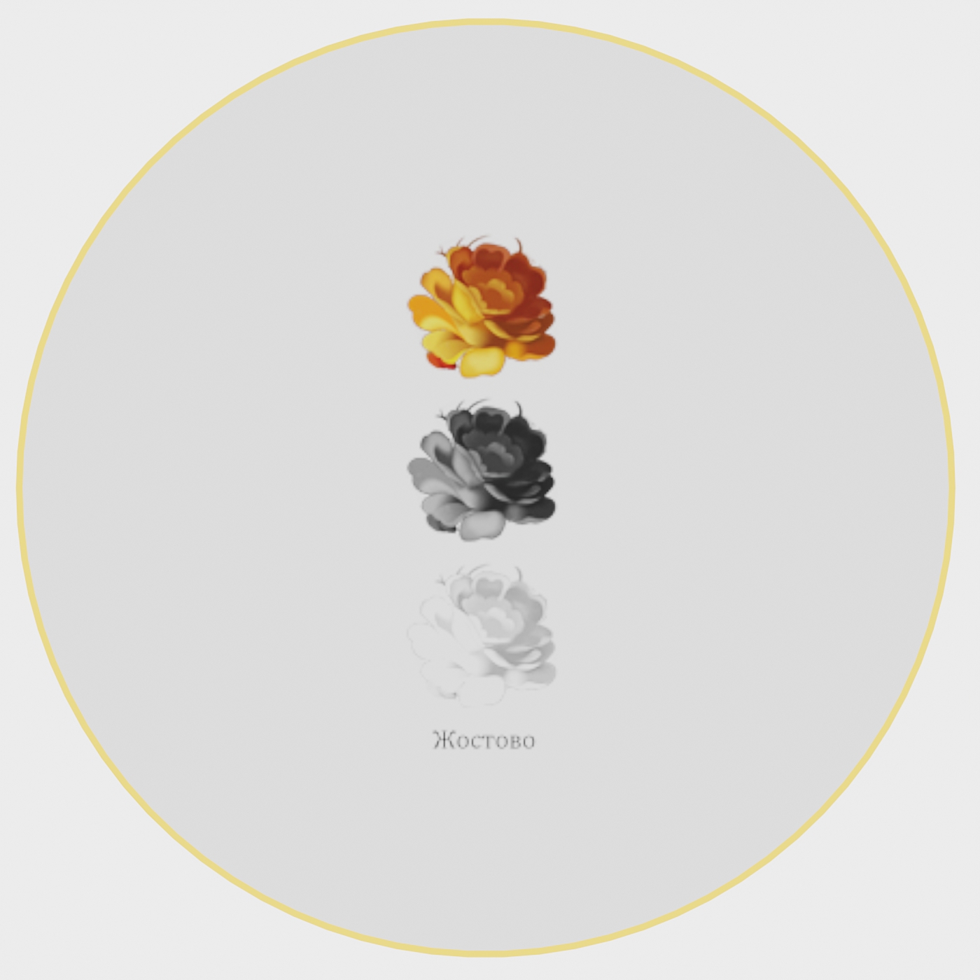 Коллекция представляет собой авторское переосмысление классической жостовской росписи через призму современного минимализма. В проекте сохранены все этапы традиционного процесса создания рисунка - от замалевка до финальной чертежки, что позволяет оценить сложность и многослойность этой техники. Узнаваемые цветочные мотивы представлены в лаконичной форме, где акцент сделан на одном элементе вместо традиционного пышного букета. Сохранена классическая цветовая гамма с черным или белым фоном и золотыми акцентами, что подчеркивает связь с исконными традициями промысла.