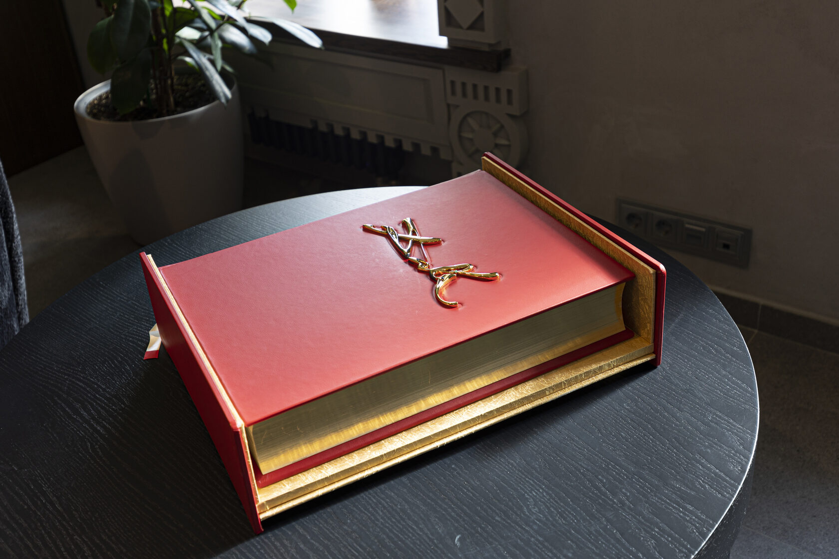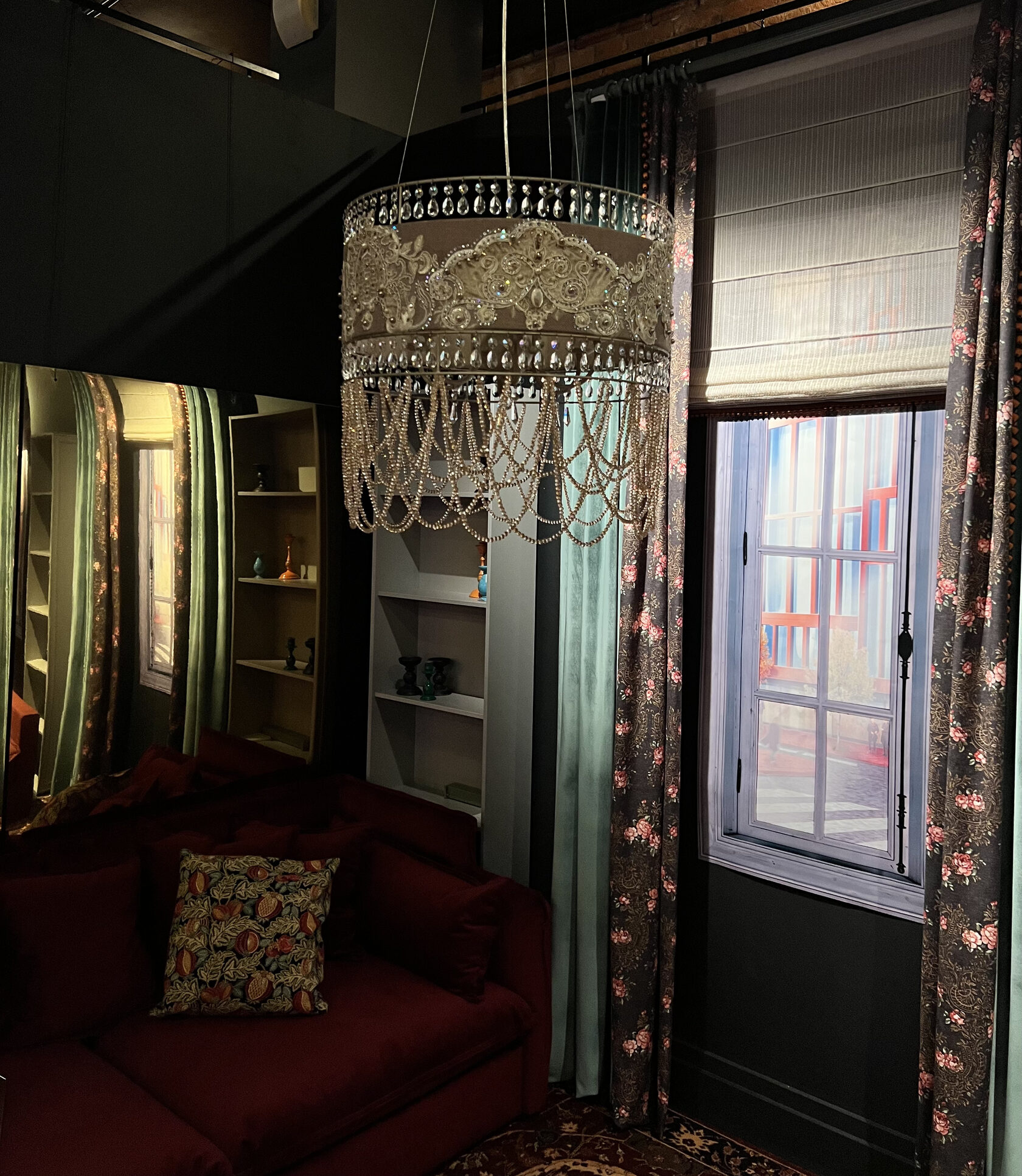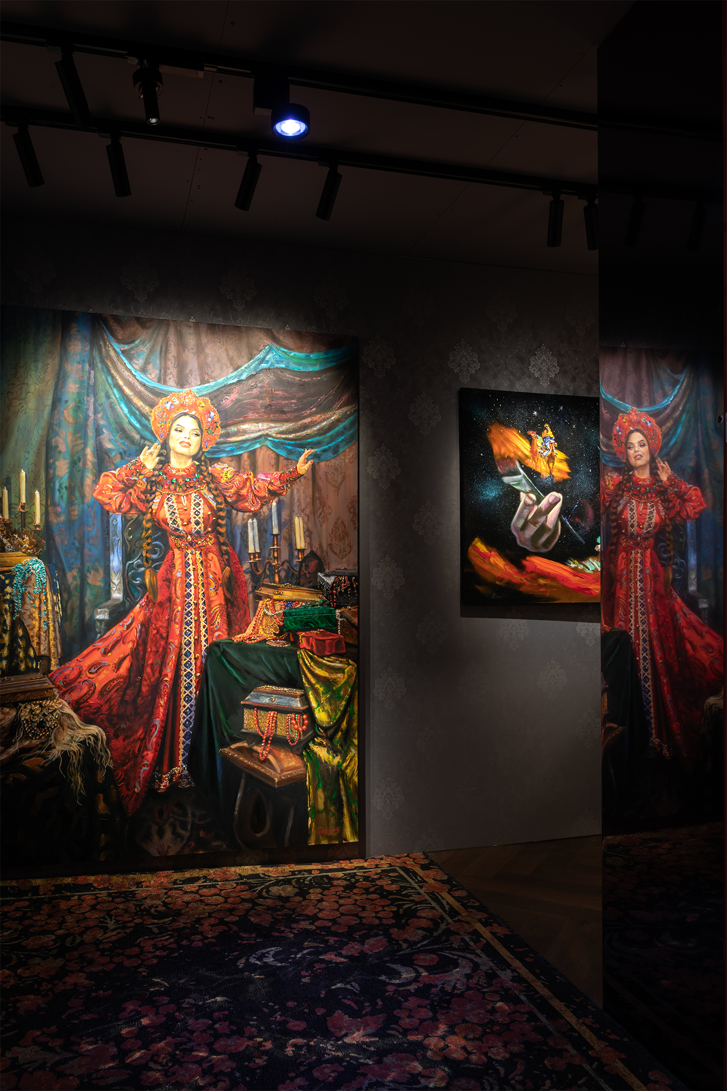 Эти роскошные портьеры были разработаны для создания уникального входа в выставочное пространство и мастерскую художника. Их плотный бархат, богатый декор и выраженная театральность мгновенно погружают зрителя в атмосферу предвкушения чуда, символизируя границу между реальностью и миром искусства.
